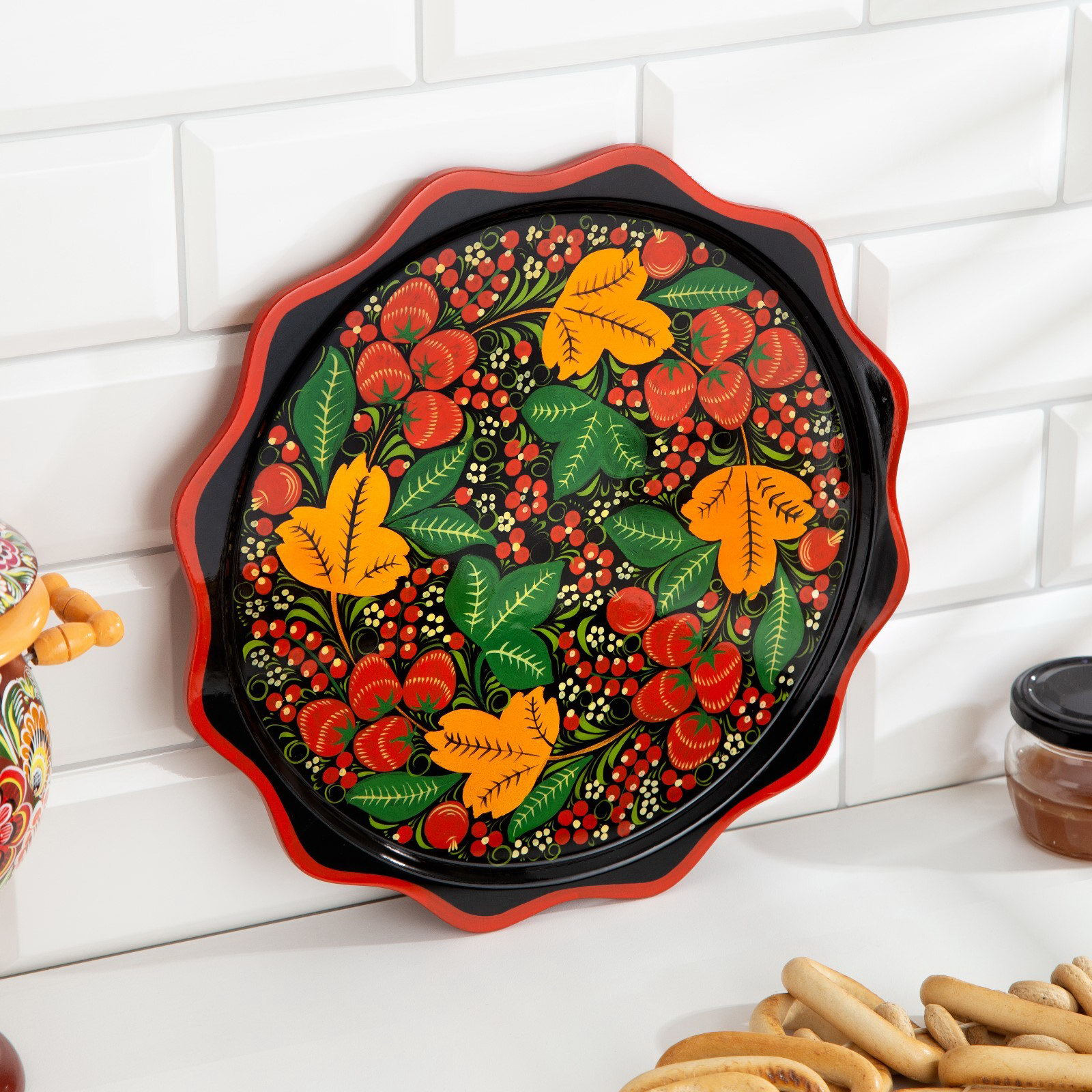 Тарелка "Блинная", дерево, хохлома, d=30, 30х30х1 см., Россия
