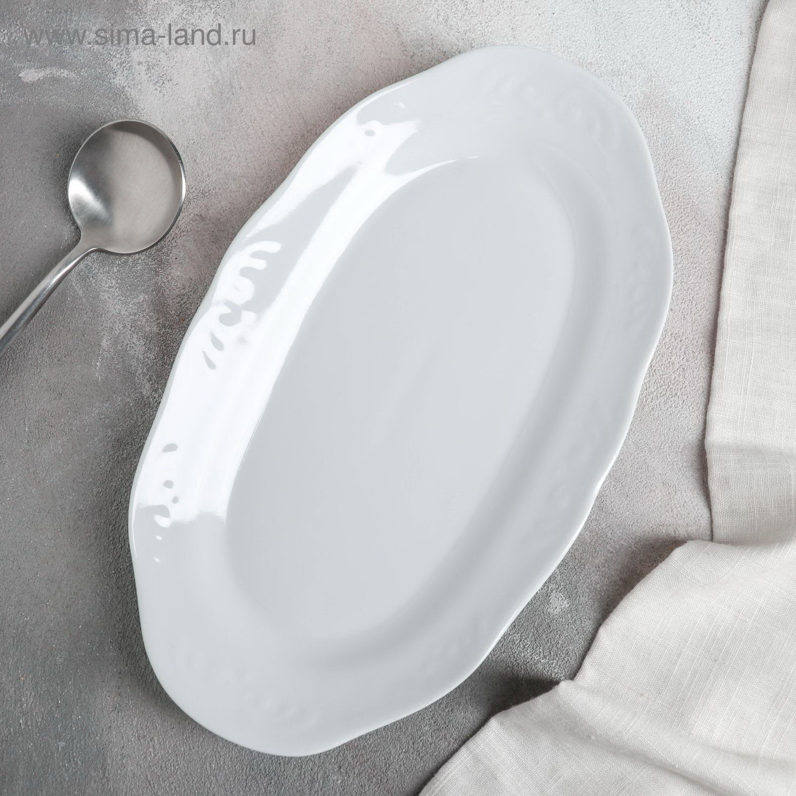 Размер упаковки: 16 x 3 x 27.5 см. Форма: Овал tnved: 6911100000 Тематика: Однотонная Можно использовать в СВЧ-печи: Да Можно мыть в посудомоечной машине: Да Крышка: Нет Особенности: С барельефом Текстура: С рельефом Температурное ограничение: Нет Цвет: Белый Набор: Нет Рисунок: Нет Запрет реализации по сегментам: 00000000485 Овальное сервировочное блюдо размером 27,5x16 см практичная посуда для подачи закусок, нарезок и вторых блюд. Невысокие бортики высотой 3 см удобны для сервировки бутербродов, сырной тарелки, овощных ассорти или рыбы продукты размещаются свободно и не смещаются при переноске. Особенности