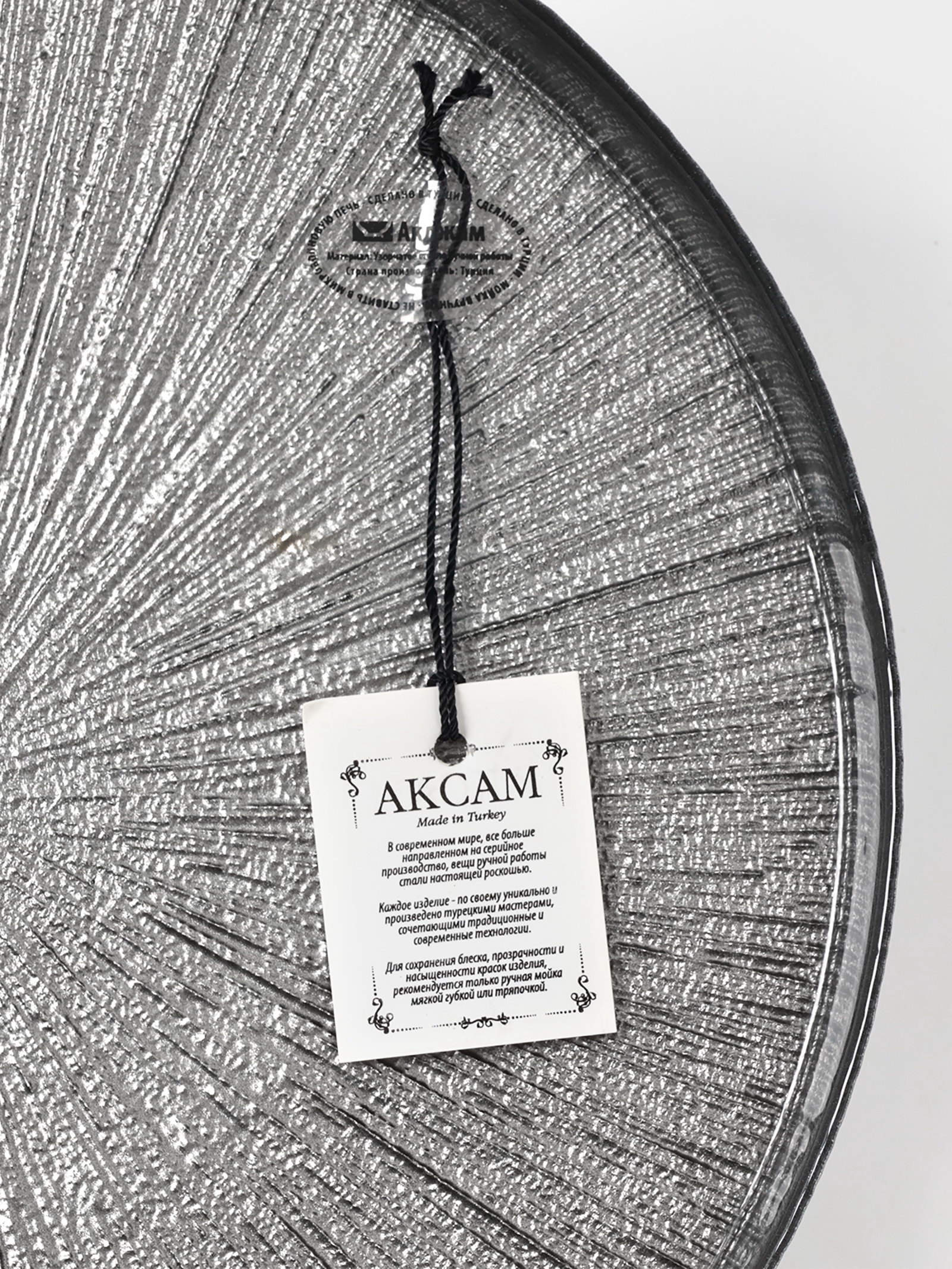 Размер упаковки: 30 x 9 x 30 см. Форма: Круг В наборе, шт.: 1 Крышка: Нет Особенности: Блестящий дизайн tnved: 7013500000 tnved: 7013500000 Температурное ограничение: Нет Рисунок: Нет Набор: Нет Цвет: Серебристый Можно мыть в посудомоечной машине: Нет Можно использовать в СВЧ-печи: Нет Текстура: С рельефом Тематика: Однотонная Вид тарелки: Плоская Запрет реализации по сегментам: 00000000485 Akcam – турецкая компания-производитель посуды из стекла, которая знаменита особой прочностью. Все изделия производятся и расписываются вручную. Преимущества: