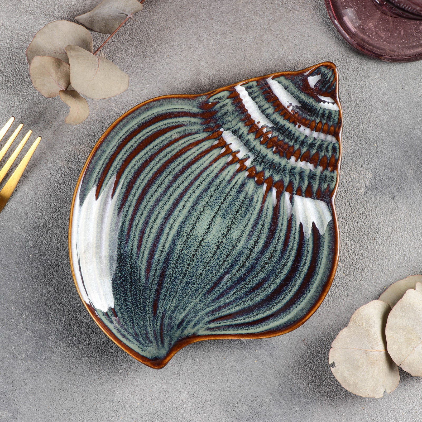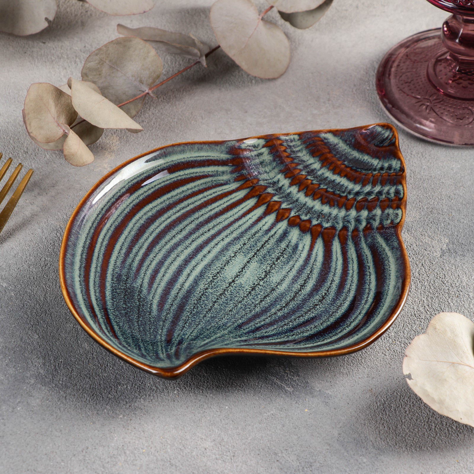 Блюдо сервировочное "Ракушка", 18.5x14 см, керамика, бирюзовое, 14x18.5x2 см., Китай