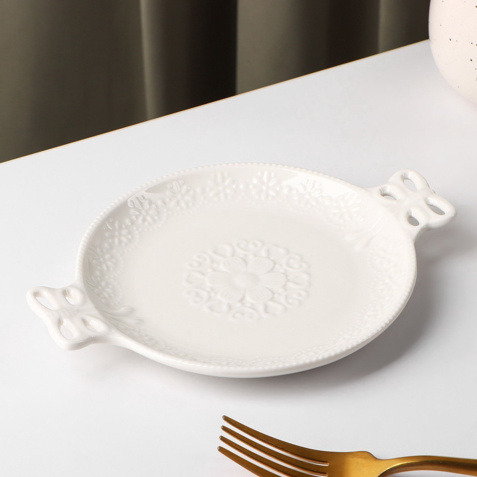Блюдо "Сьюзен", 18x13.5 см, керамика, белое, 13.5х13.5х2 см., Доляна, Китай