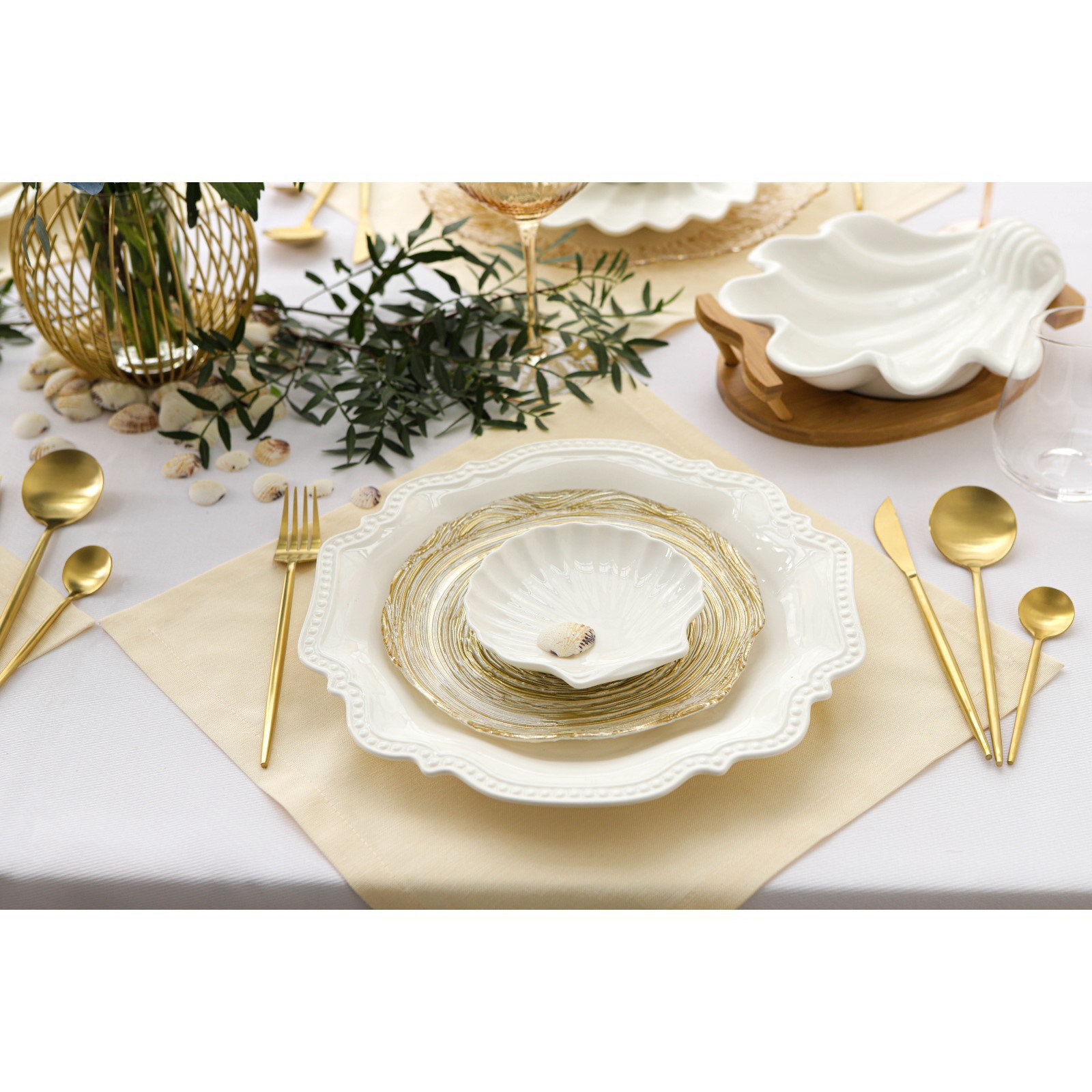 Размер упаковки: 3.5 x 14.5 x 14.5 см. Форма: Фигурная Форма: Фигурная tnved: 6911100000 Крышка: Нет Цвет: Белый Особенности: Глазурованные Набор: Нет Можно использовать в СВЧ-печи: Да Можно мыть в посудомоечной машине: Да Рисунок: Нет Тематика: Однотонная Запрет реализации по сегментам: 00000000485 Текстура: С рельефом Вид тарелки: Плоская Матовая поверхность: Нет Серия посуды "Бланш" торговой марки Magistro безошибочный выбор для сервировки стола. Предметы серии выполнены из качественного фарфора с высоким содержанием каолина и покрыты нежно-белой глазурью. Такую посуду можно использовать для оформления стола в стилях: