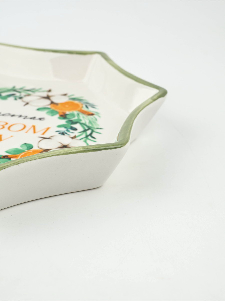 Особенности: Деколь, Ручная работа Размер упаковки: 20 x 20.5 x 3.5 см. Рисунок: Да Можно мыть в посудомоечной машине: Да Матовая поверхность: Нет Набор: Нет Можно использовать в СВЧ-печи: Да Тематика: Новогодняя Вид тарелки: Плоская Форма: Восьмиугольник Текстура: Гладкая Символ года: Нет Тематика праздника: Новый год tnved: 6912002600 Для горячего: Да Цвет: Белый Крышка: Нет Блюдо керамическое идеальный выбор для тех, кто ценит качество и стиль. Преимущества: