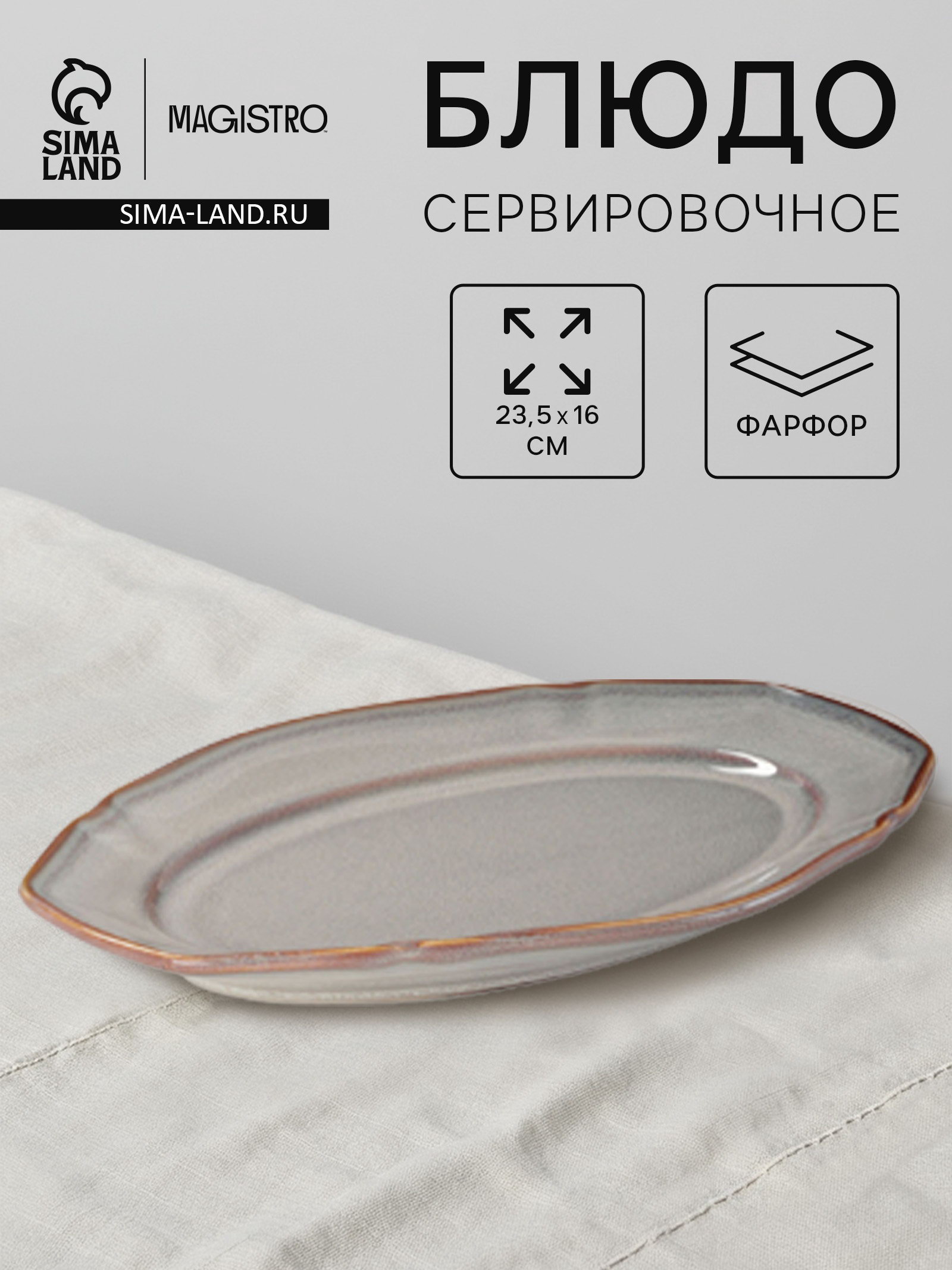 Блюдо сервировочное Vintage 23.5x16x2.3 см, фарфор, серое, 16x23.5x2.3 см., Magistro, Китай