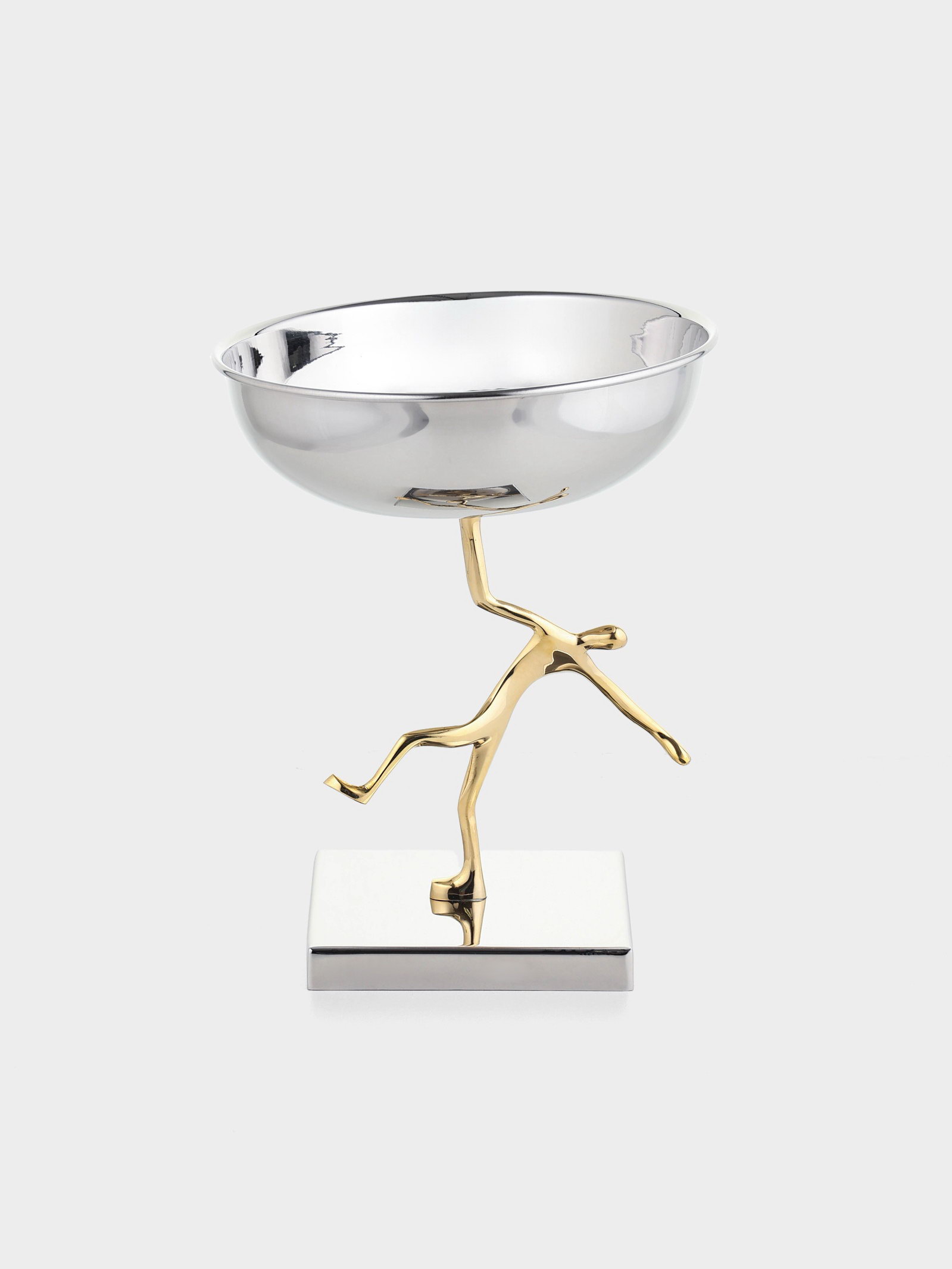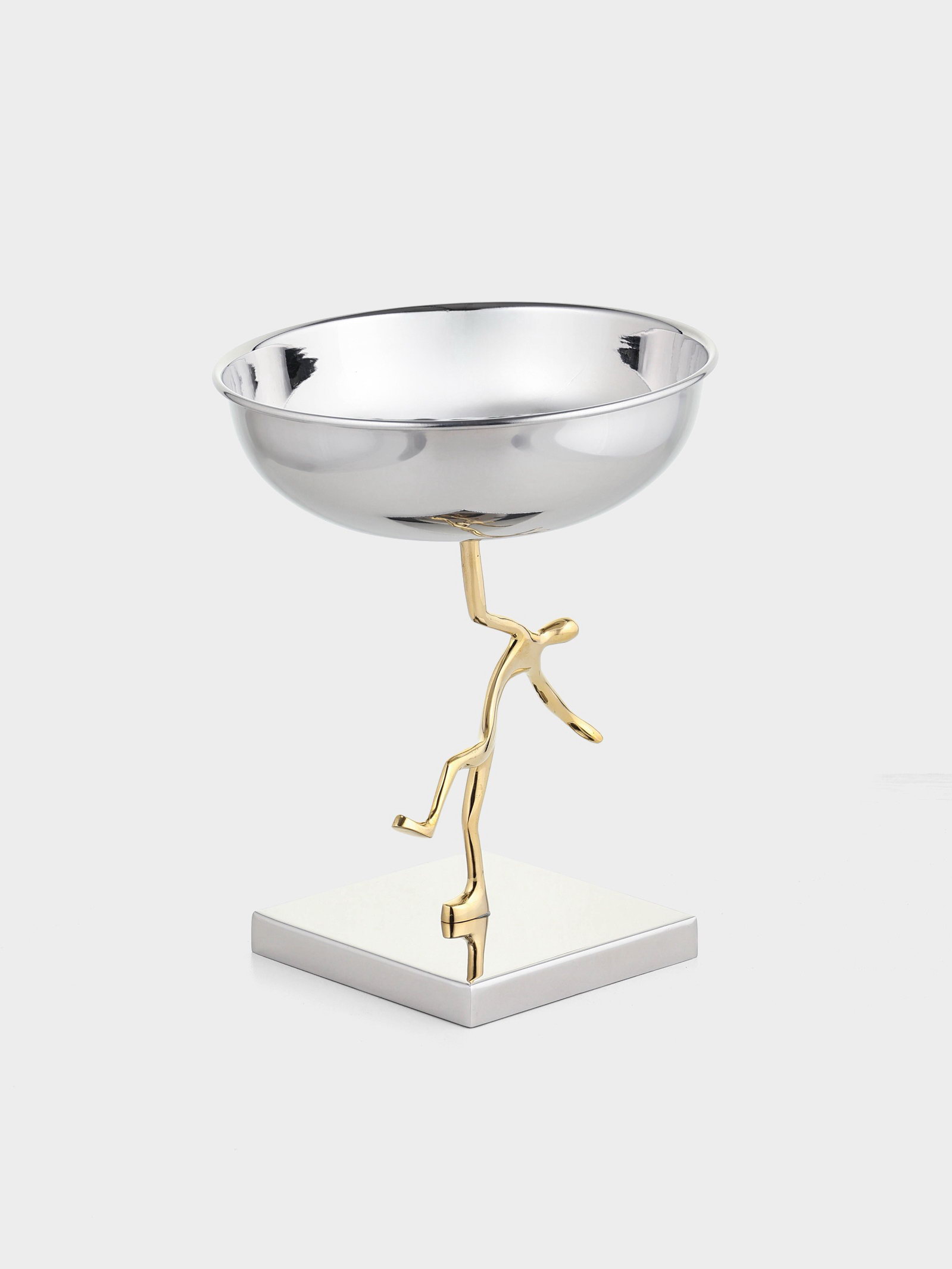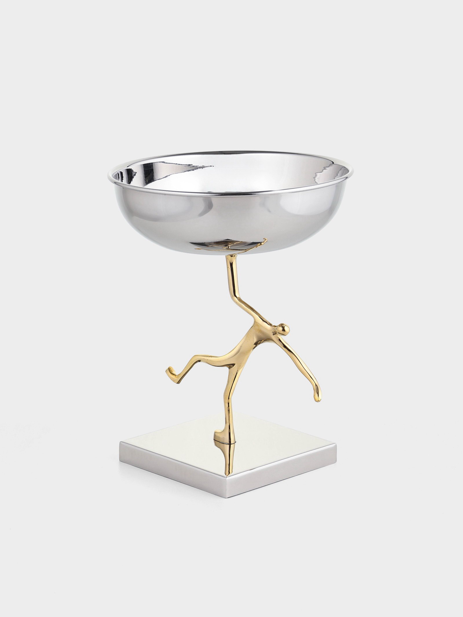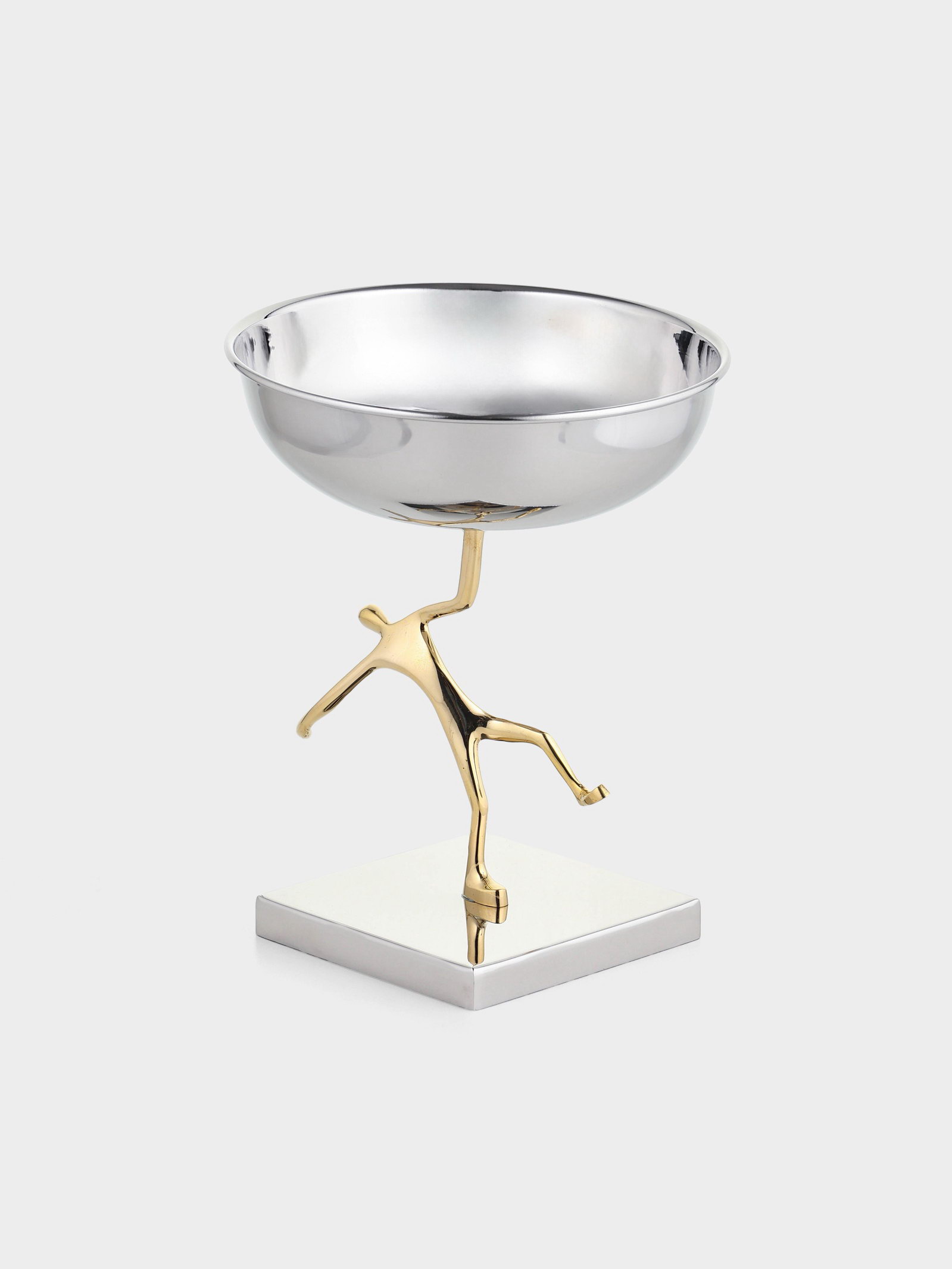 Блюдо сервировочное на подставке "Человек", d=18 см, нержавеющая сталь, латунь, 18х18х22 см., Индия