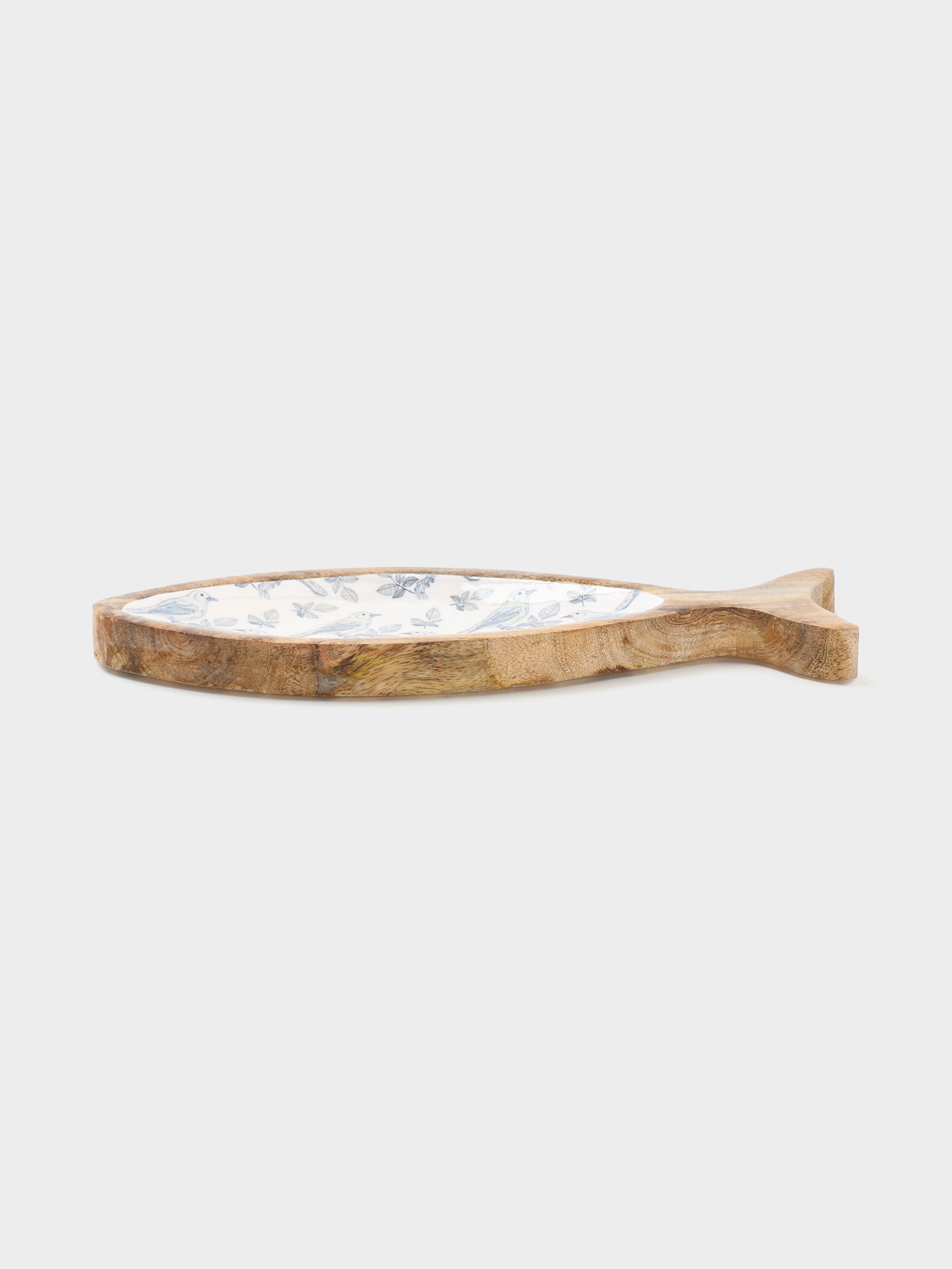 Блюдо в форме рыбки "Синие птицы", 32x11.5x2 см, дерево манго, 11.5x32x2 см., Индия