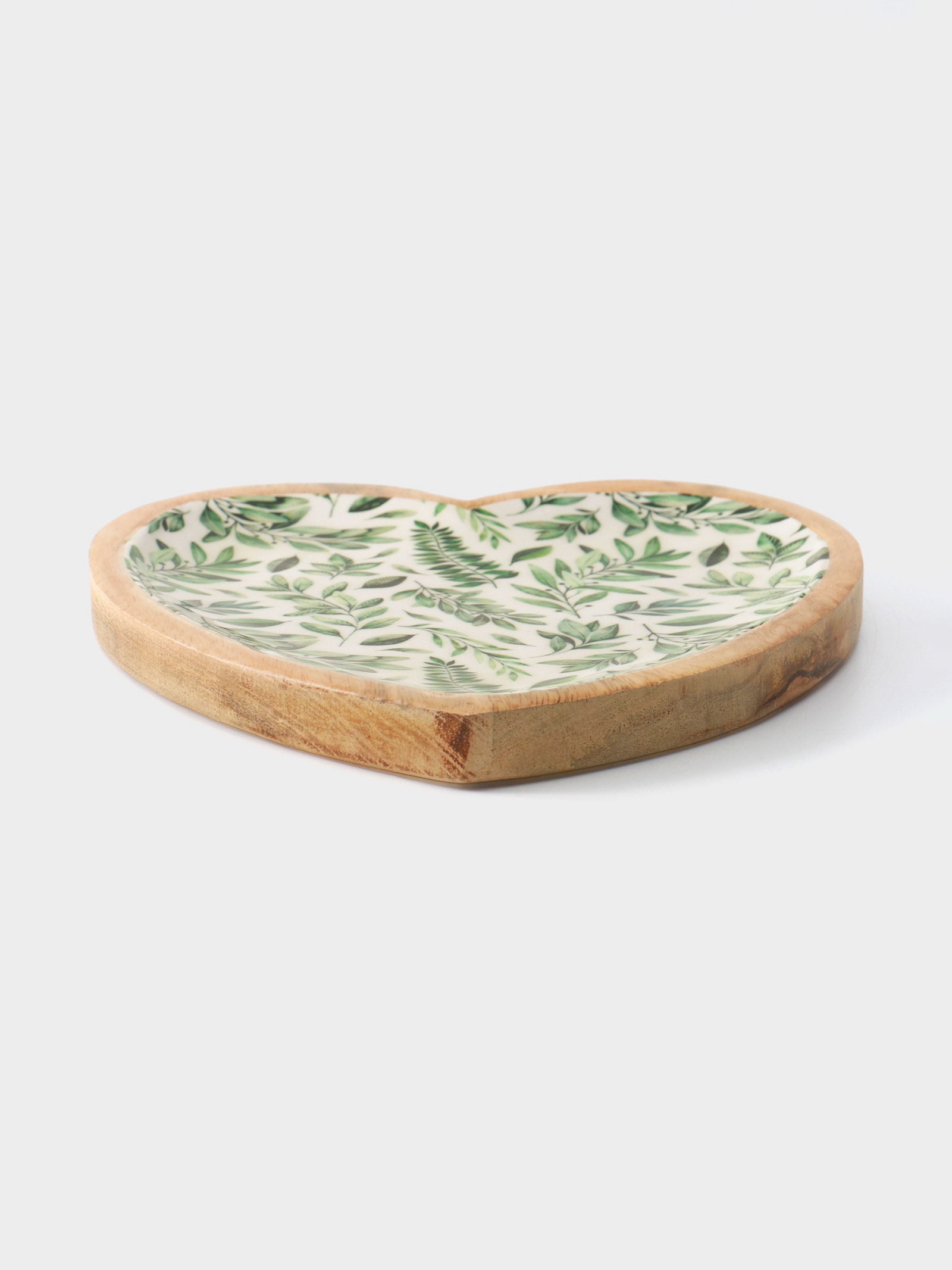 Блюдо в форме сердца "Оливковая ветвь", дерево манго, 20.5x20x2.3 см, 20.5x21.5x3 см., Индия