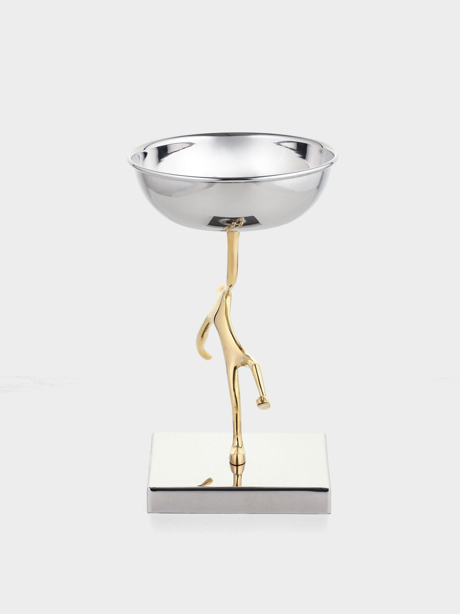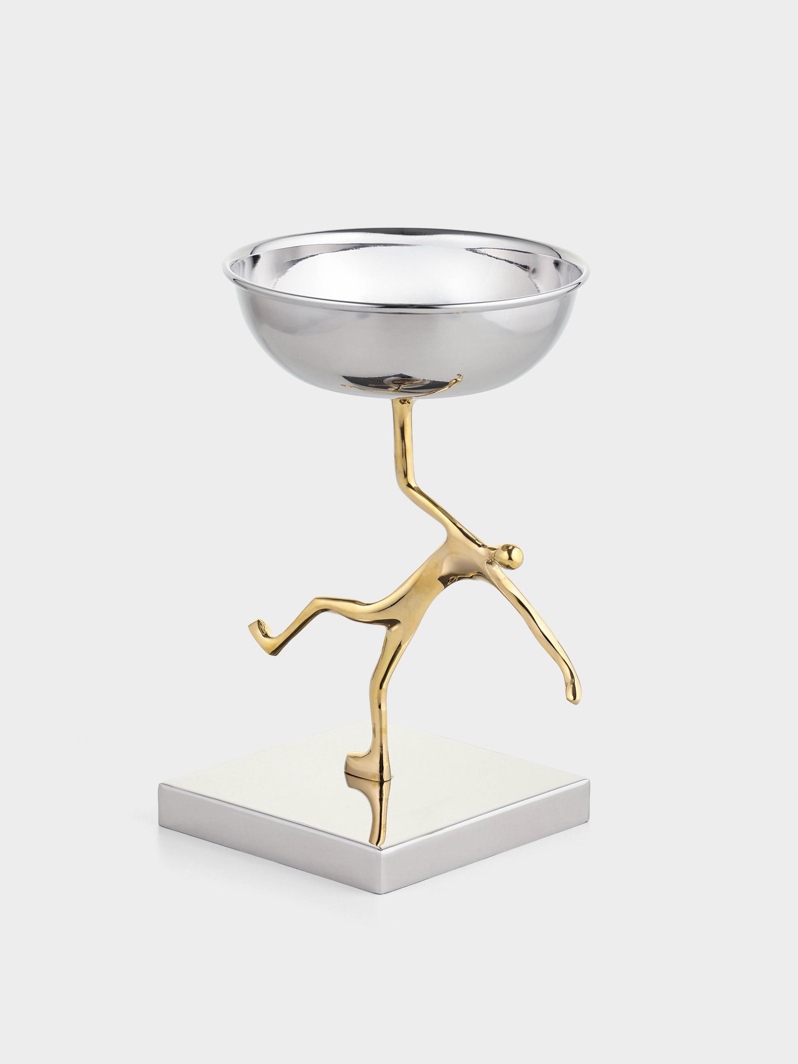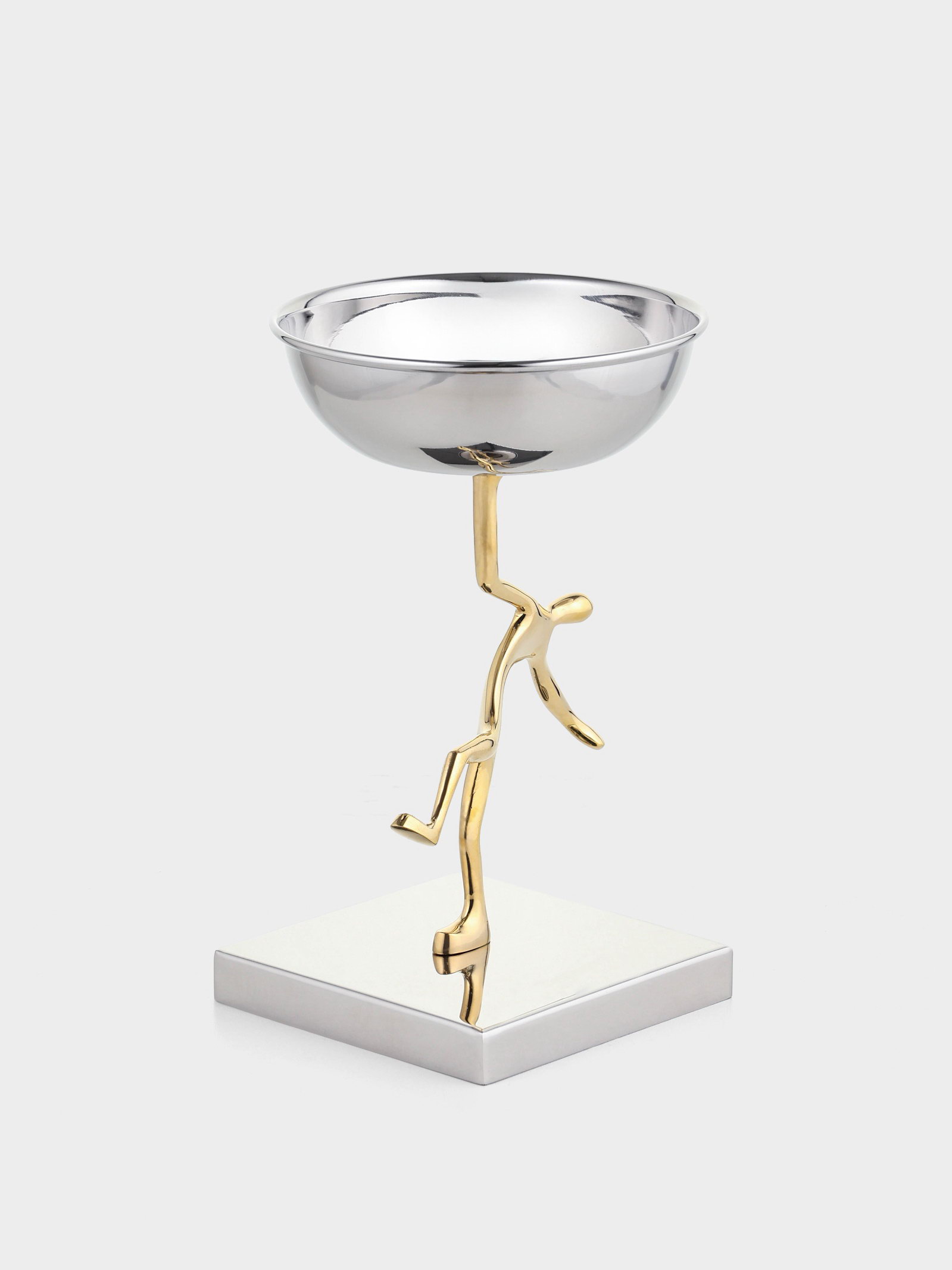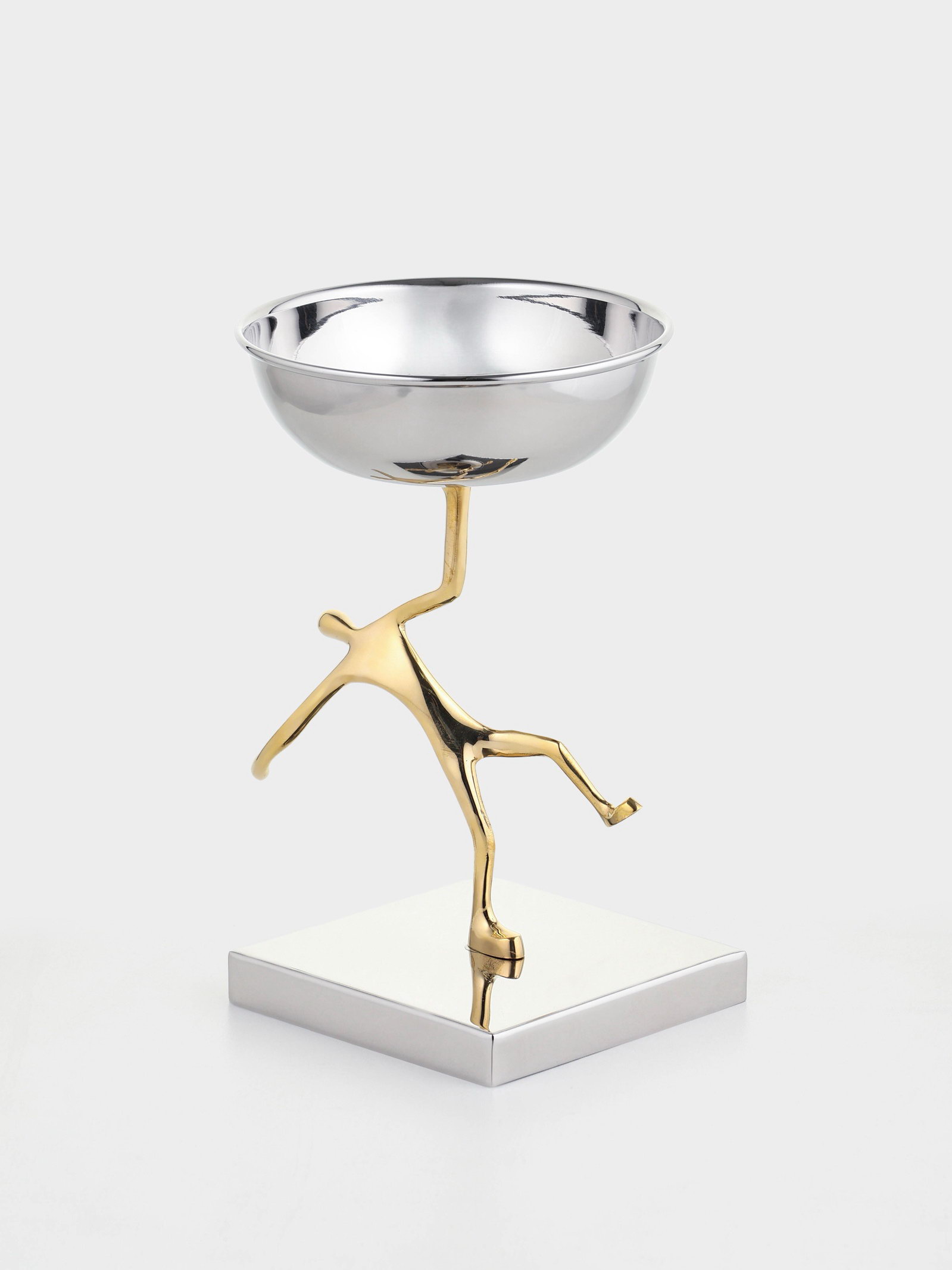 Блюдо сервировочное на подставке "Человек", d=13 см, нержавеющая сталь, латунь, 13х13х21 см., Индия