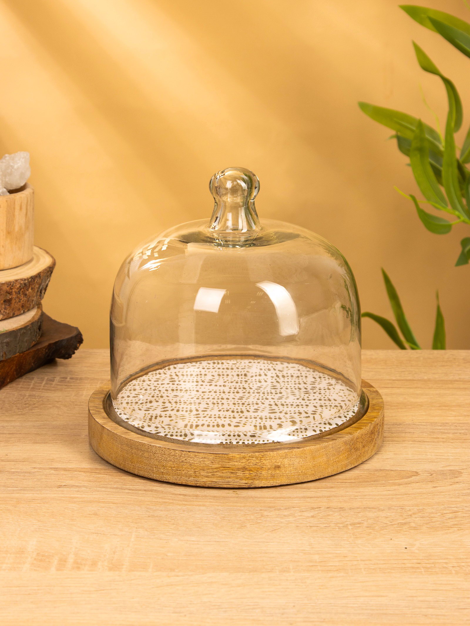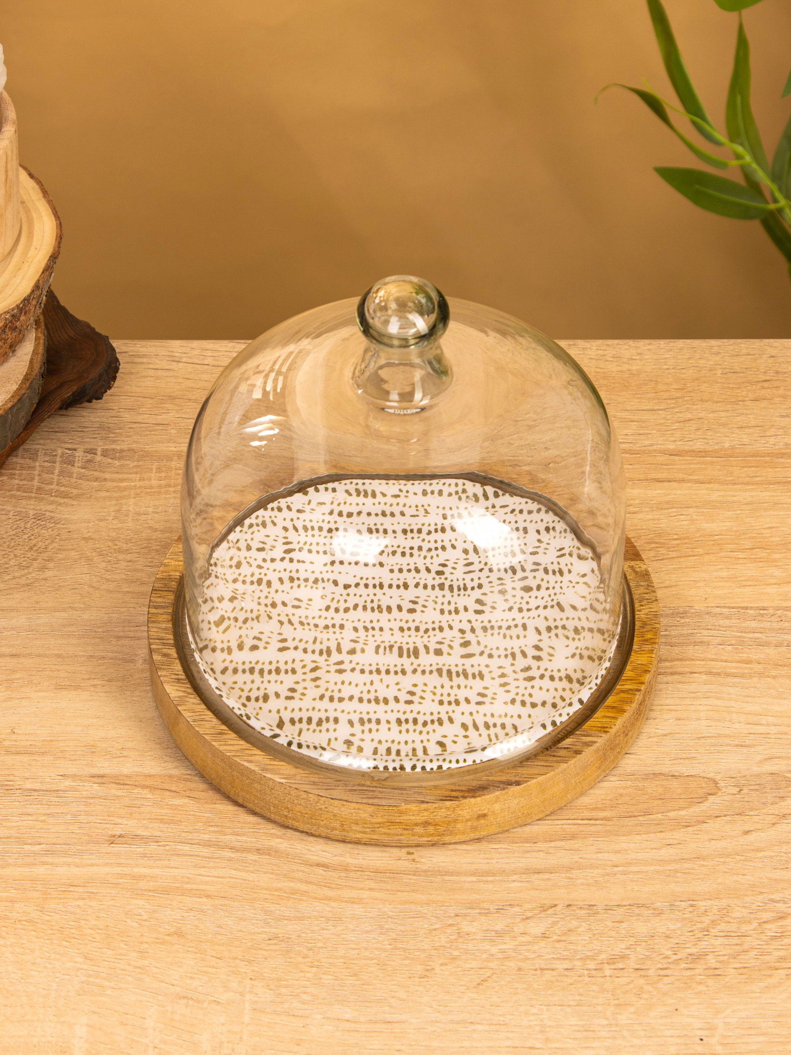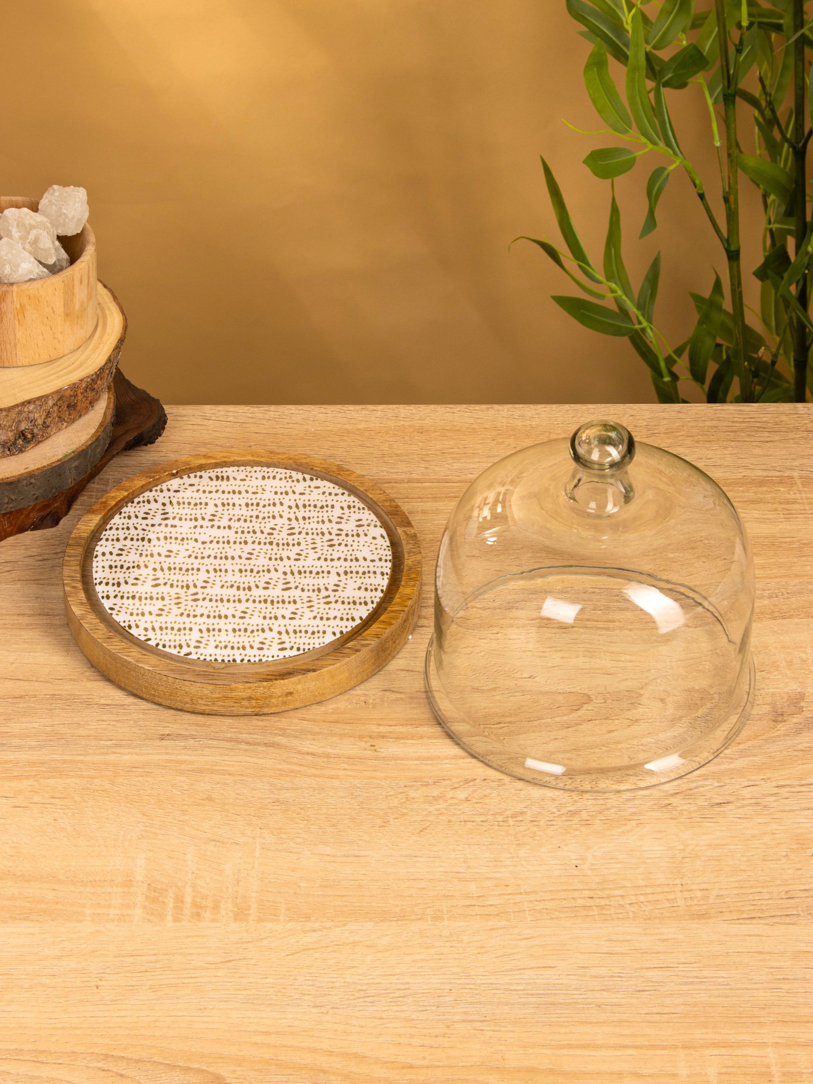 Блюдо сервировочное с крышкой, 20x20x19.5 см, дерево, стекло, 23x23x16 см., Индия