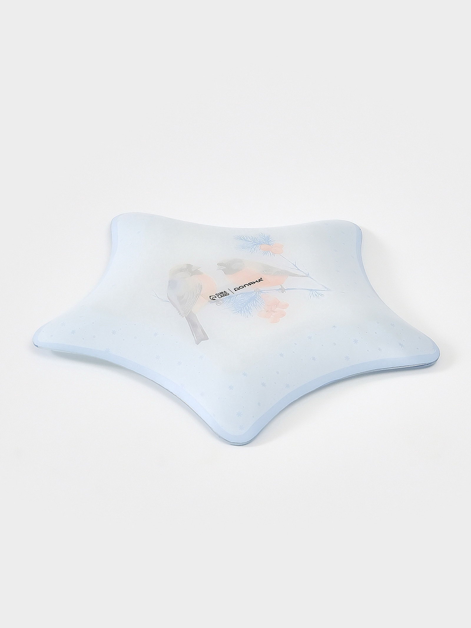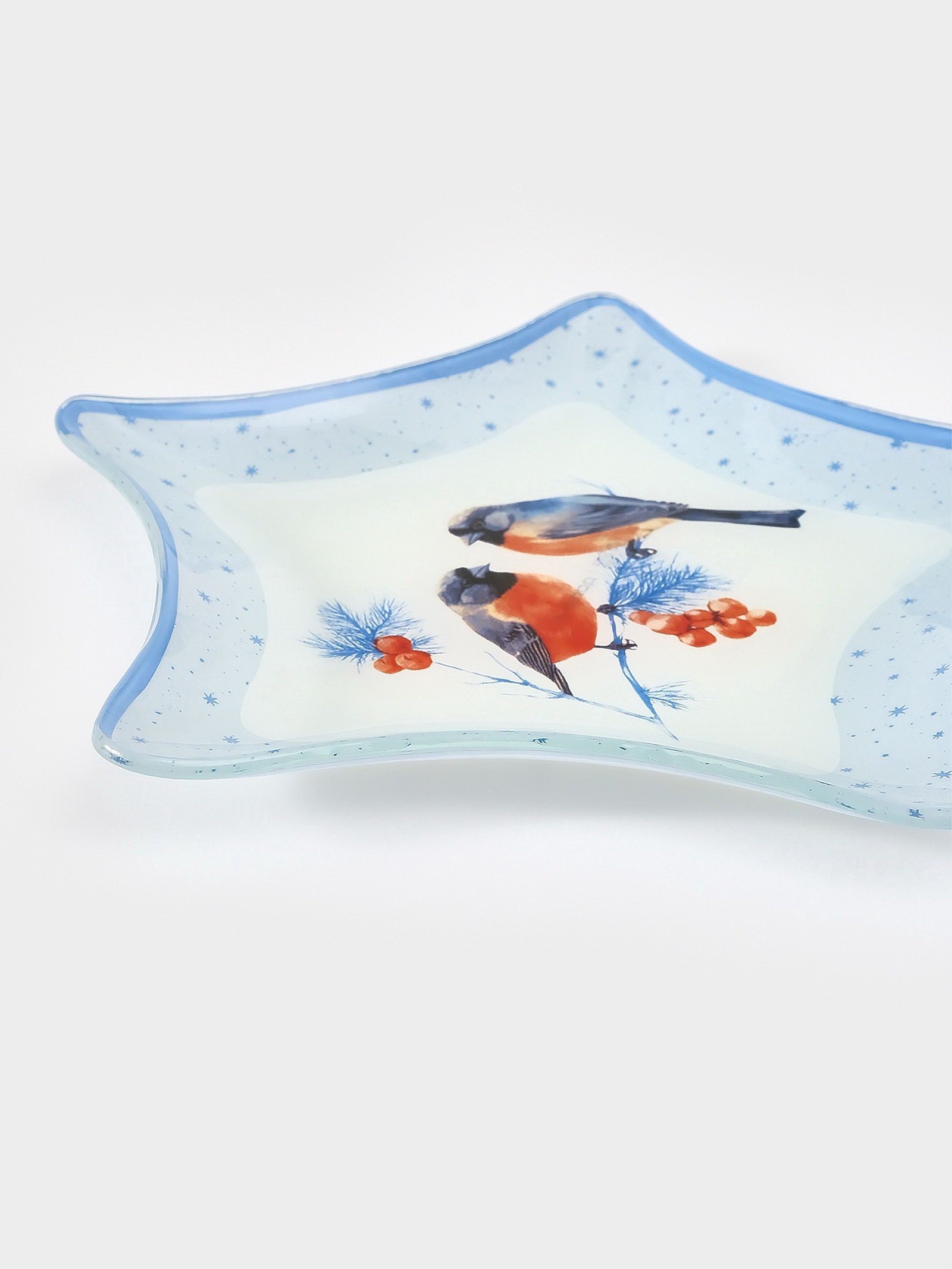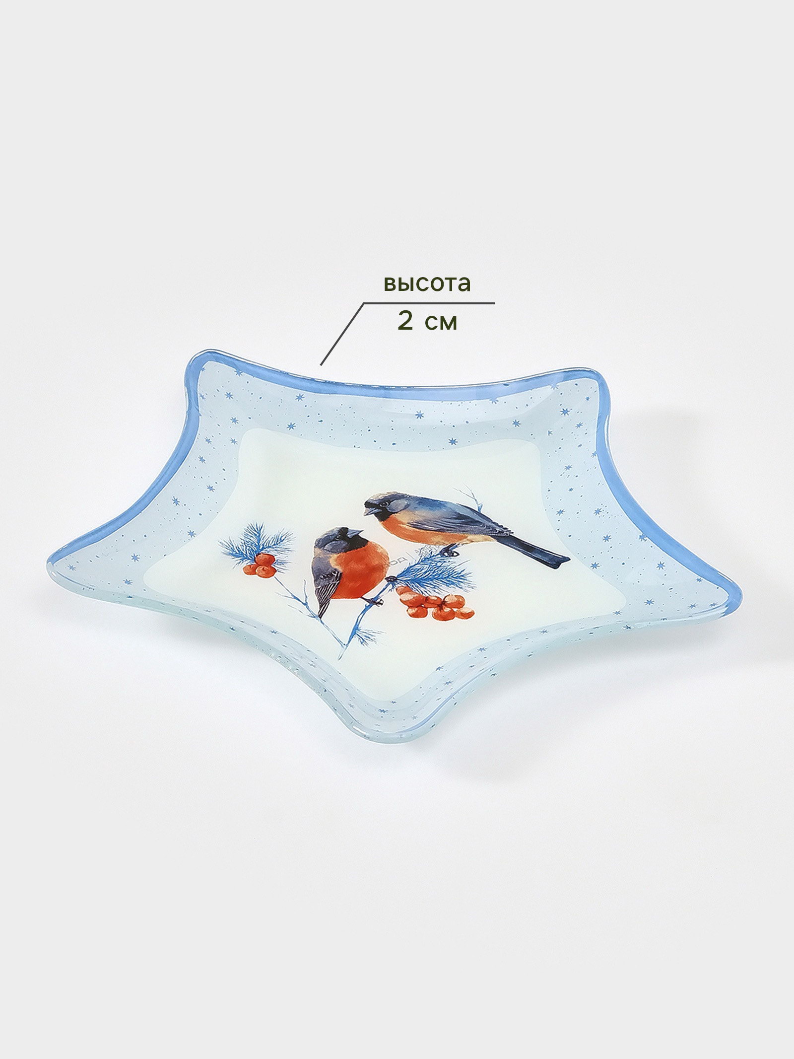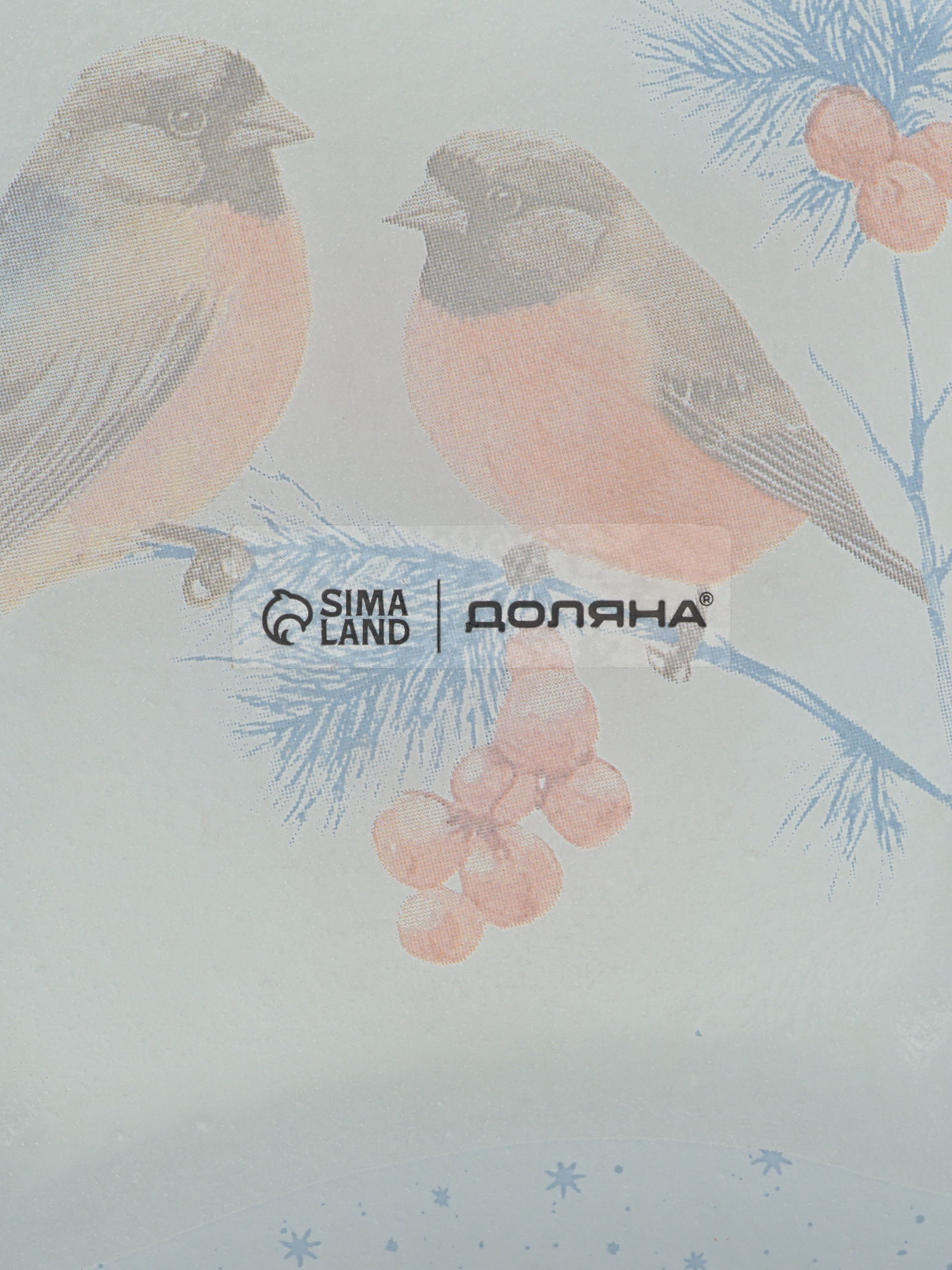 Блюдо новогоднее сервировочное "Снегири на ветке", d=19 см, стекло, голубое, 19.5х19.5х1.5 см., Доляна, Китай