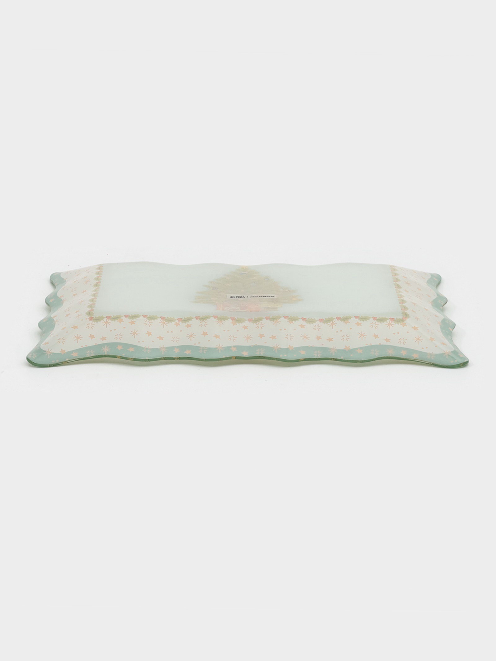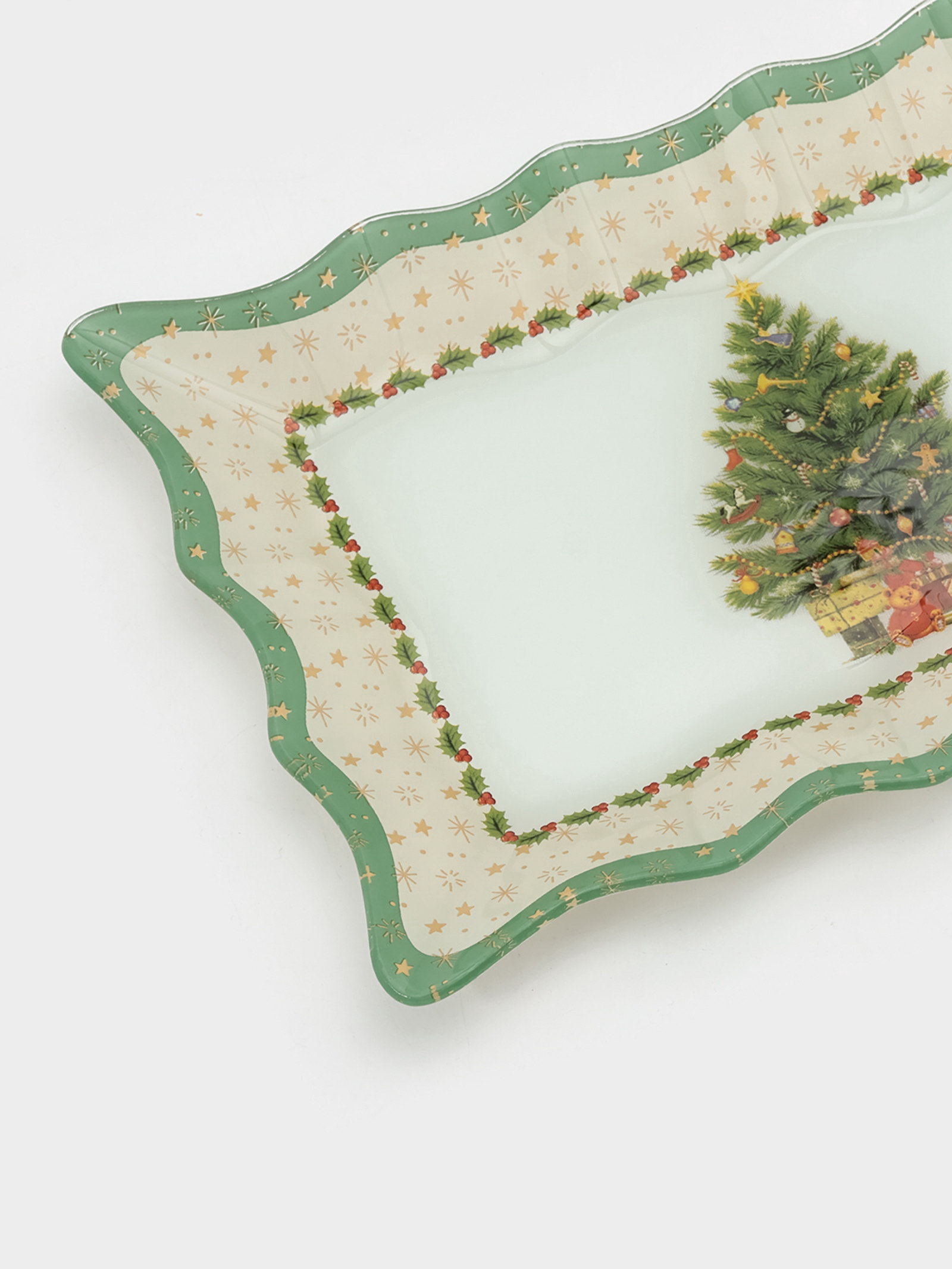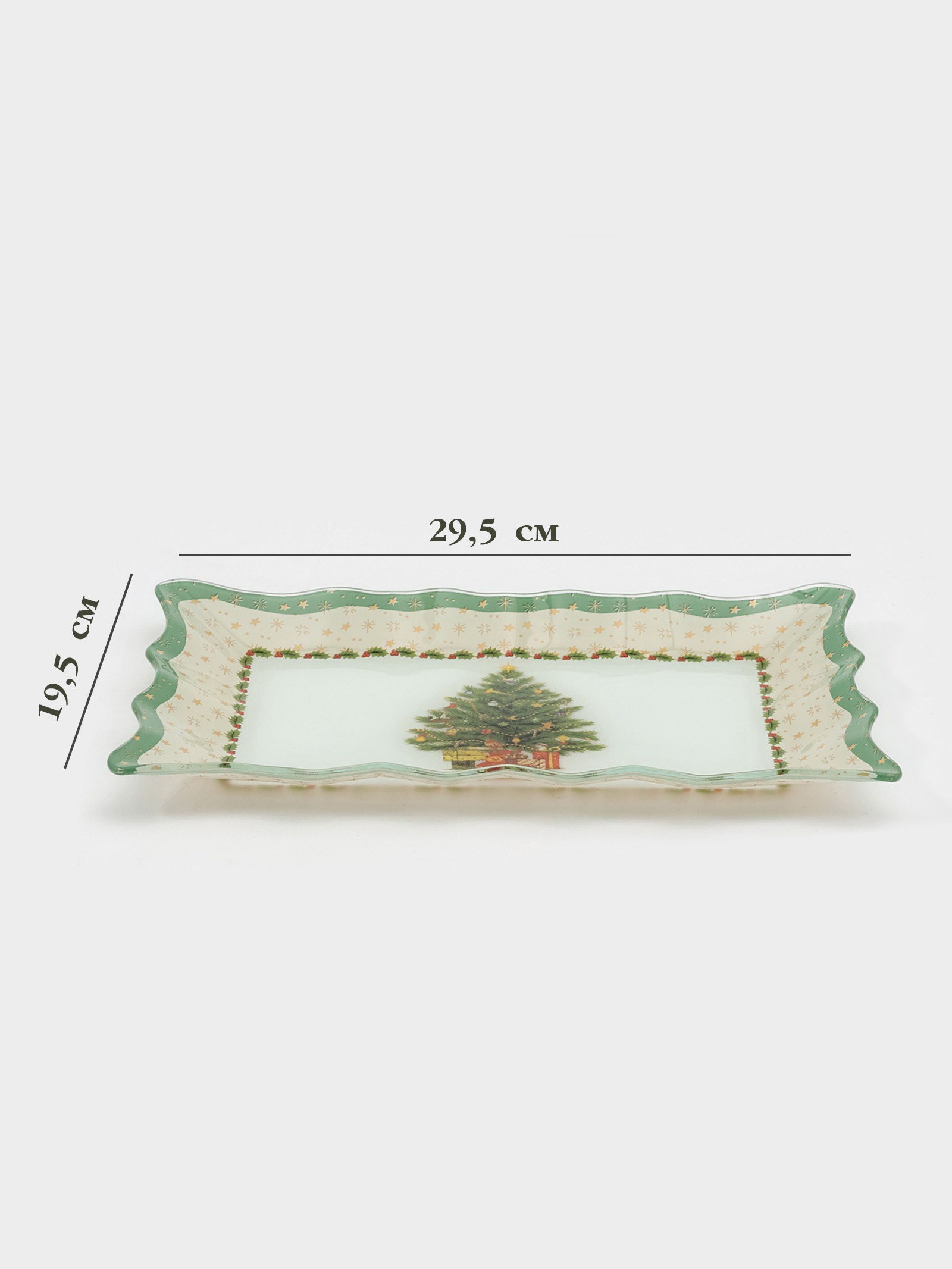 Блюдо новогоднее сервировочное "Рождественская ель", 29.5x19.5 см, стекло, белое, зелёное, 19.5x29.5x1.5 см., Доляна, Китай