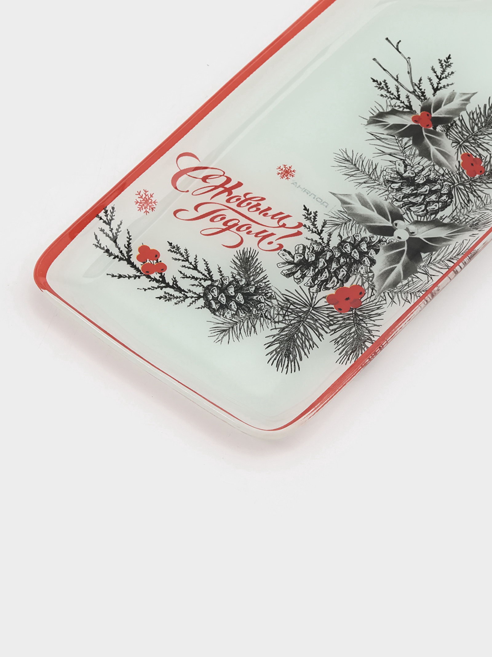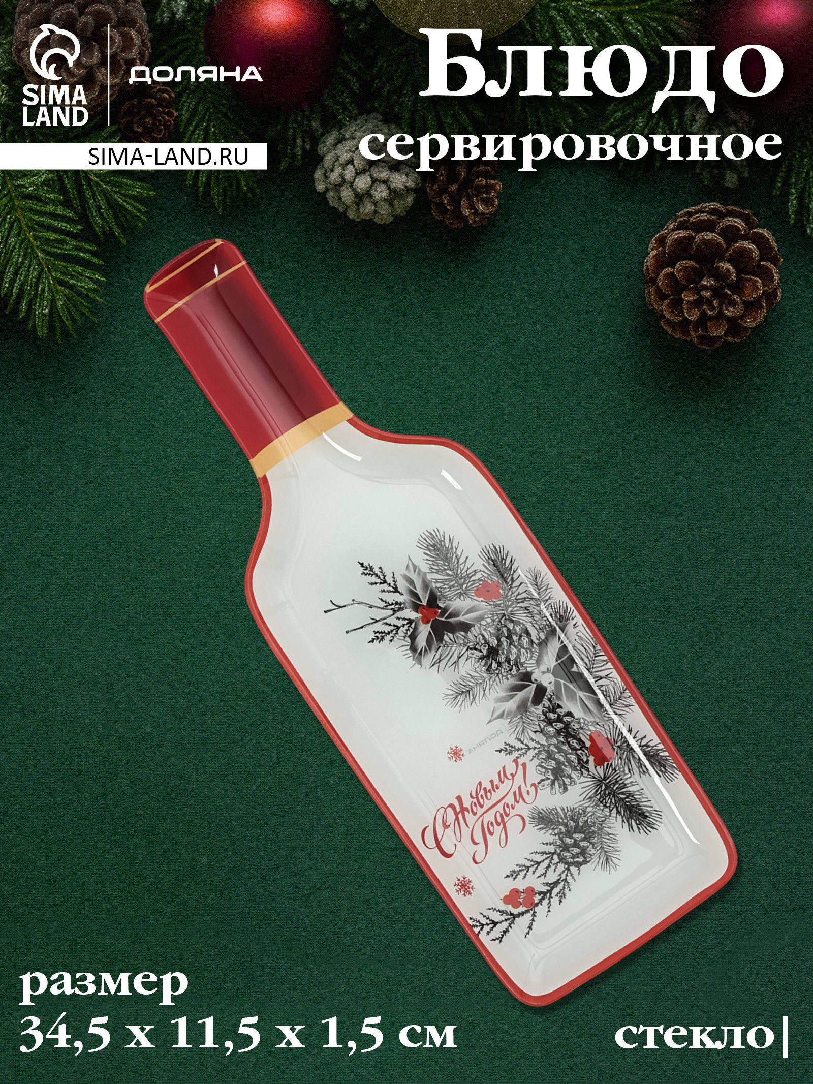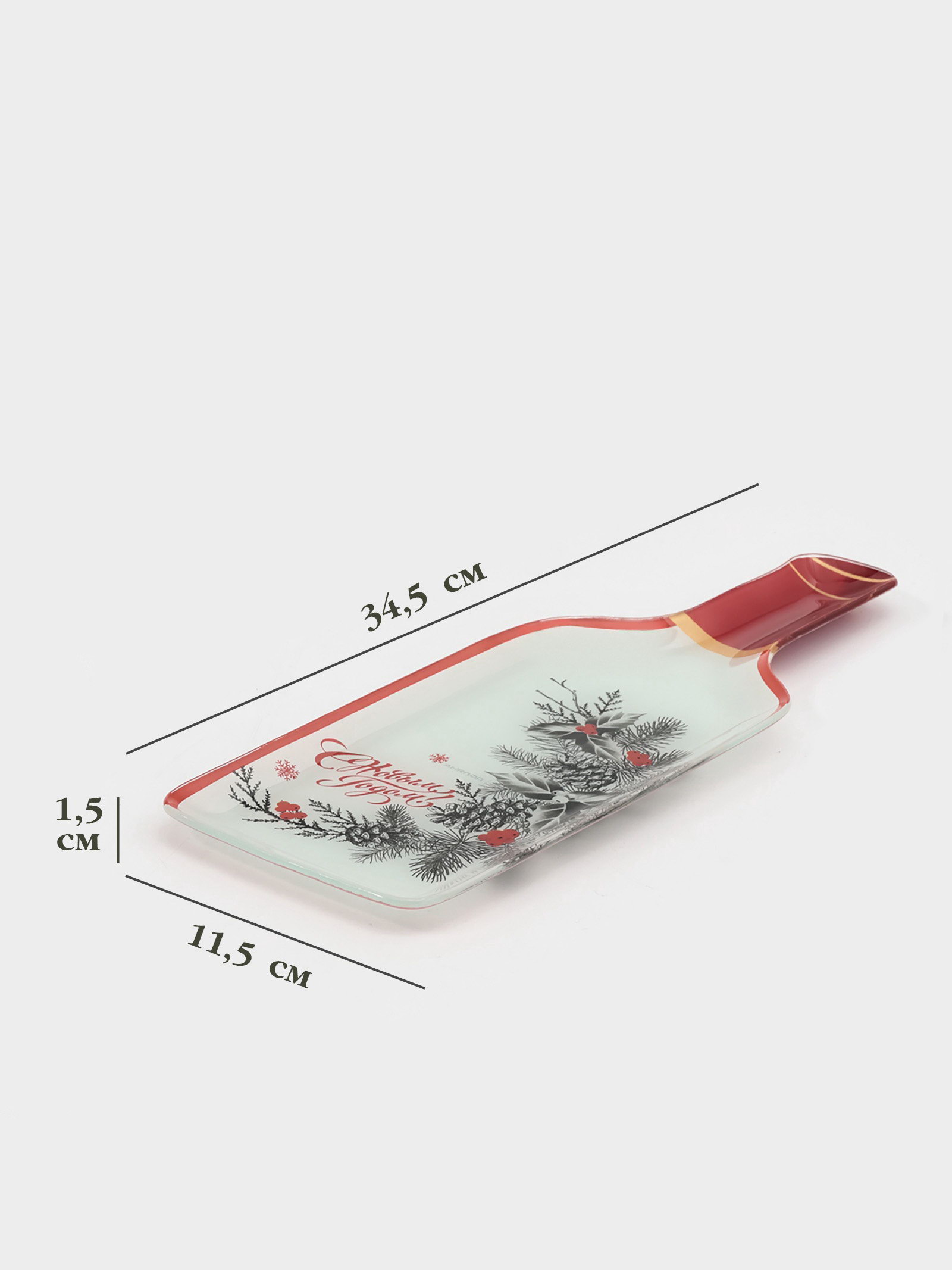 Блюдо новогоднее сервировочное "С новым Годом", 34.5x11.5x1.5 см, стекло, белое, красное435, 12x34.5x1.5 см., Доляна, Китай