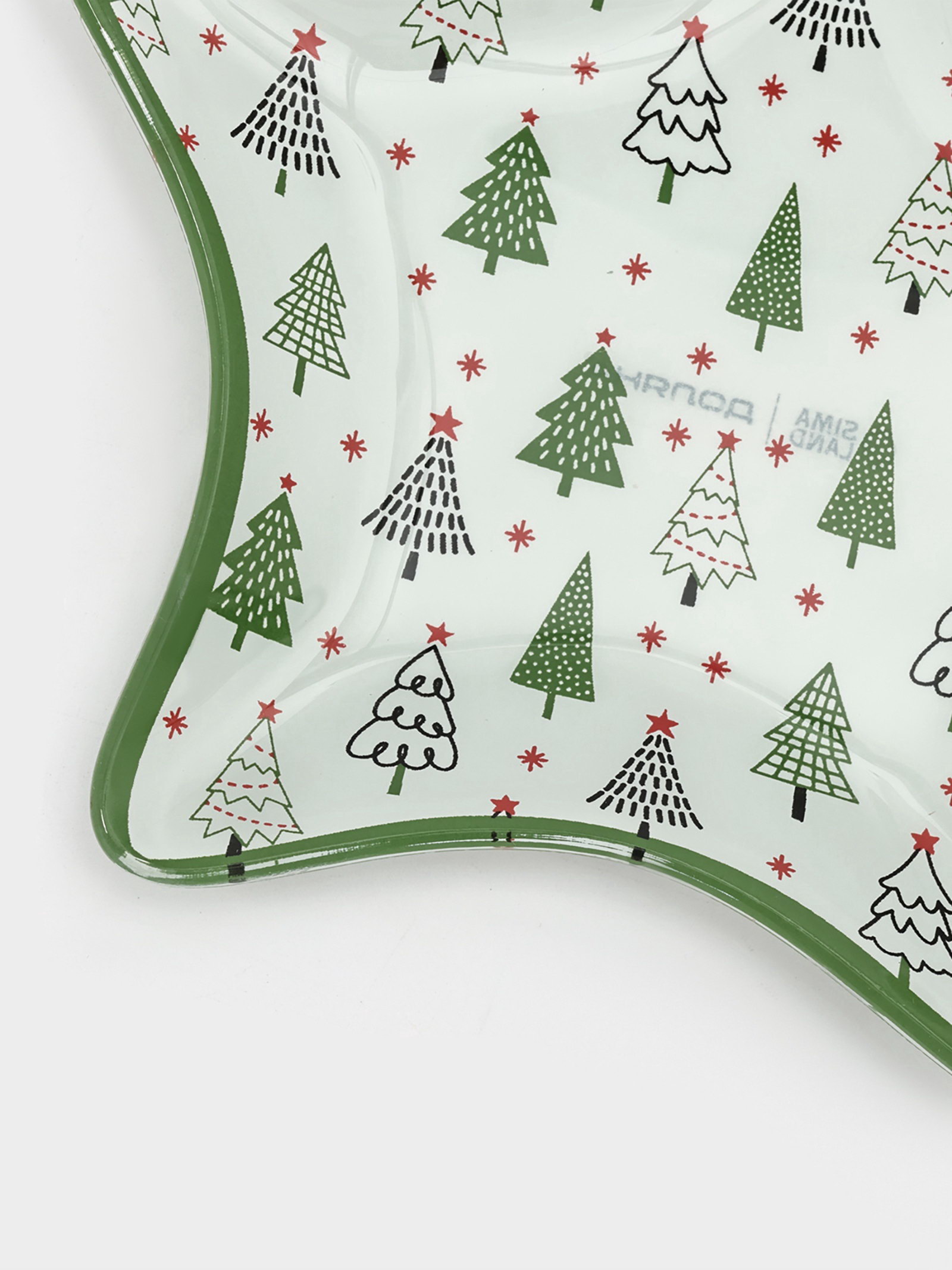Блюдо новогоднее сервировочное "Ёлочка", d=14.5 см, стекло, белое, зелёное, 15х15х1.5 см., Доляна, Китай