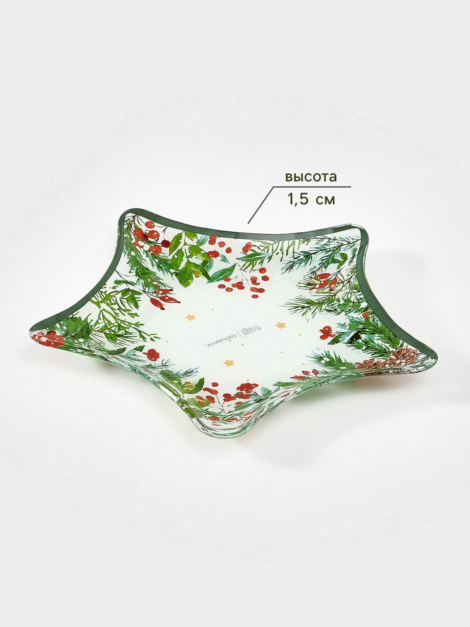 Цвет: Белый, Зелёный Размер упаковки: 2.5 x 20 x 20 см. tnved: 7013500000 Можно использовать в СВЧ-печи: Нет Набор: Нет Вид тарелки: Плоская Текстура: Гладкая Особенности: Без особенностей Рисунок: Да Форма: Звезда Тематика: Новогодняя Можно мыть в посудомоечной машине: Нет Символ года: Нет Крышка: Нет Тематика праздника: Новый год Маленькая звезда большой праздничный штрих! Сервировочное блюдо стеклянная тарелка в форме звезды диаметром 19,5 см с новогодним рисунком в бело-зелёной гамме. Оно подходит для подачи мини-закусок, конфет или как самостоятельный декоративный элемент на праздничном столе. Особенности: