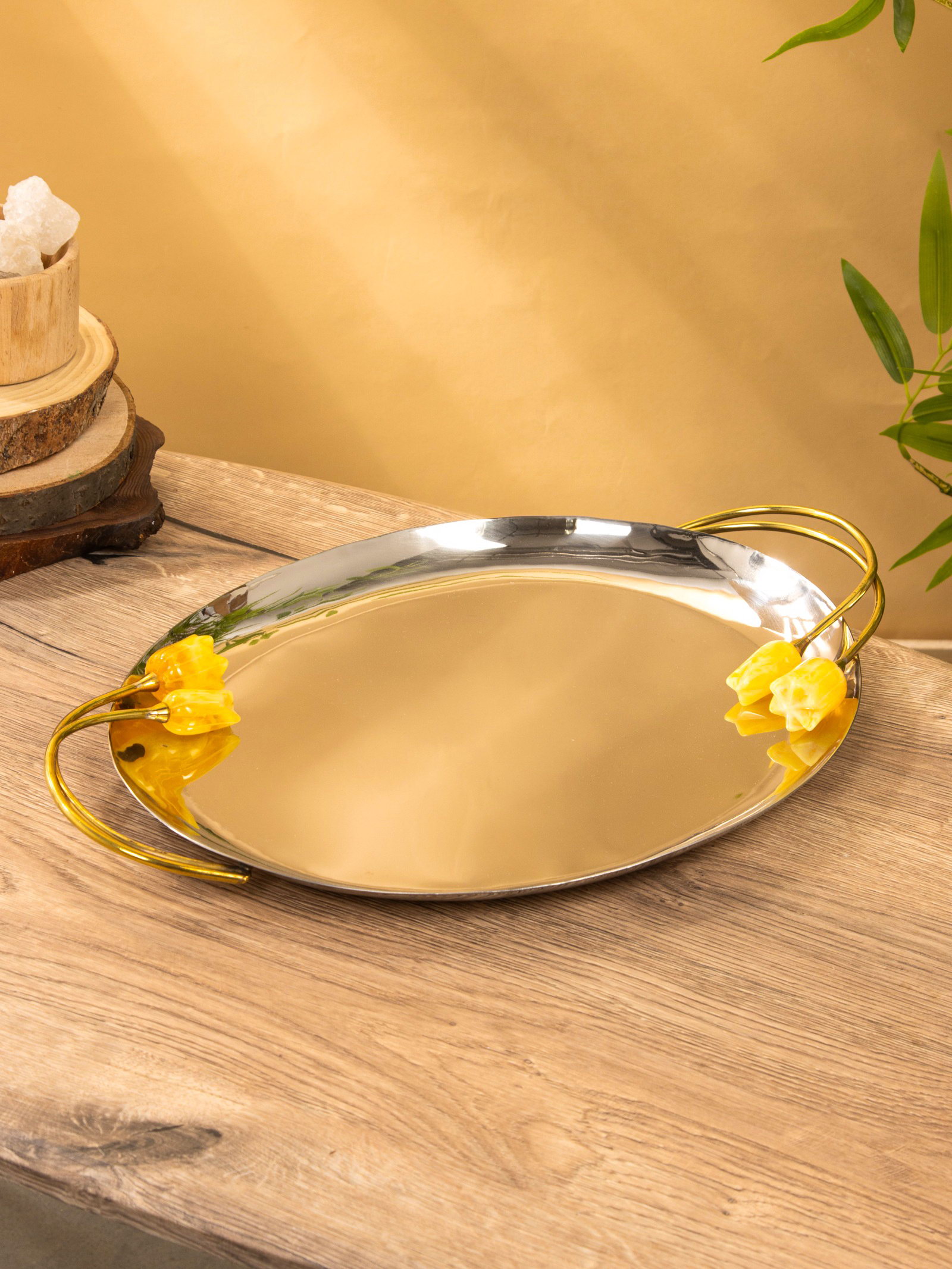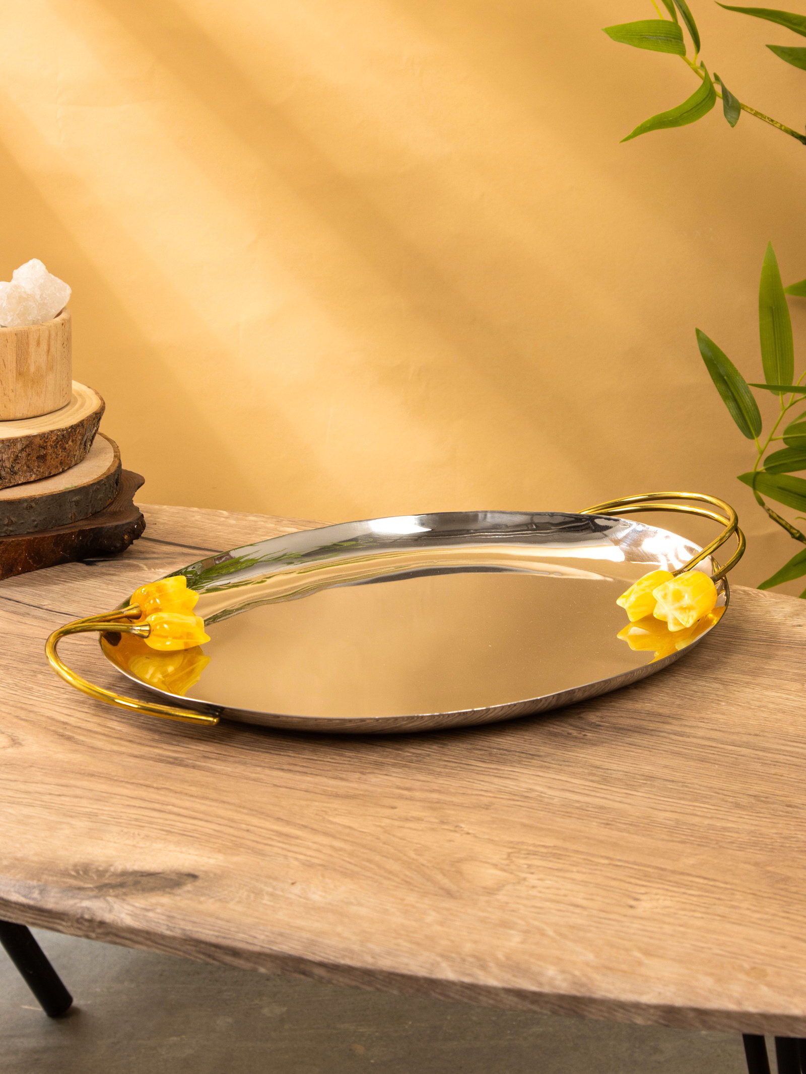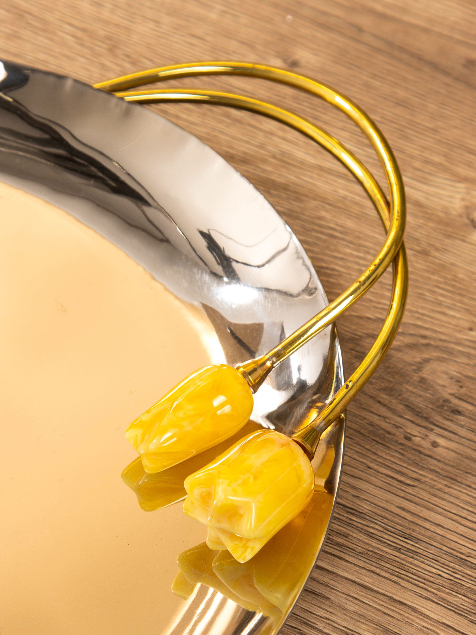Блюдо "Тюльпаны", 44x30x3 см, нержавеющая сталь, 30x44x3 см., Индия