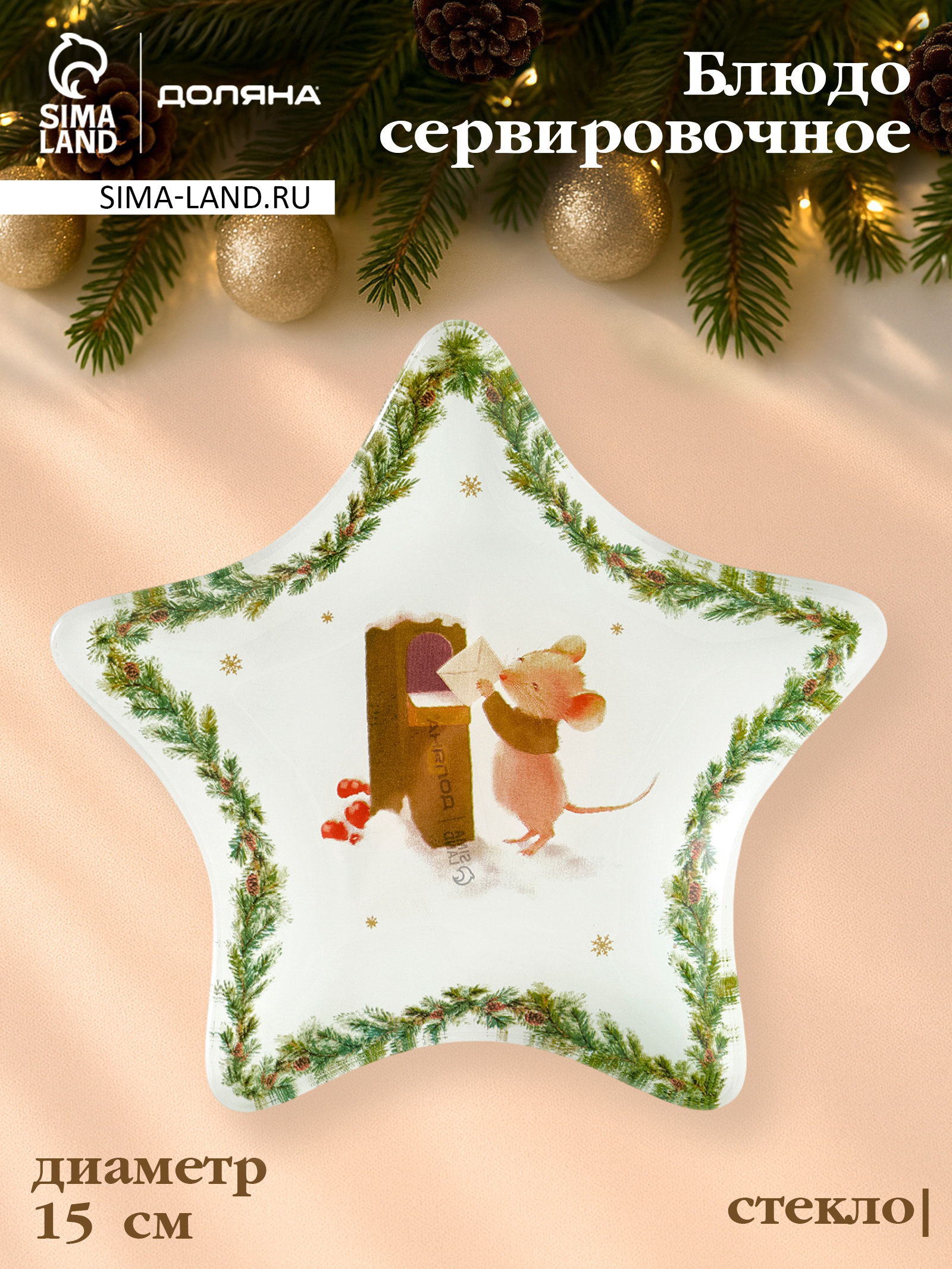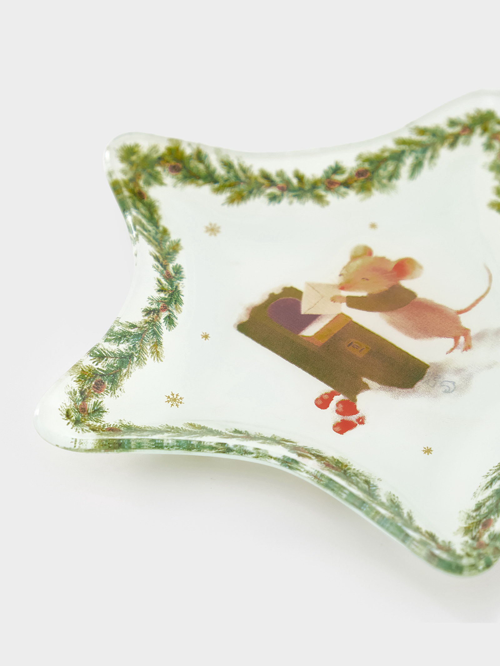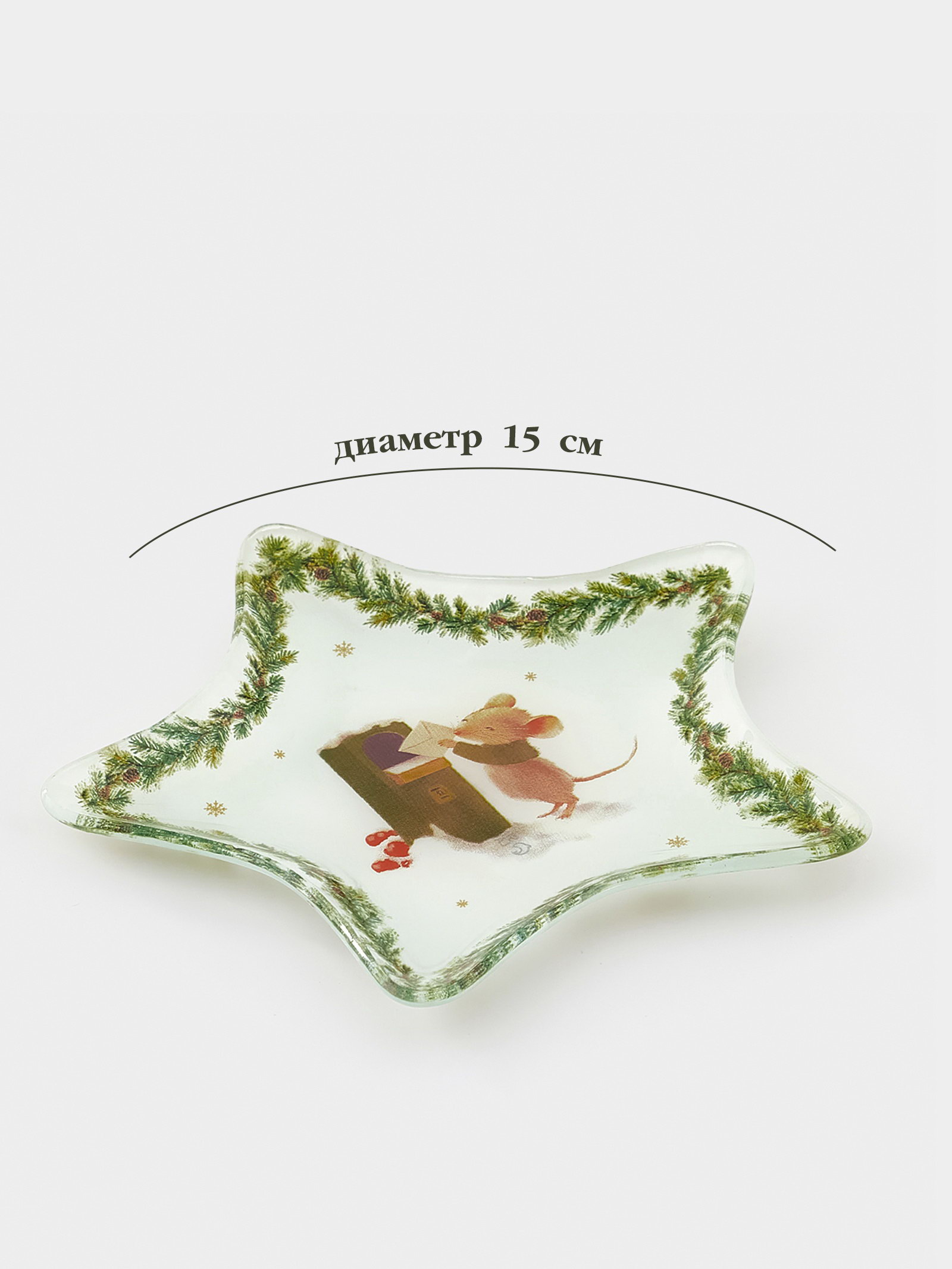 Блюдо сервировочное новогоднее "Новогодние зверята", d=15 см, стекло, белое, 15х15х1.5 см., Доляна, Китай