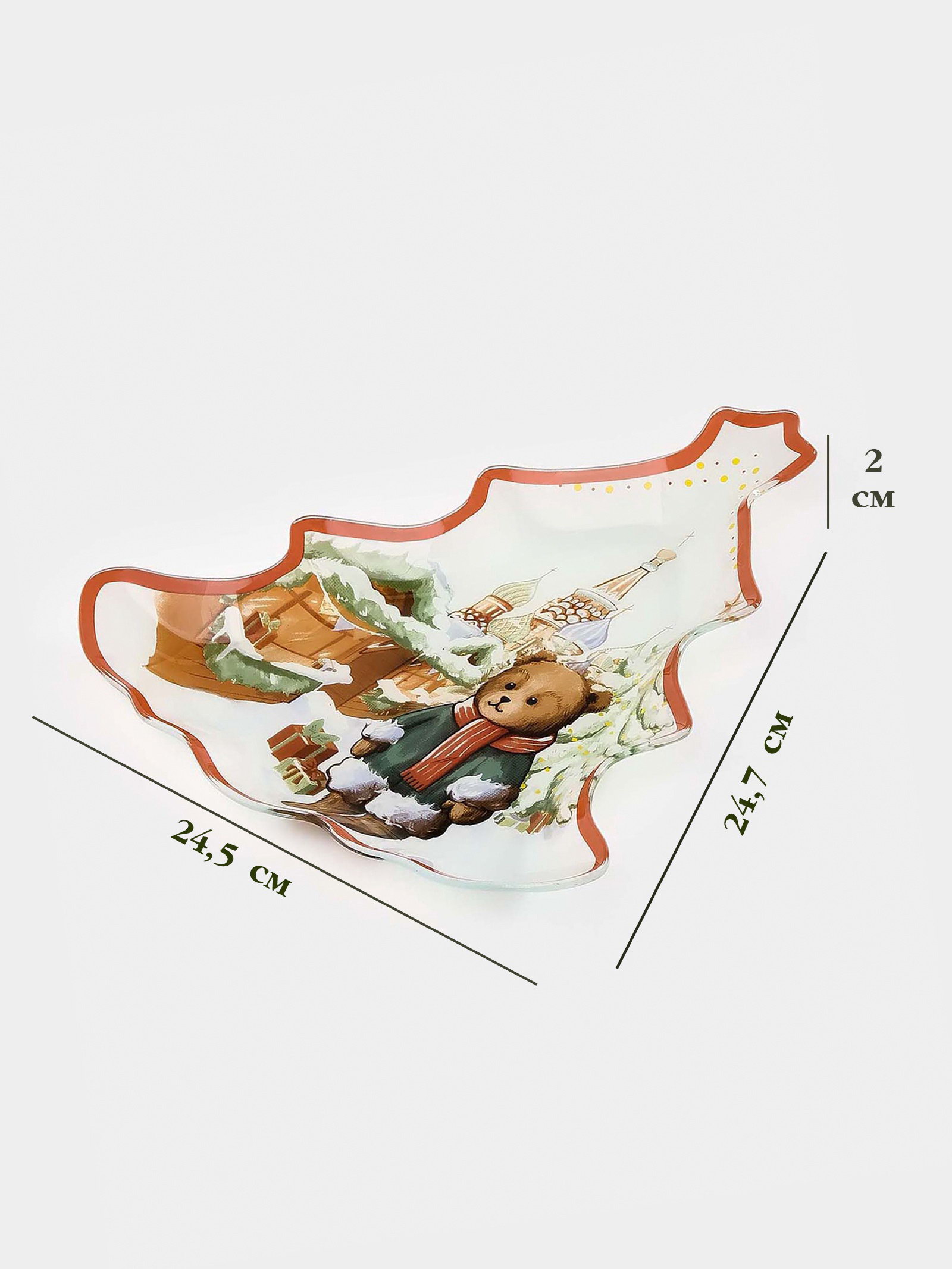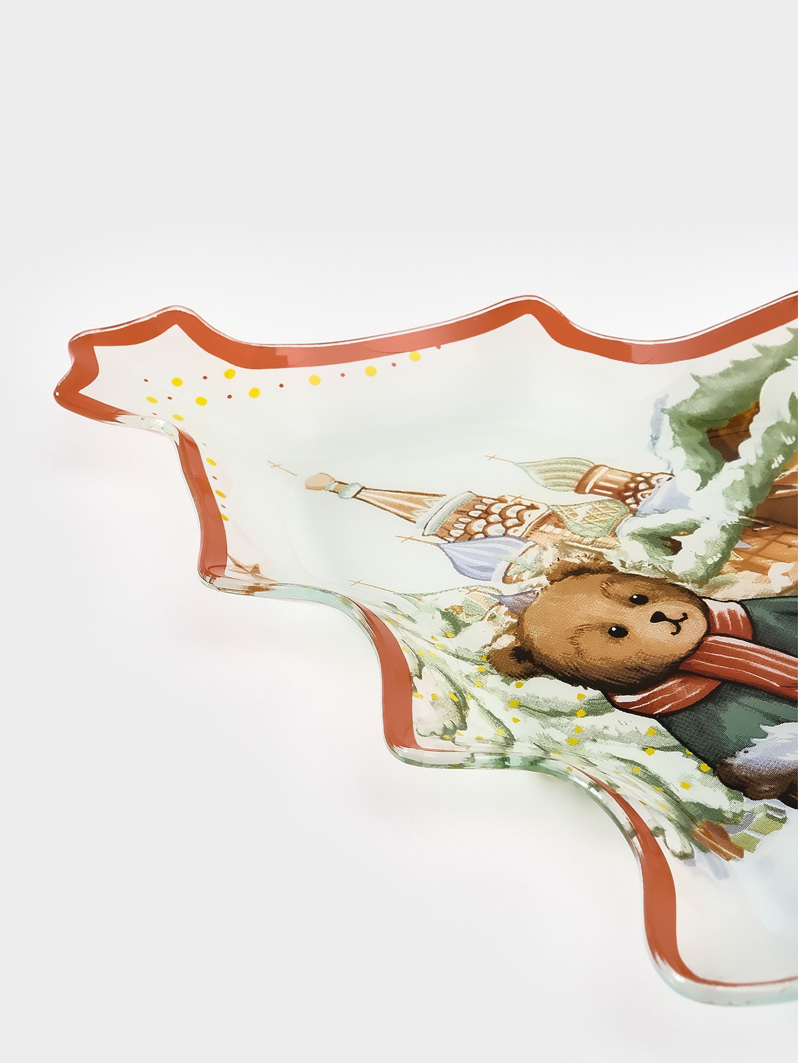 Блюдо сервировочное новогоднее "Московкий мишка", 24.5x24.7x2 см, стекло, белое, 24.7x24.5x2 см., Доляна, Китай