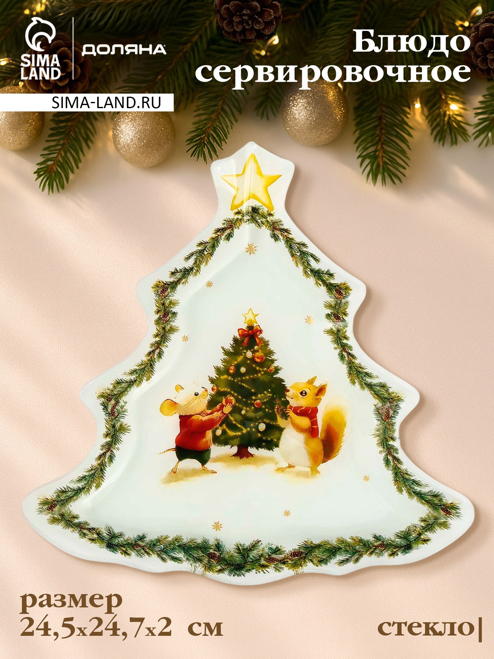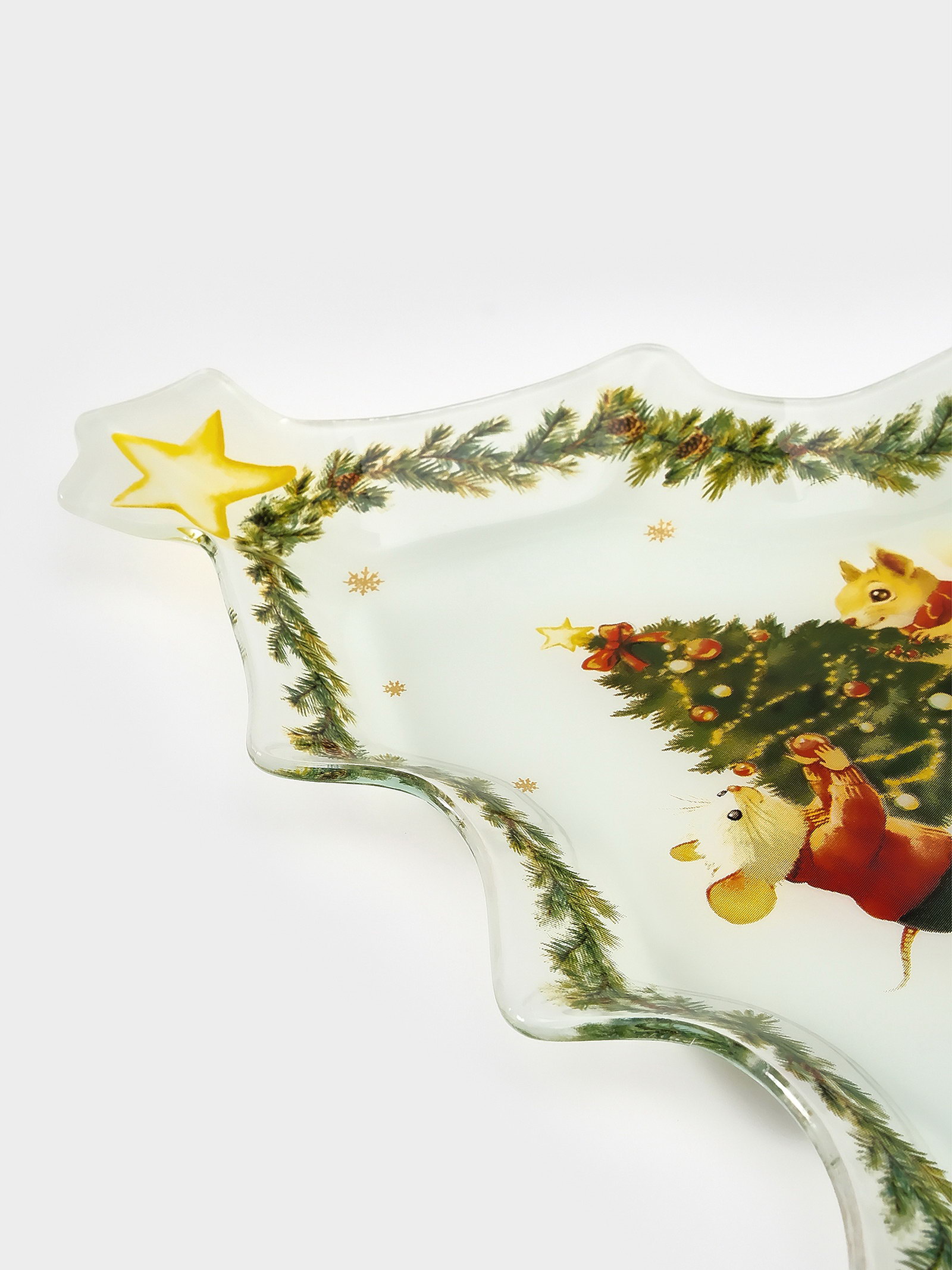 Блюдо сервировочное новогоднее "Новогодние зверята", 24.5x24.7x2 см, стекло, белое, 24.7x24.5x2 см., Доляна, Китай