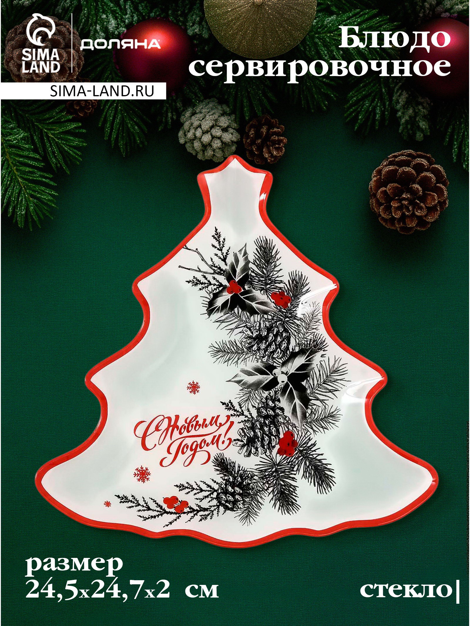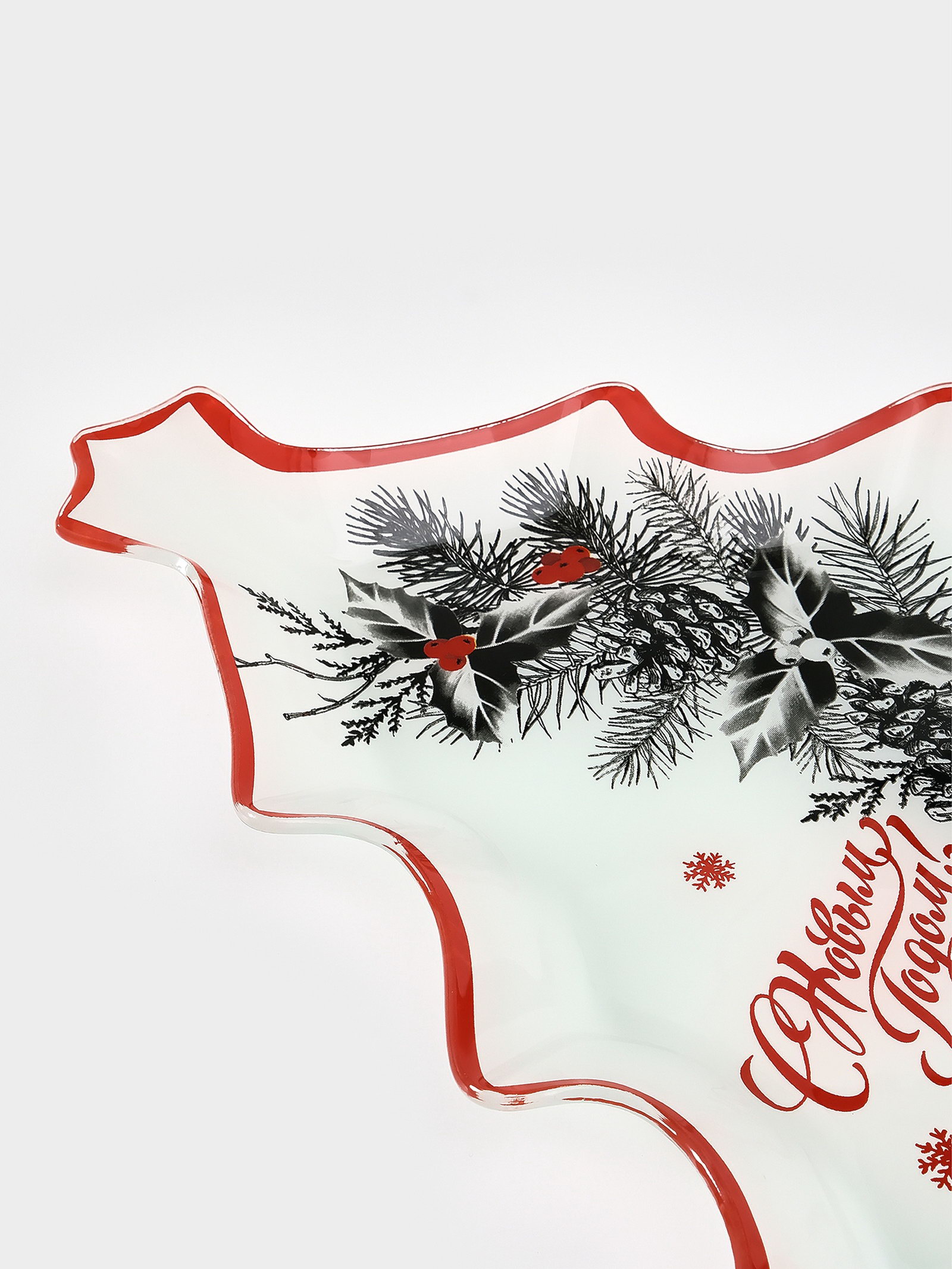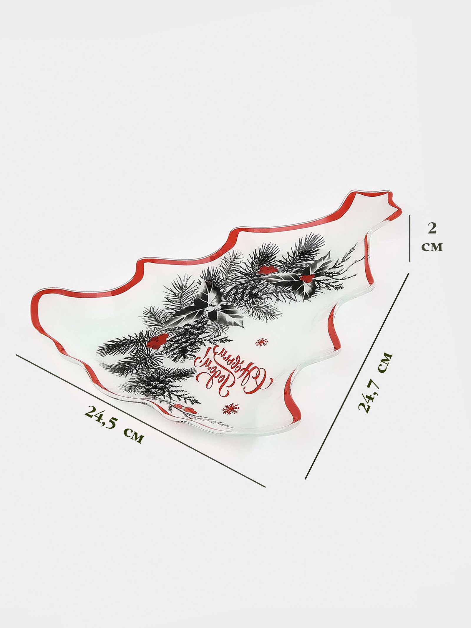 Блюдо сервировочное новогоднее "С Новым Годом", 24.5x24.7x2 см, стекло, белое, 24.7x24.5x2 см., Доляна, Китай