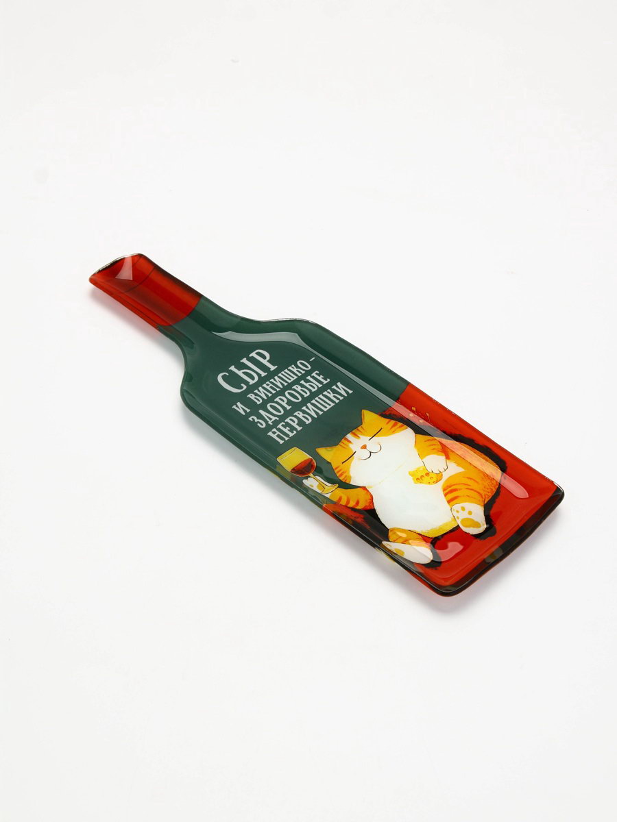 Тарелка в форме бутылки "Котик", 11.3x34.5 см, 12x35x1.5 см., Дорого внимание, Китай