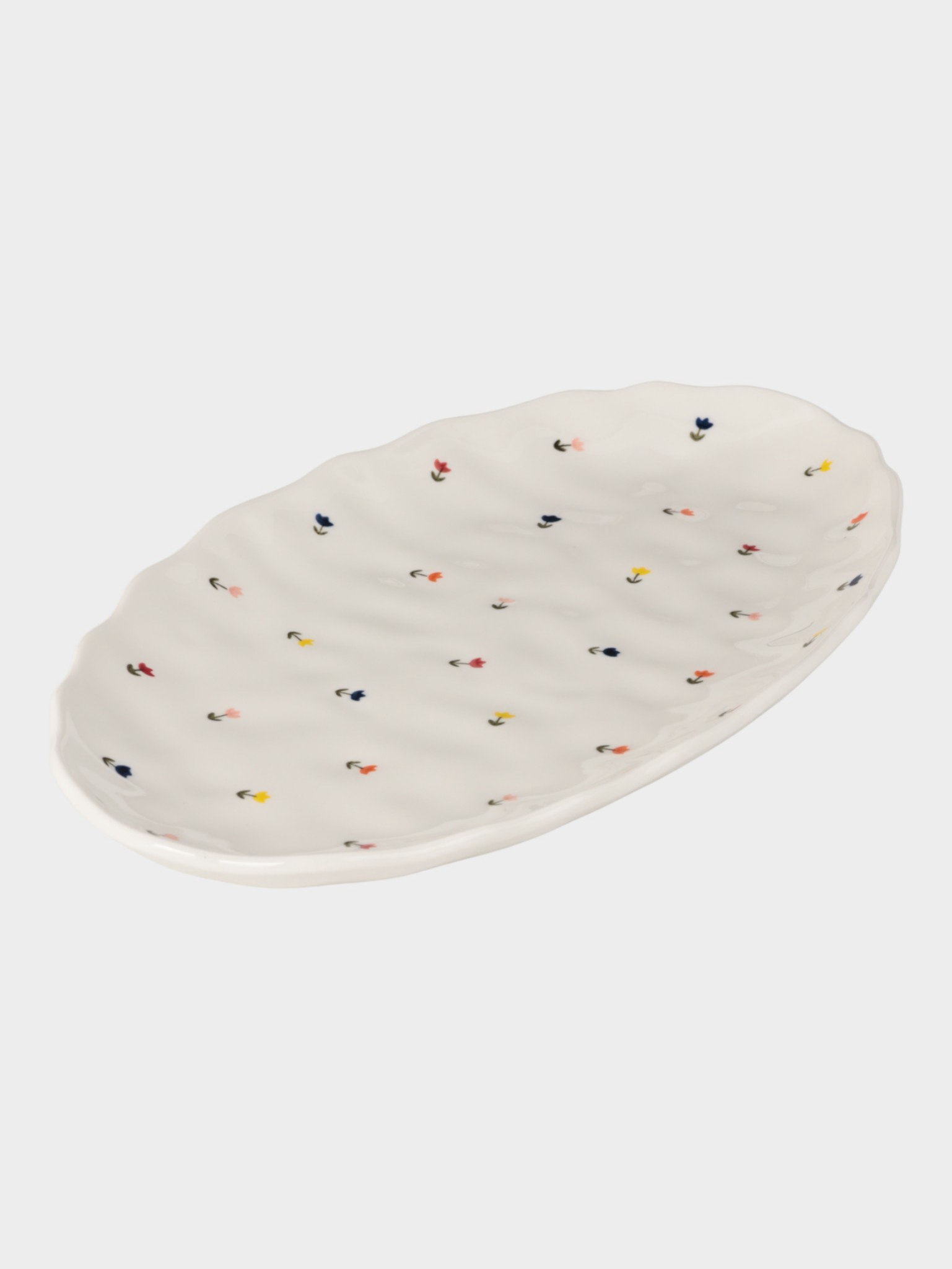 Блюдо сервировочное "Уютный дом. Тюльпаны", 30.5x18x2.5 см, керамика, белая, Китай