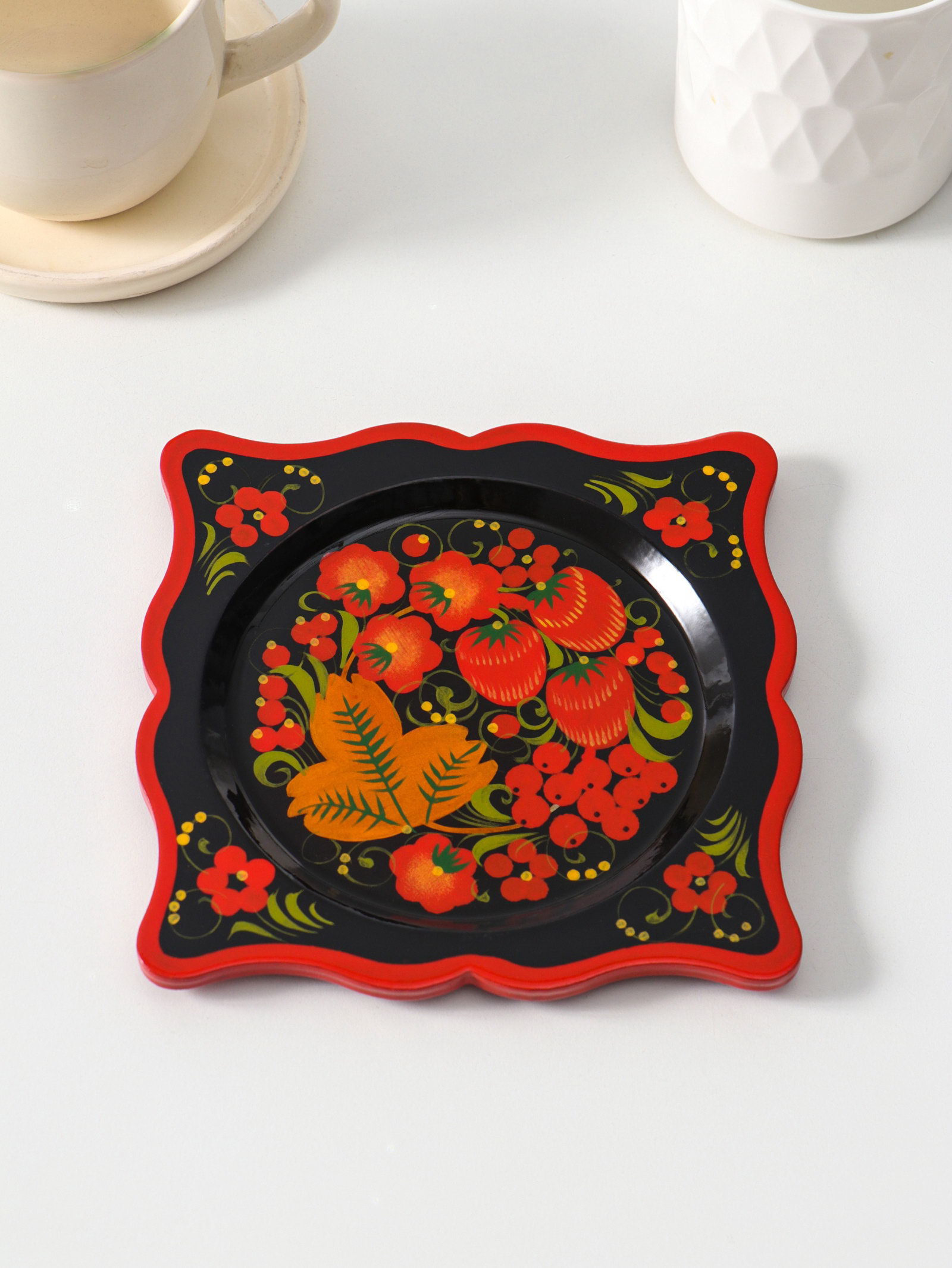Блюдо сервировочное "Квадрат", 15x15 см, дерево, хохлома, Россия