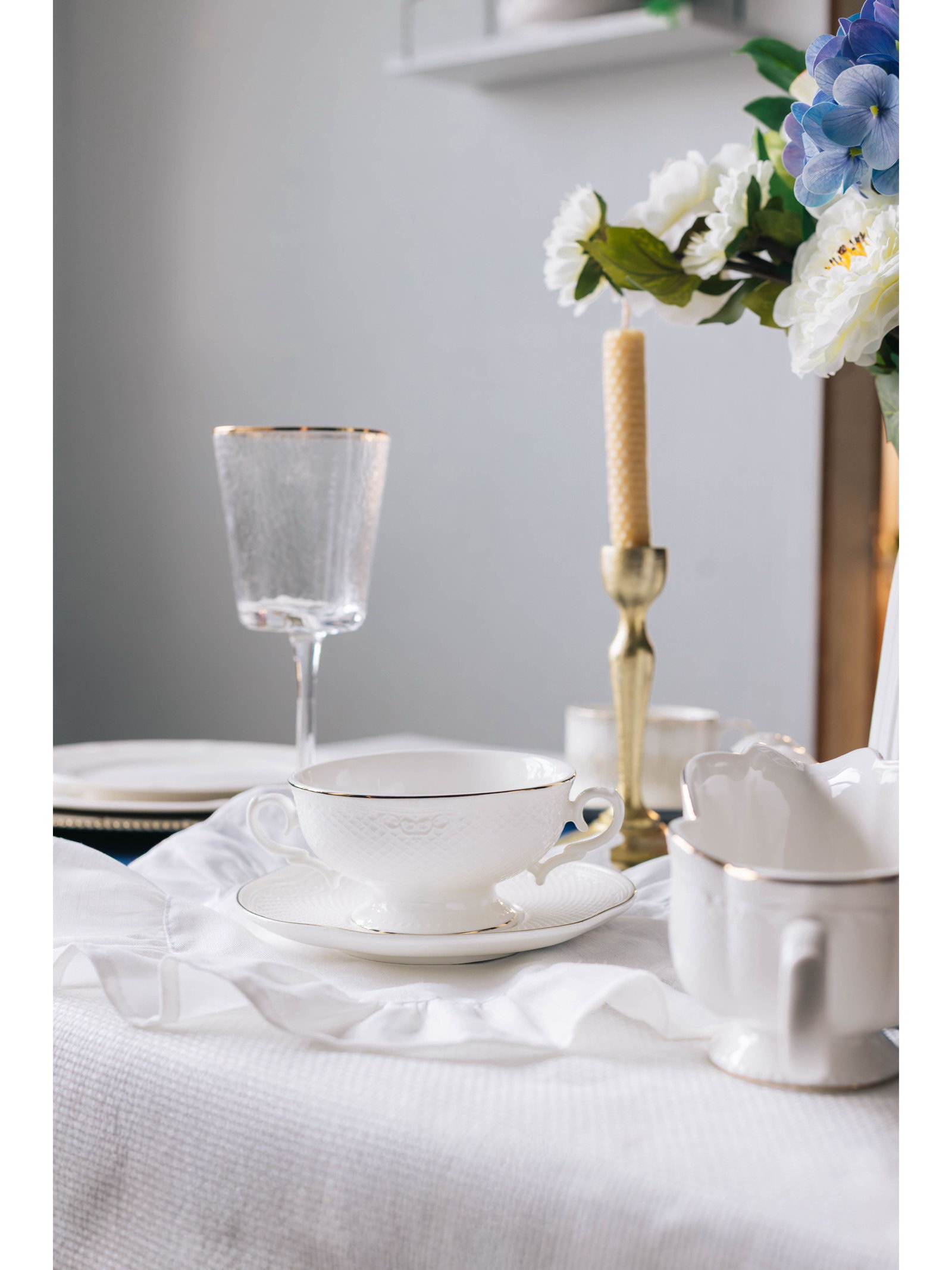 Бульонница с блюдцем WY Empire, 280 мл, фарфор, белая, 11.8х11.8х9 см., Wilson&Young, Китай