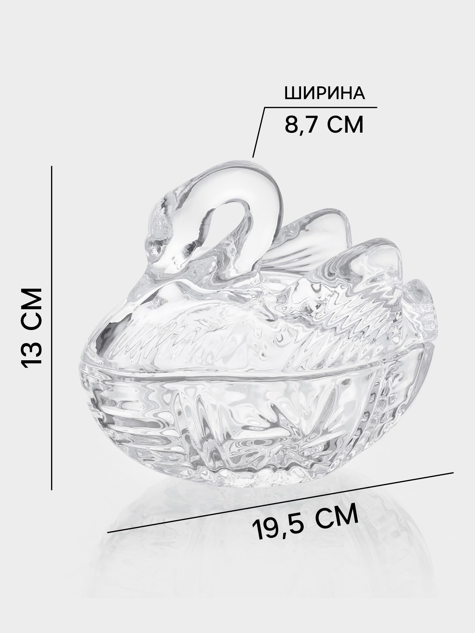 Икорница "Лебедь", 200 мл, 13.5x8.7x13 см, стекло, прозрачная, 8.7x13.5x13 см., Китай