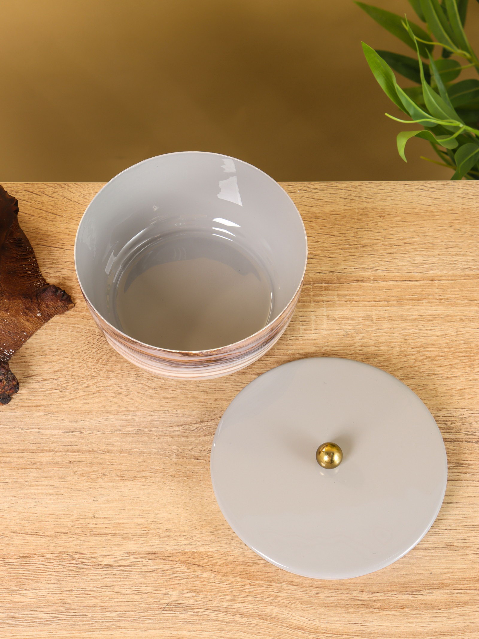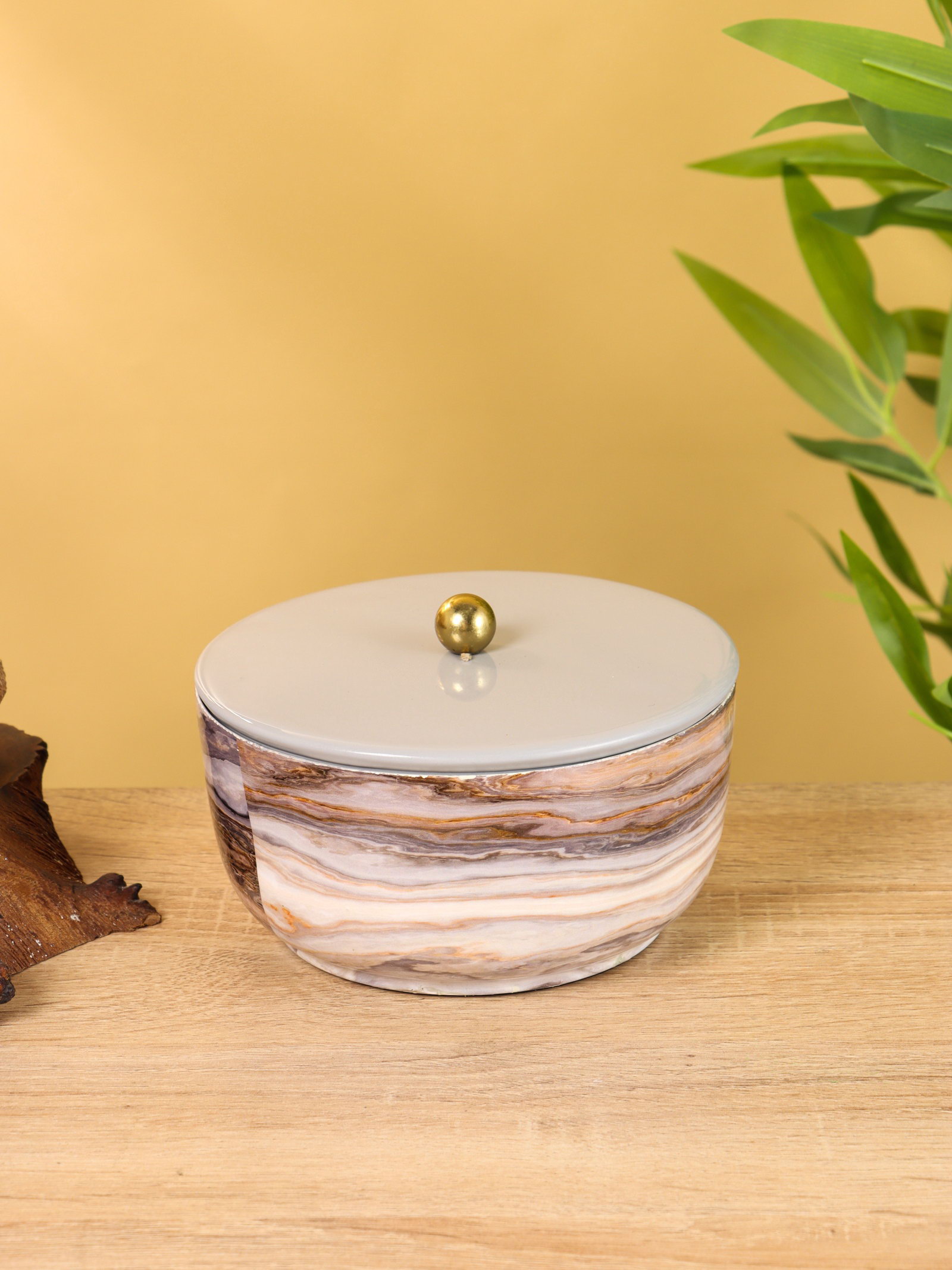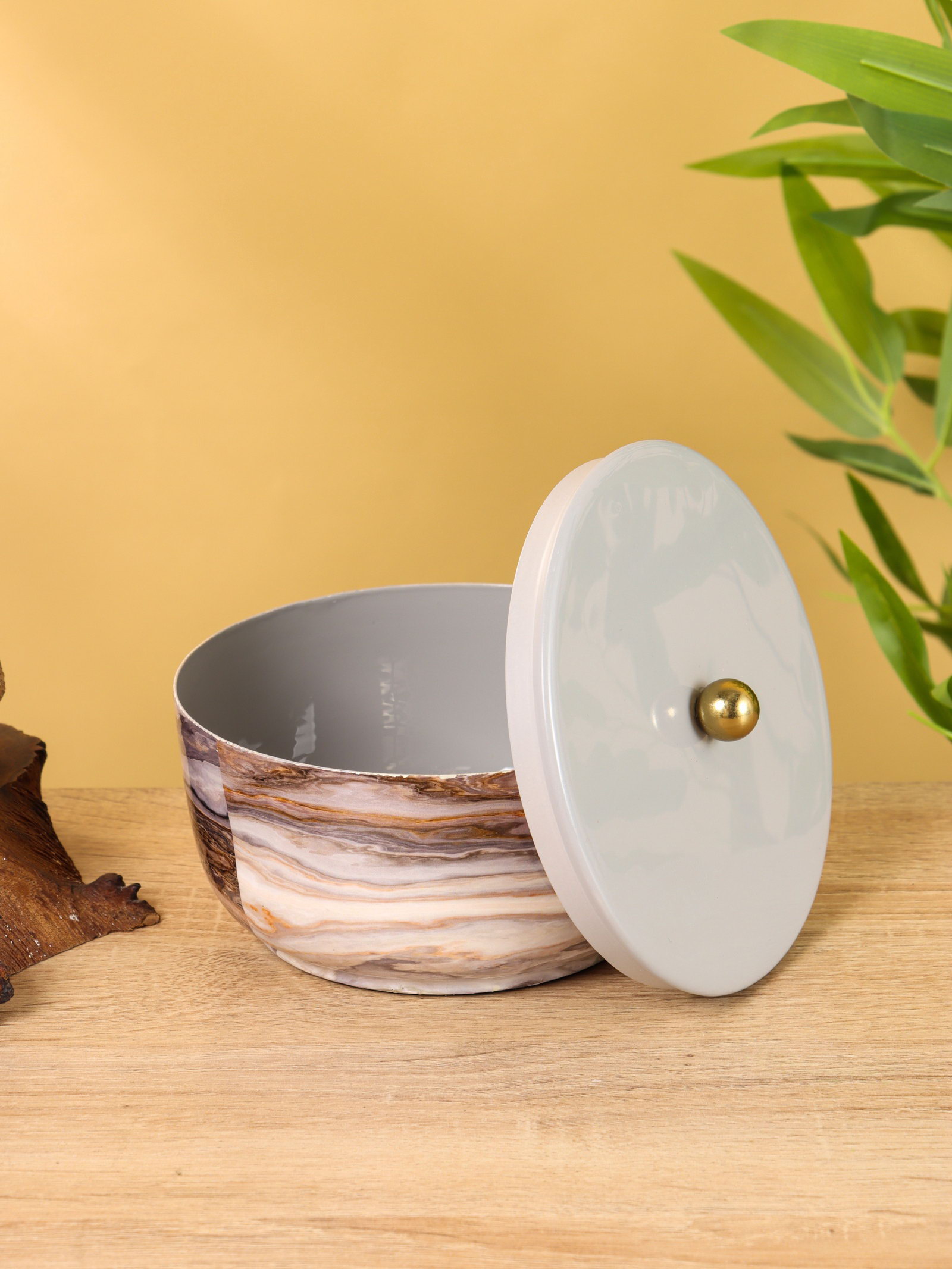 Размер упаковки: 16 x 12 x 15 см. tnved: 7323990000 Тематика: Мрамор Текстура: Гладкая Форма: Круг Цвет: Бежевый Особенности: Без особенностей Крышка: Да Набор: Нет Можно мыть в посудомоечной машине: Нет Рисунок: Да | ||