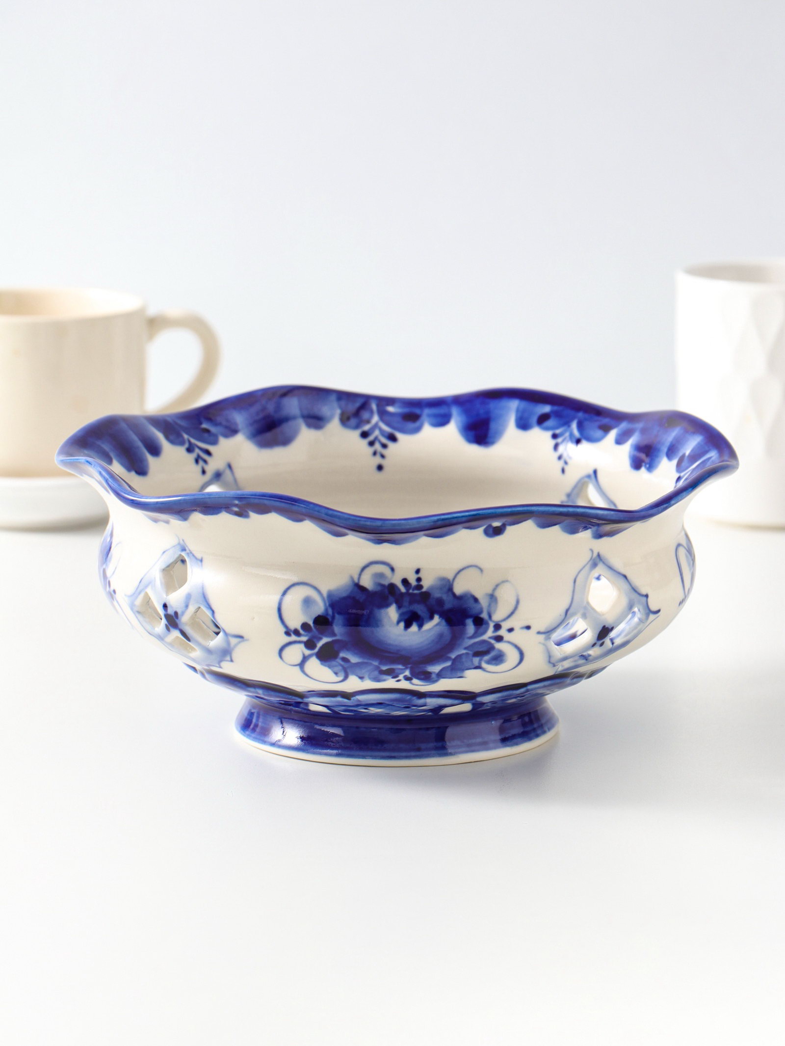 Авторская работа в каждой детали Это не серийный предмет, а произведение, расписанное вручную по канонам знаменитой гжельской техники. Сочные сине-голубые мазки, сложенные в цветочно-растительный орнамент, никогда не повторяются в точности. Такая конфетница это выбор для особого случая и предмет, который передаётся в семье как ценная реликвия, храня тепло мастера и ваших домашних традиций. | ||