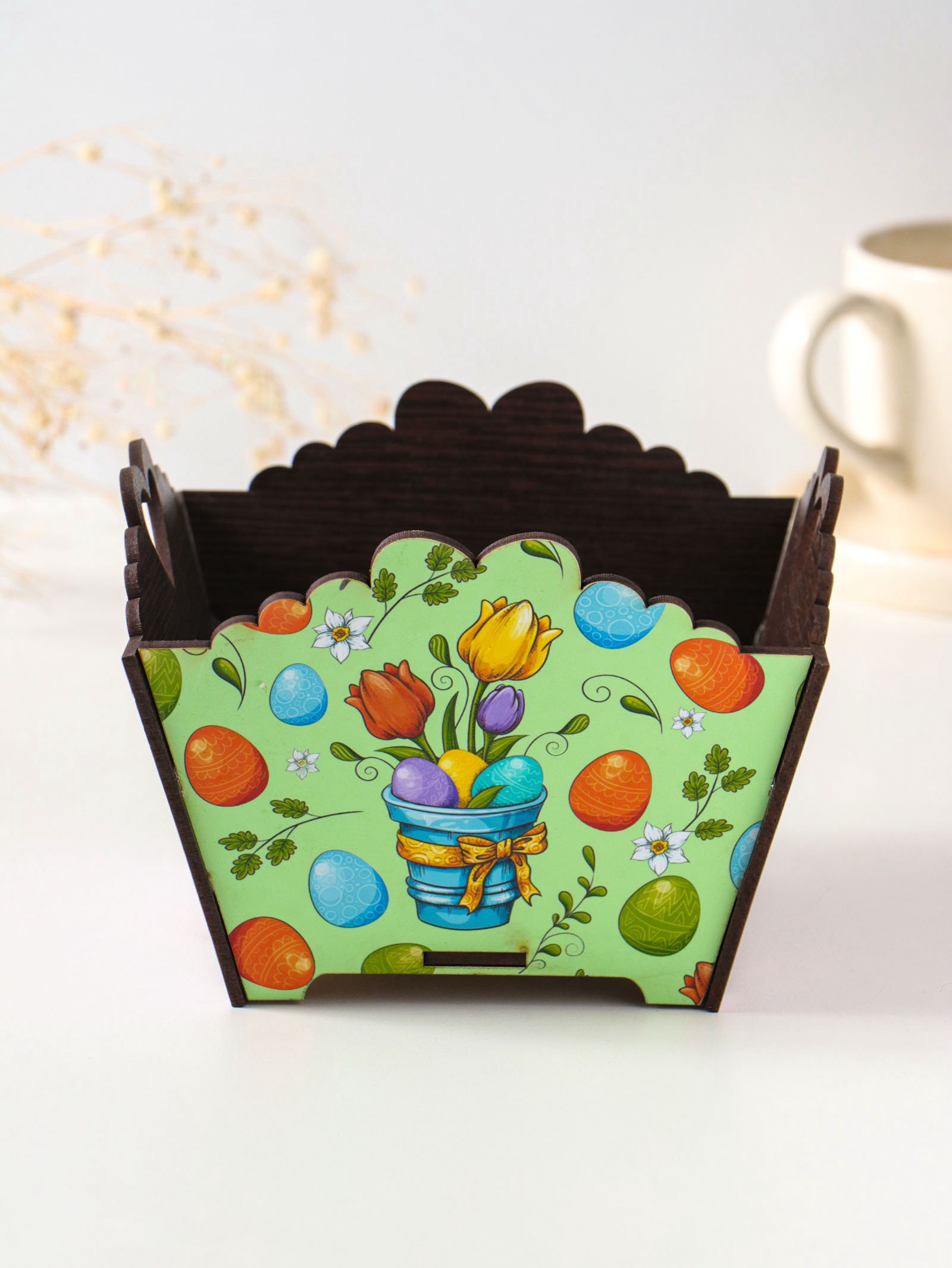 Цвет: Коричневый, Разноцветный Размер упаковки: 13 x 10 x 14.5 см. tnved: 4420190000 Температурное ограничение: Нет Можно мыть в посудомоечной машине: Нет Набор: Нет Рисунок: Да Крышка: Нет Текстура: Гладкая Особенности: Цифровая печать Тематика: Пасхальная Форма: Трапеция Эта квадратная подставка для пасхального кулича станет центральным элементом праздничного стола. Её трапециевидная форма создаёт устойчивую и элегантную основу для вашего творения, подчёркивая его значимость. Изделие выполнено из гладкого ХДФ с детальной печатью в тёплых коричневых тонах с праздничными узорами. Особенности и уход