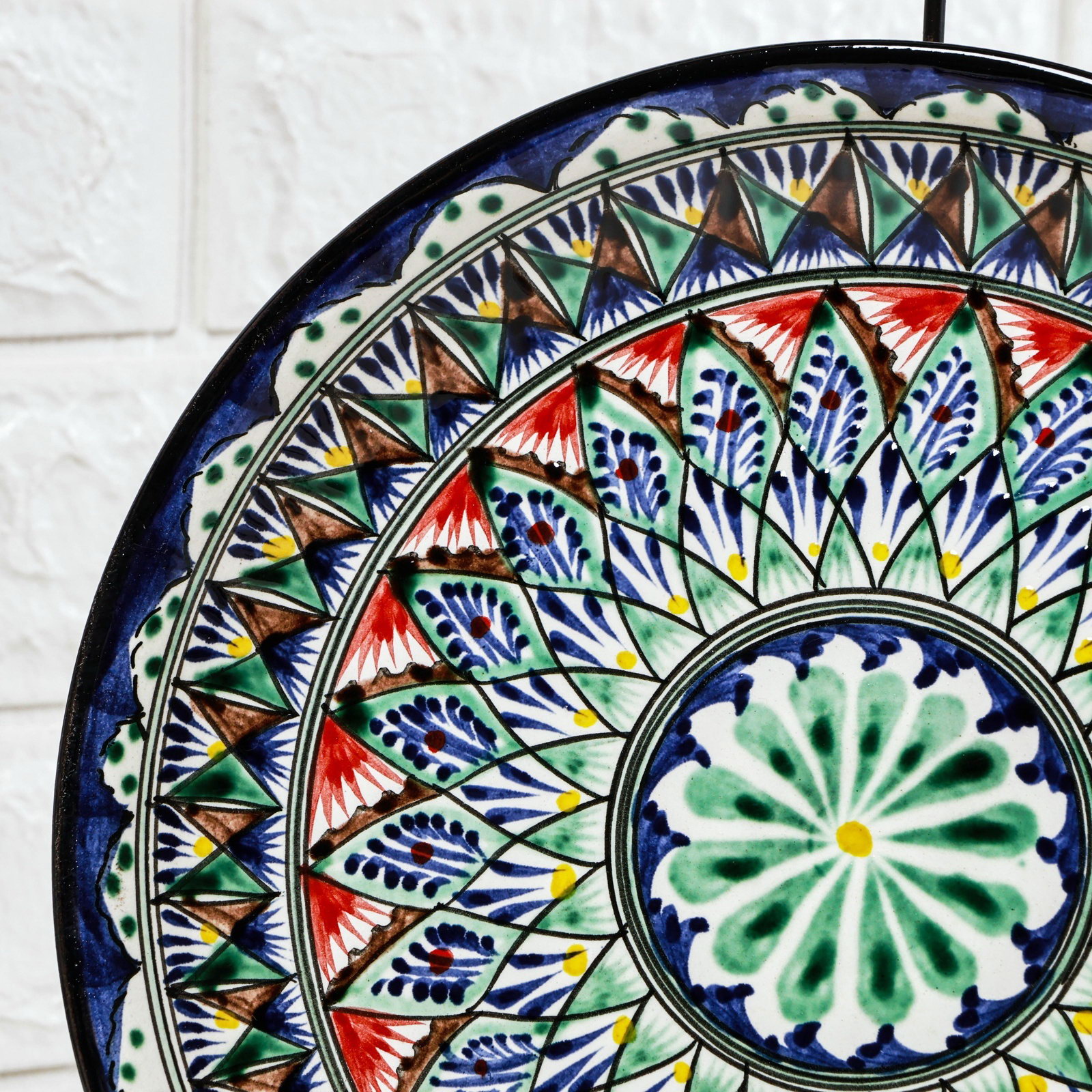 Ляган узбекский Риштанская Керамика "Узоры", d=25 см, синий, 25 см., Шафран, Узбекистан