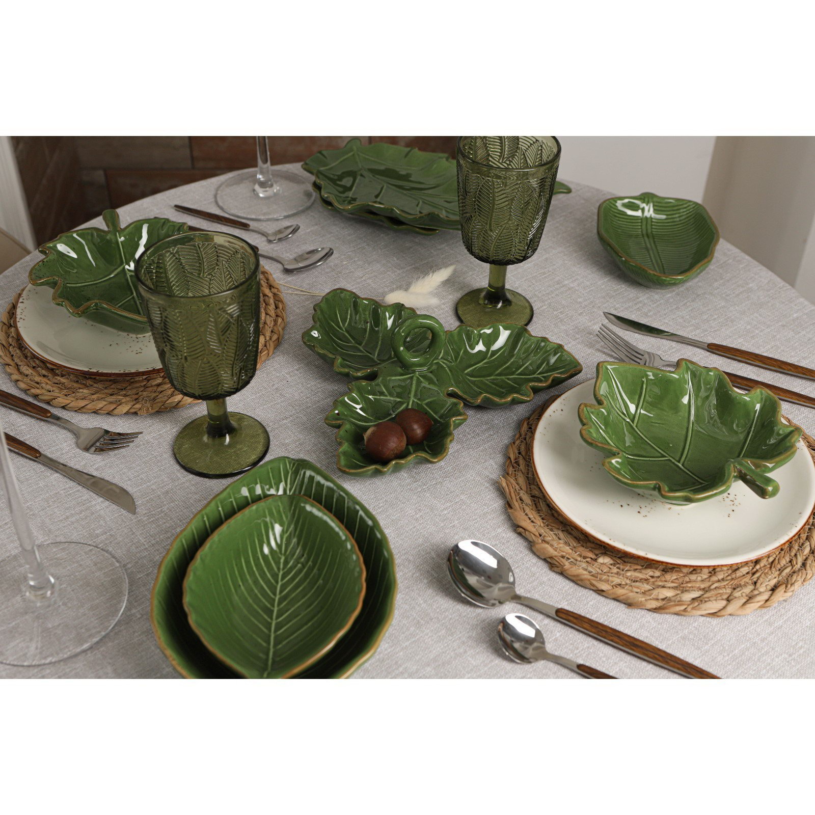 Менажница 3 ячейки "Лист", 22.1x7.6 см, доломит, зелёная, 20.8x22.1x7.6 см., Доляна, Китай