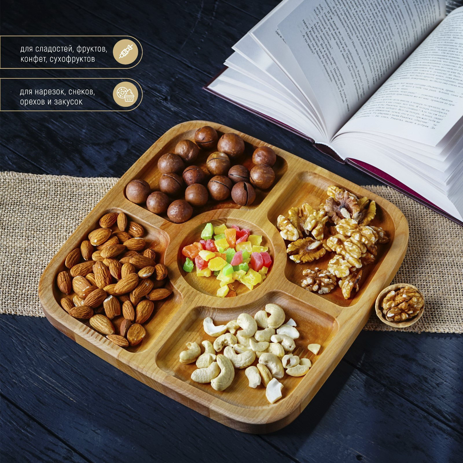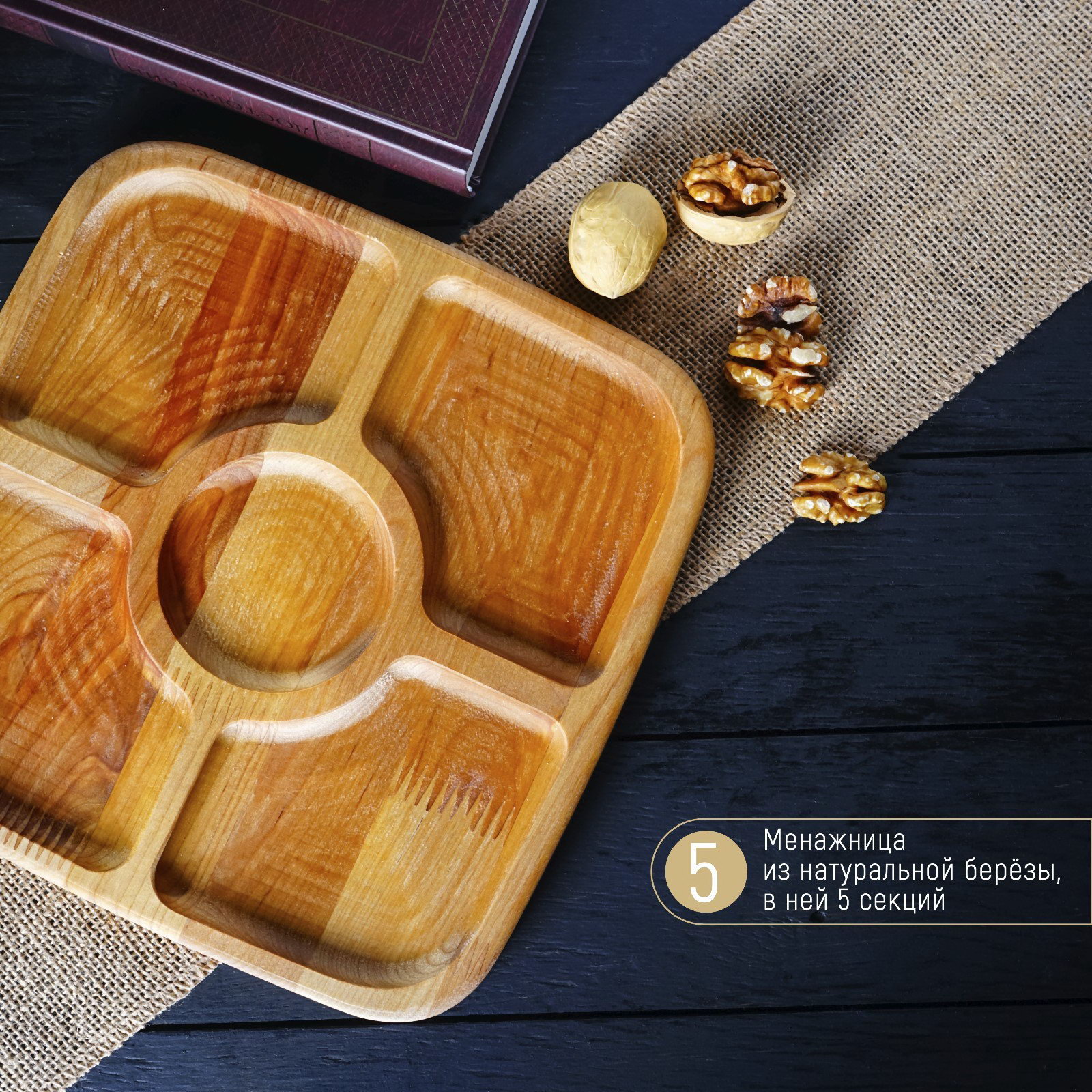 Менажница 25x25x1.8 см, 5 секций, квадратная, дерево берёза, Доляна, Россия