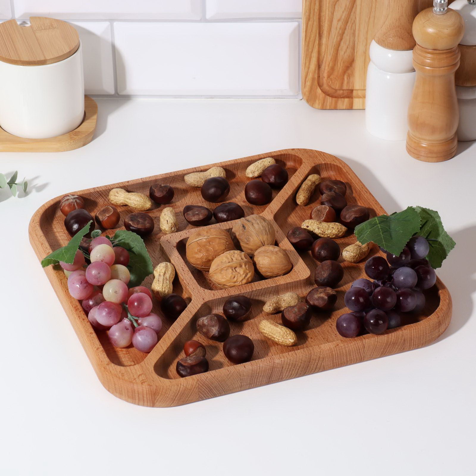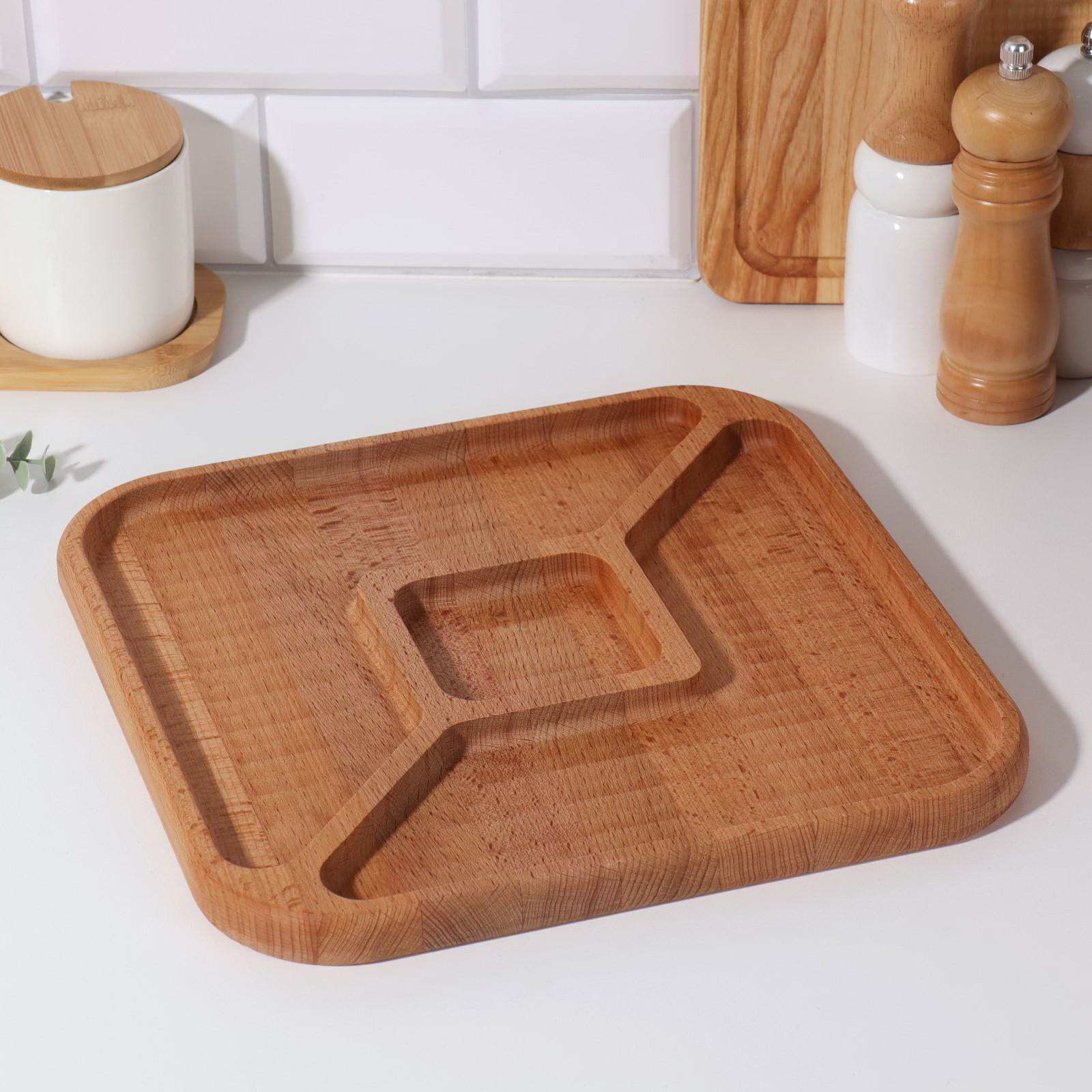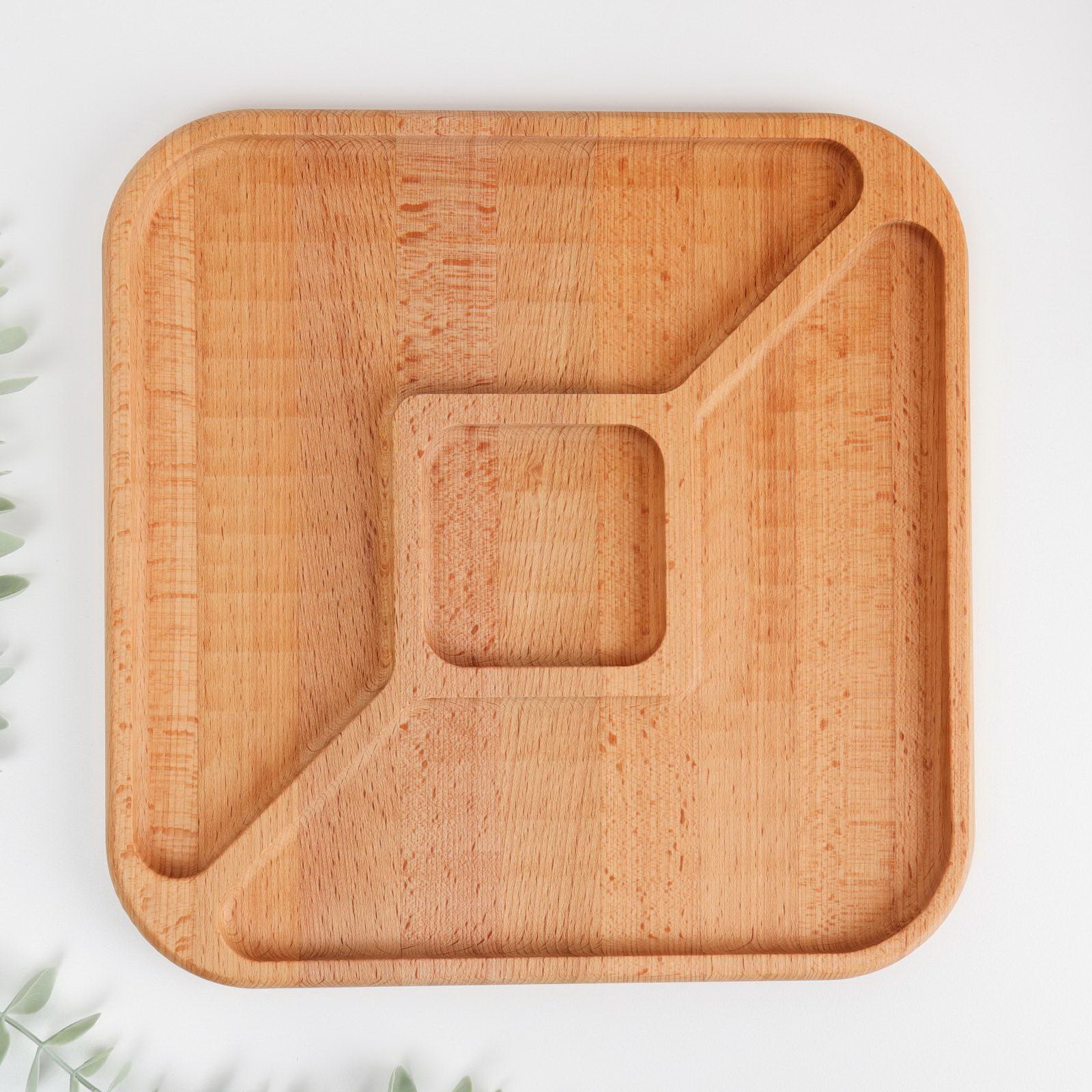 Менажница. квадратная, 3 секции, 29x2 см, дерево бук, Дарим Красиво, Россия