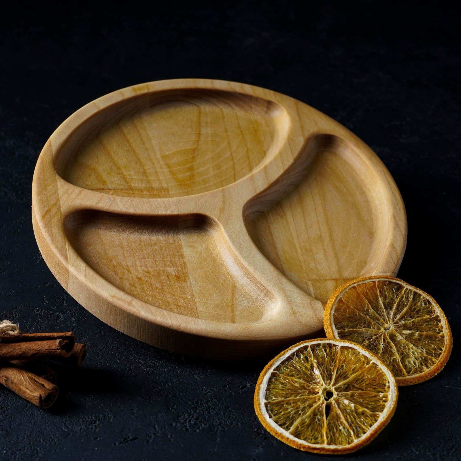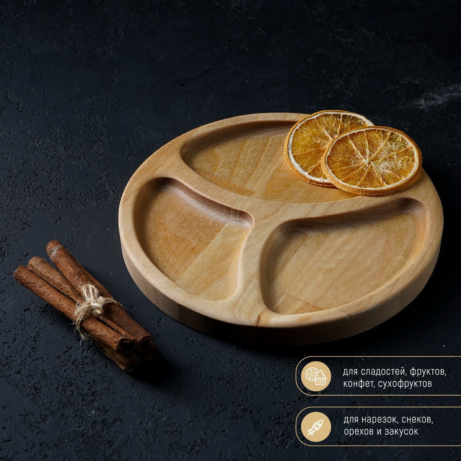 Менажница "Валенсия", d=20 см, 3 секции, дерево берёза, пропитана маслом, Доляна, Россия