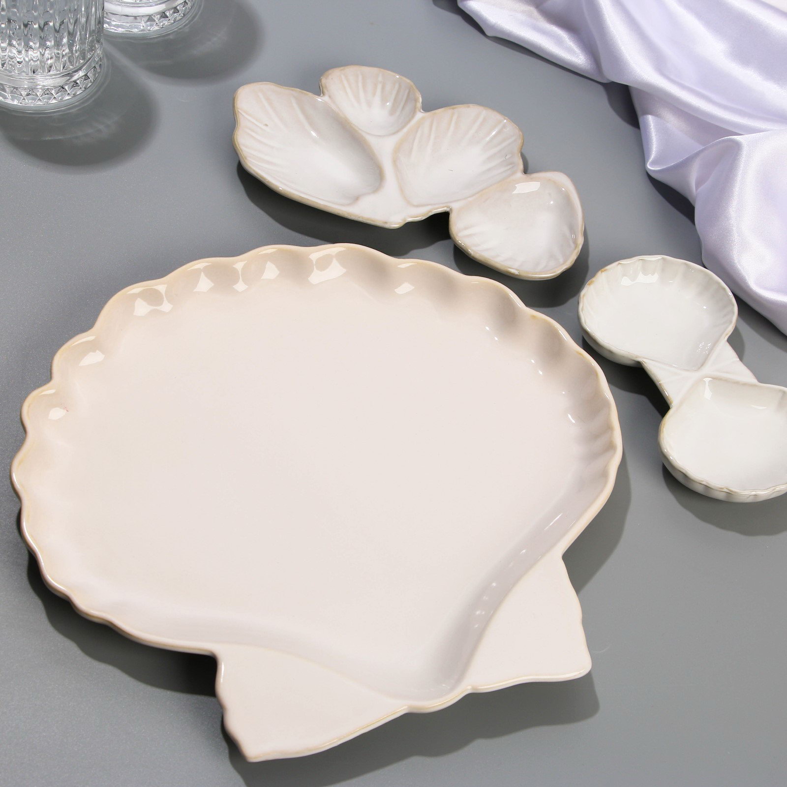 Менажница "Морская ракушка", 12x20 см белая, 11.5x20x2 см., Dolce Ceramo., Китай
