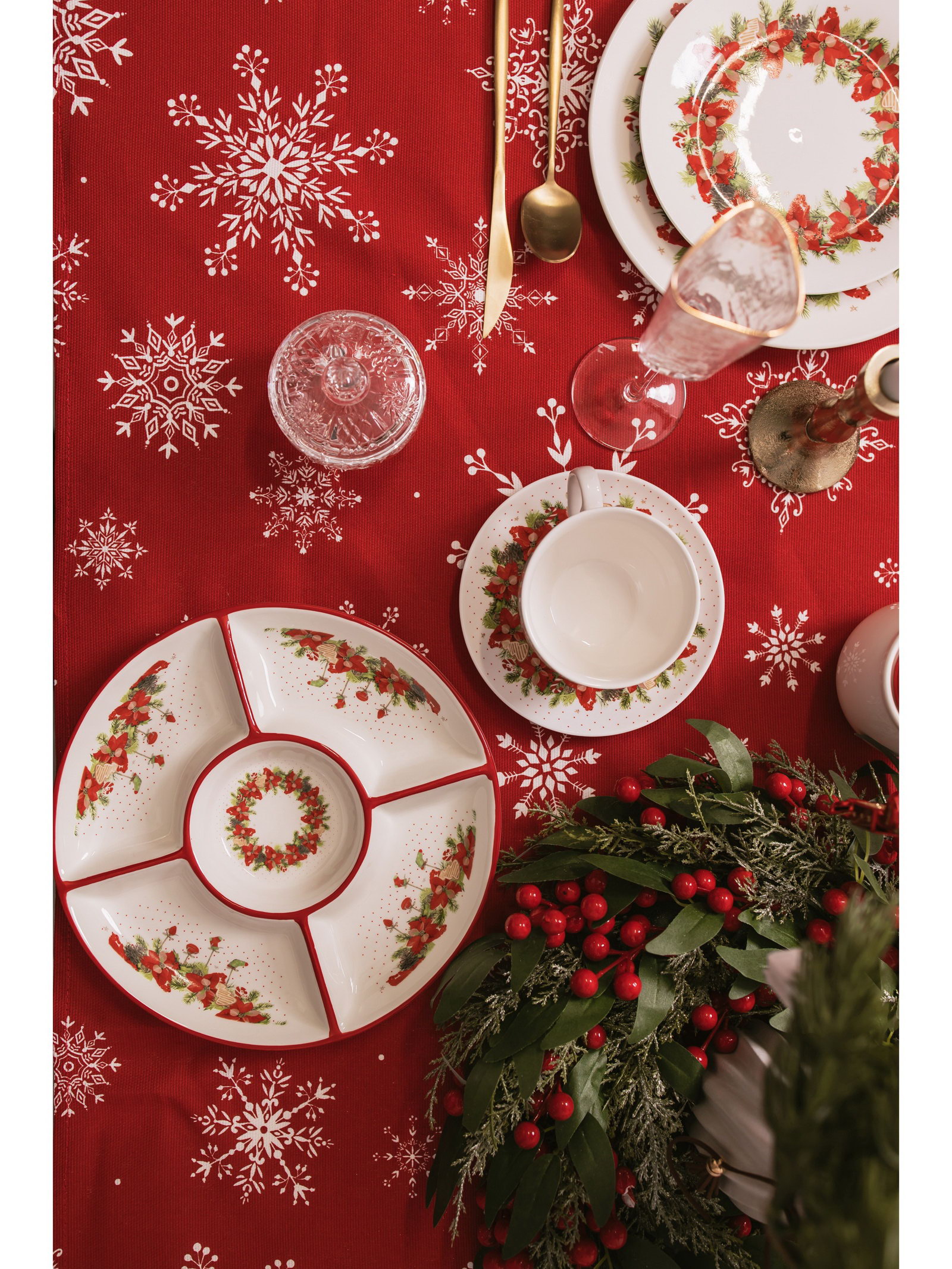 Менажница "Новогоднее настроение", 5 секций, 25.5x3.1 см, доломит, белая, 25.5x25.5x3.1 см., Доляна, Китай
