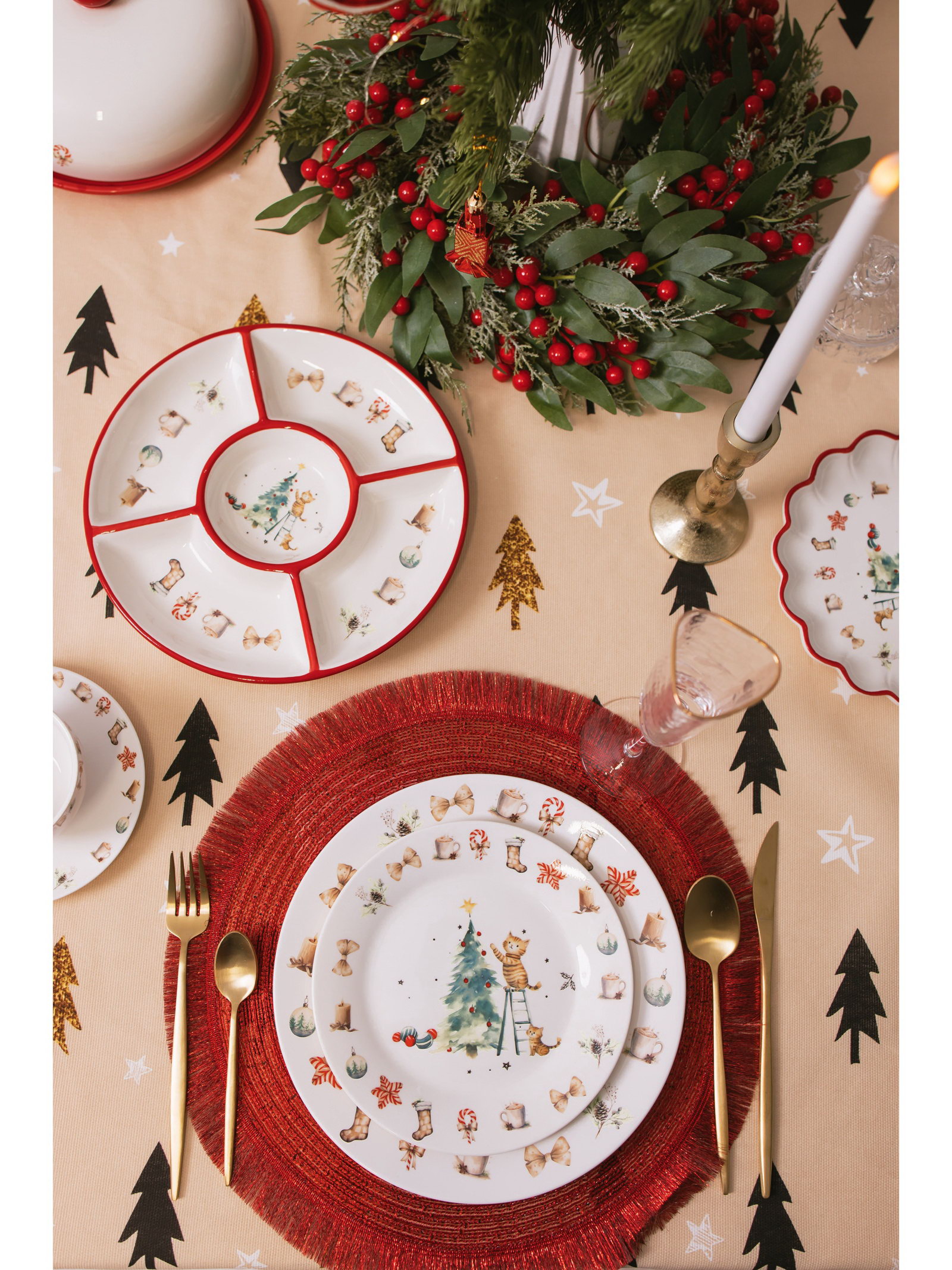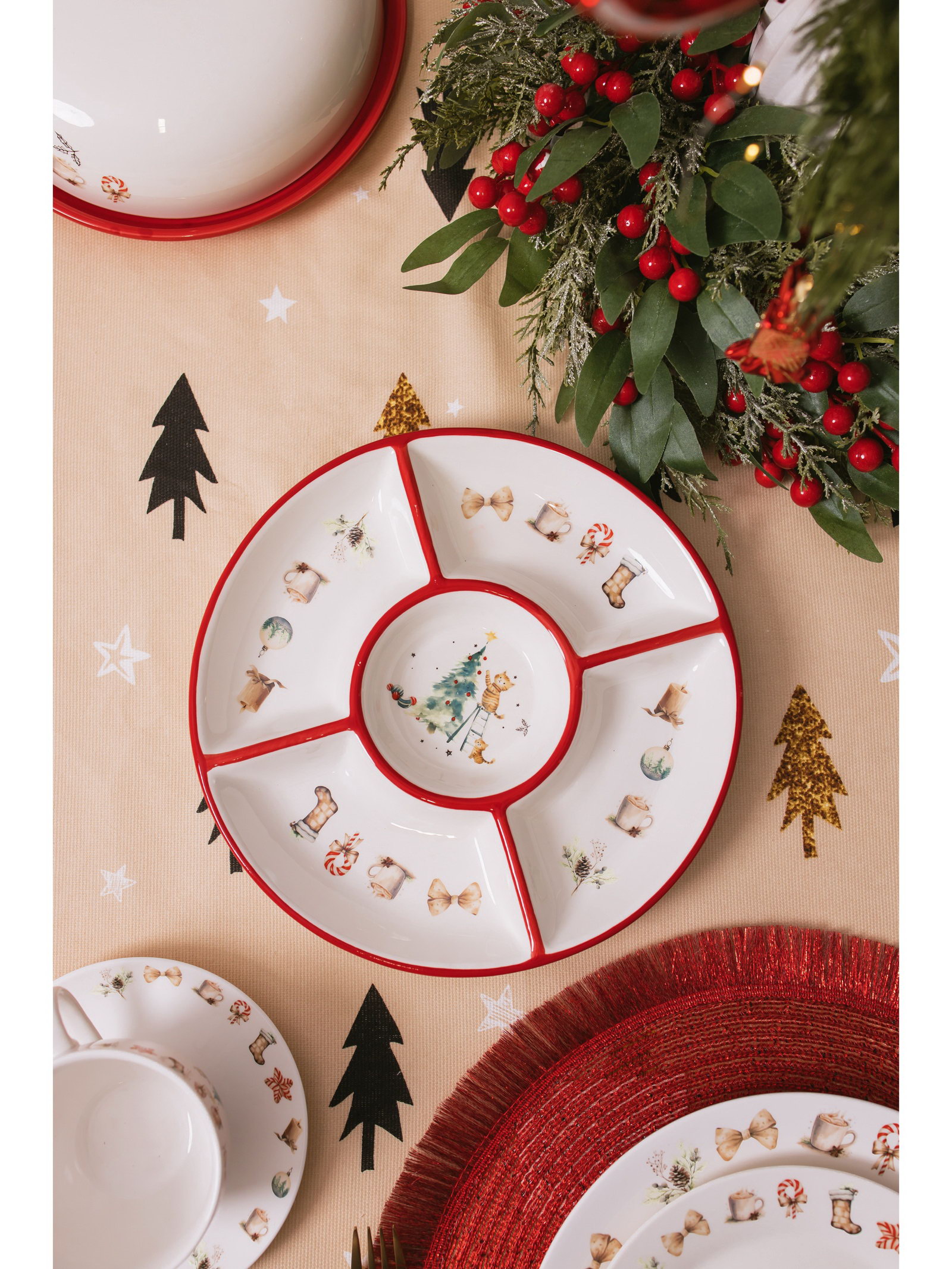 Менажница новогодняя "Волшебный праздник", 5 секций, 25.5x3.1 см, доломит, белая, 25.5x25.5x3.1 см., Доляна, Китай