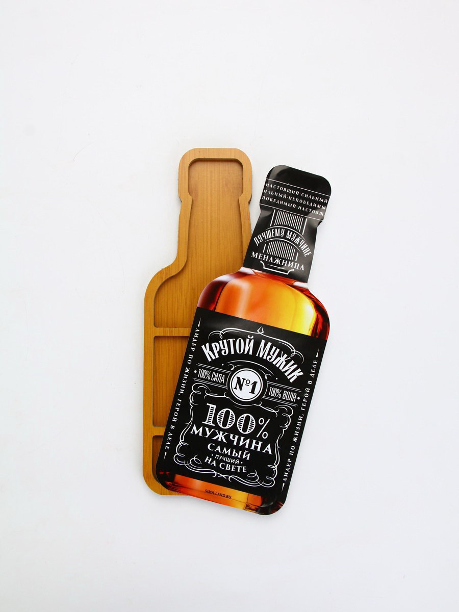 Размер упаковки: 10 x 30 x 1.5 см. tnved: 4419900000 Набор: Нет Количество ячеек: 3 Форма: Фигурная Можно мыть в посудомоечной машине: Нет Тематика: Надписи, цифры, буквы Менажница "Крутой мужик" это не парадная похвала, а тёплая, чуть шутливая дань уважения человеку, на которого можно положиться. Её силуэт повторяет классическую бутылку виски сдержанную, основательную, без вычурности. Три секции внутри для закусок, орехов, сыра или фруктов как намёк на разные роли одного и того же человека: отца, друга, напарника. А крышка, в стиле винтажной этикетки, несёт фразу: "Крутой мужик. 100 % мужчина. Самый лучший на свете". Без иронии. Без преувеличения. Просто как есть. Особенности