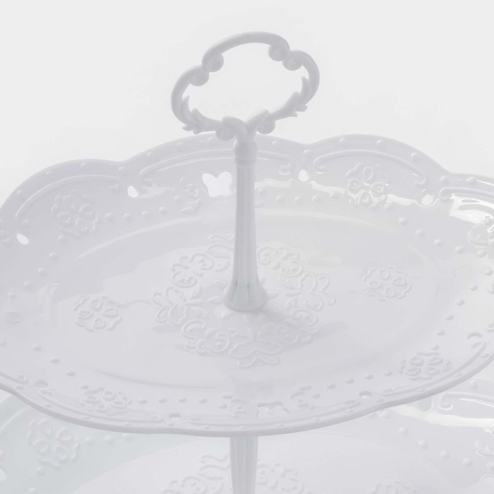Этажерка для фруктов и десертов "Вивьен", 2 ярусная, пластик, овальная, 25.5x17.5/30x21.5 см, белая, 21.5x30x2 см., Китай