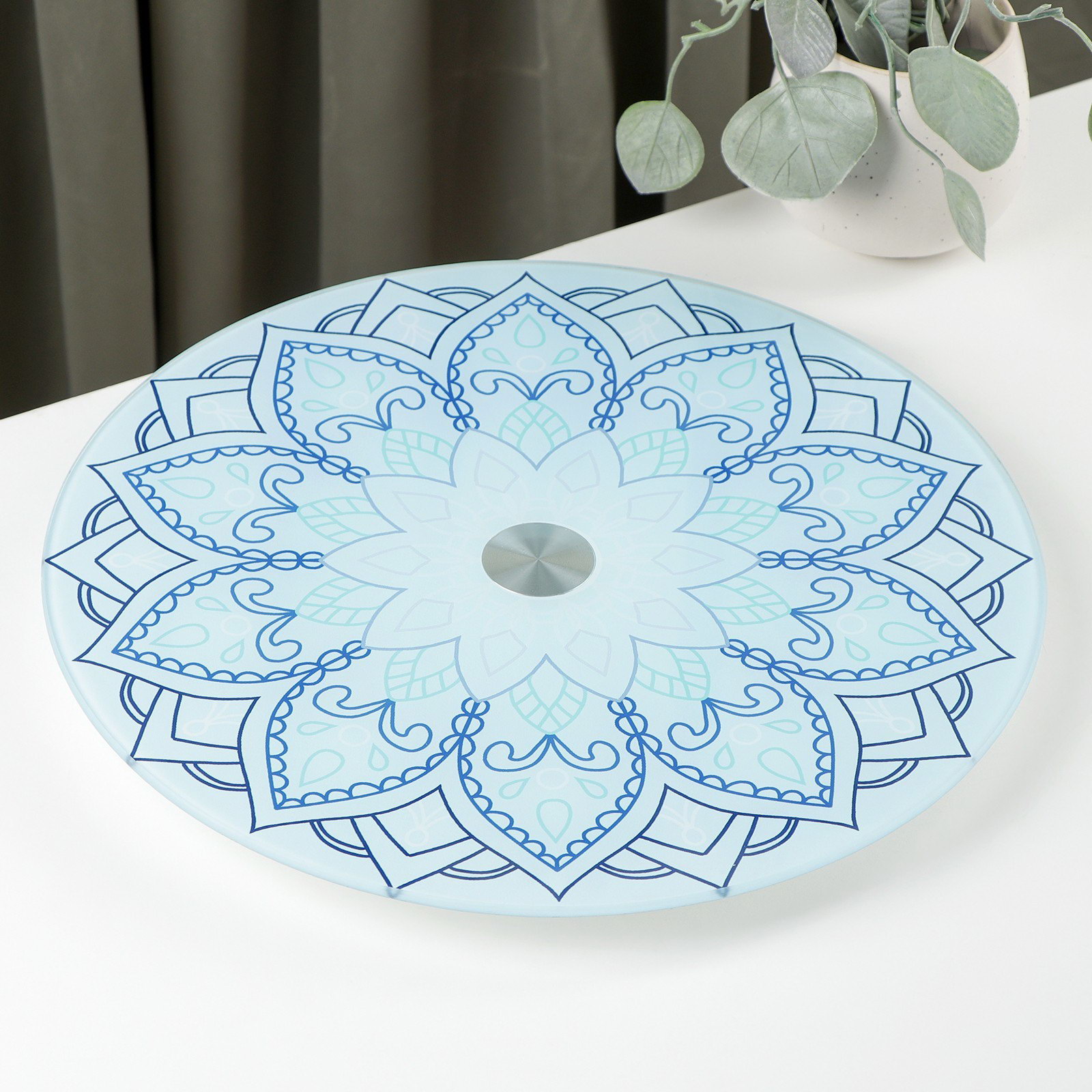 Подставка стеклянная для торта вращающаяся "Восток", d=32 см, цвет синий, 32х32х2.2 см., Magistro, Китай