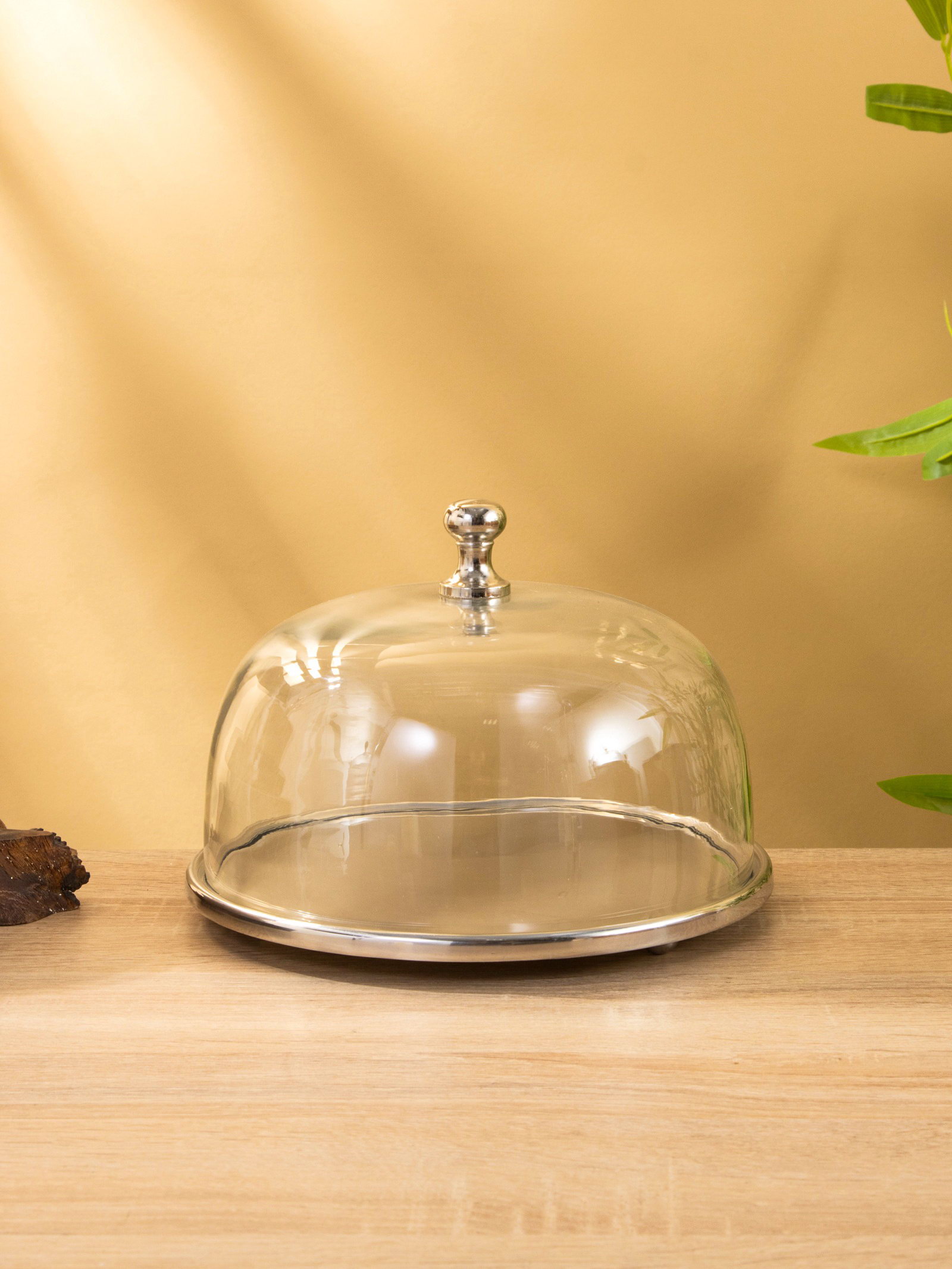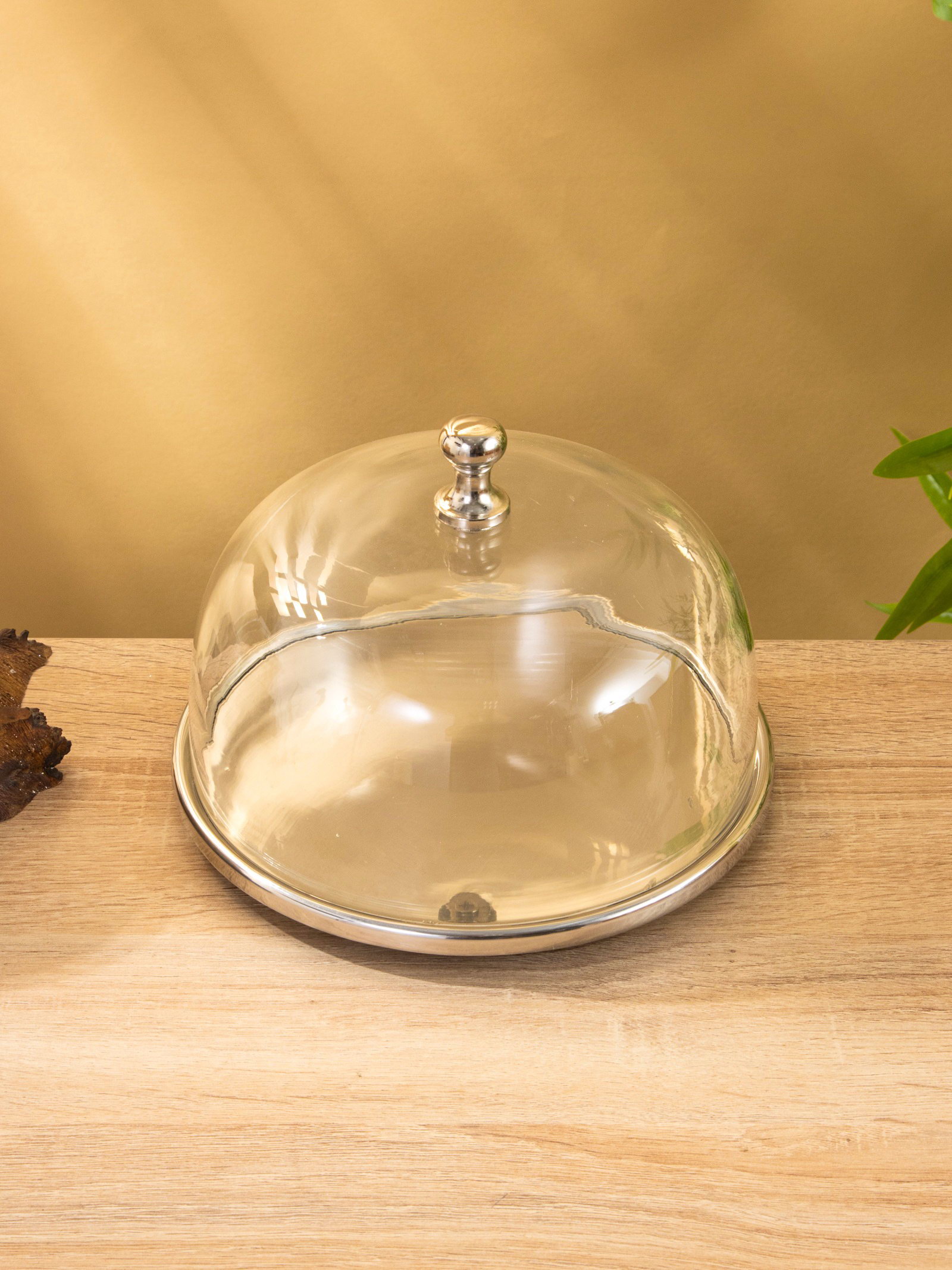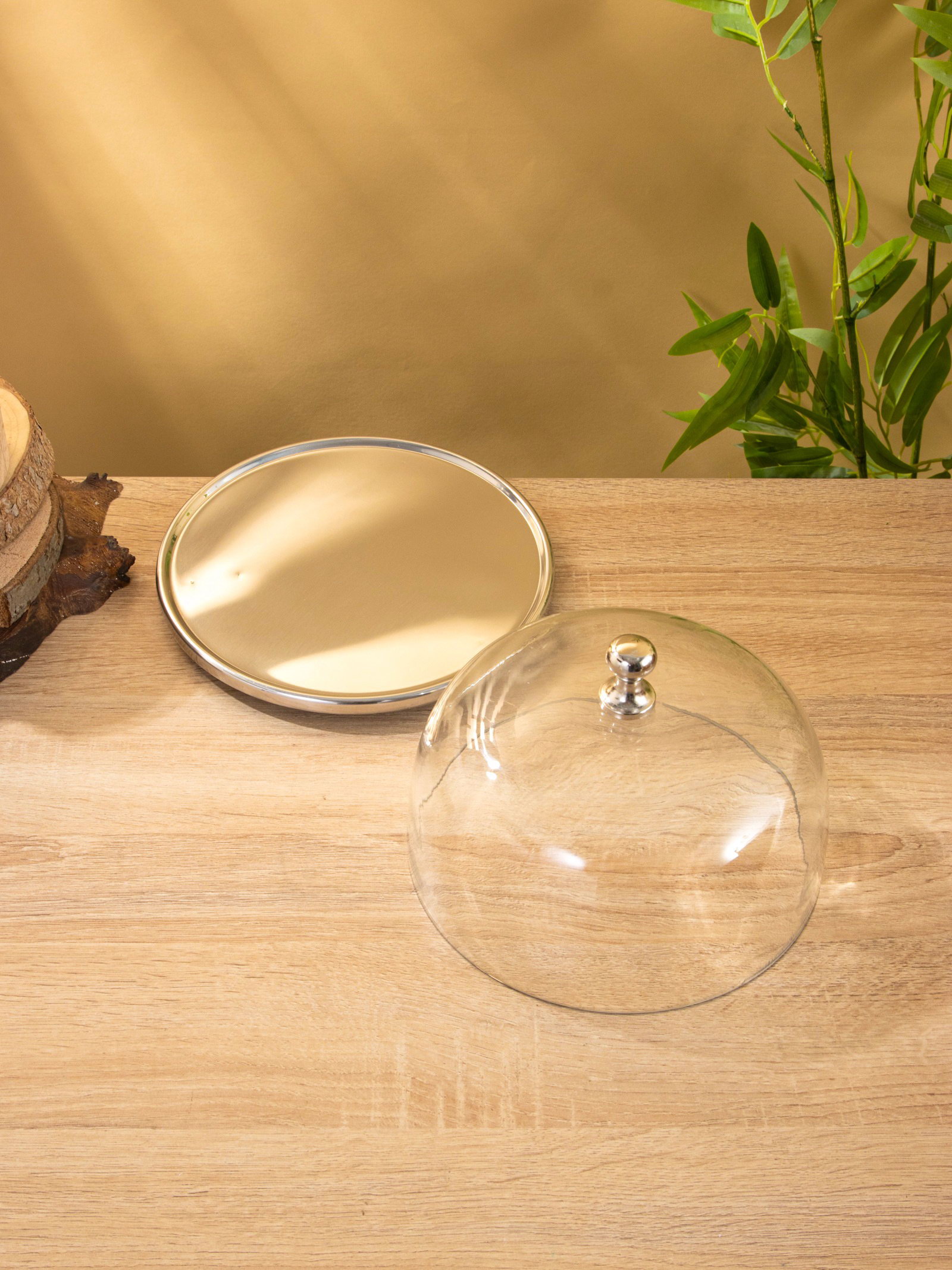 Тортовница со стеклянной крышкой, 20.5x20.5x16 см, нержавеющая сталь, 20.5х20.5х16 см., Индия
