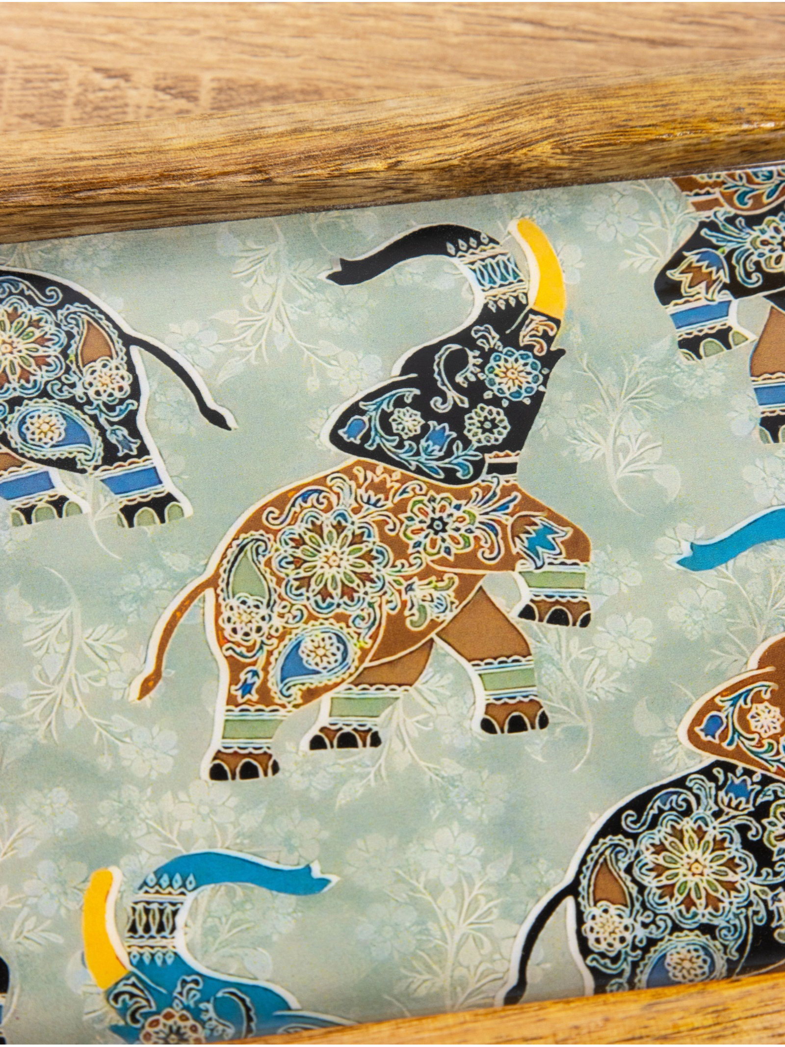 Набор розеток на подносе "Мудрый слон", 3 шт., 33.5x13x6.5 см, дерево манго, 13x33.5x6.5 см., Индия