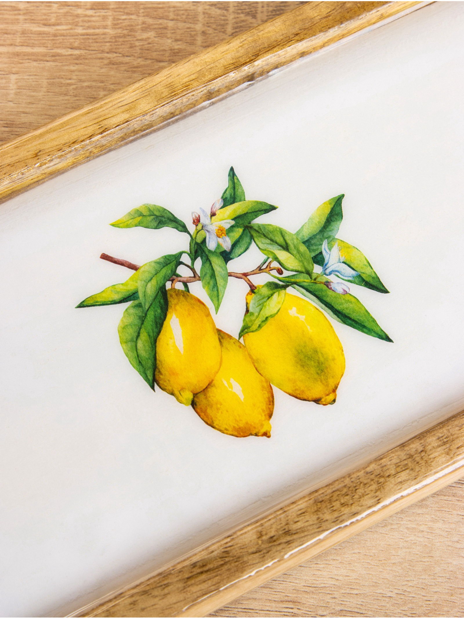 Набор розеток на подносе "Лимоны", 3 шт., 33.5x13x6.5 см, дерево манго, 13x33.5x6.5 см., Индия
