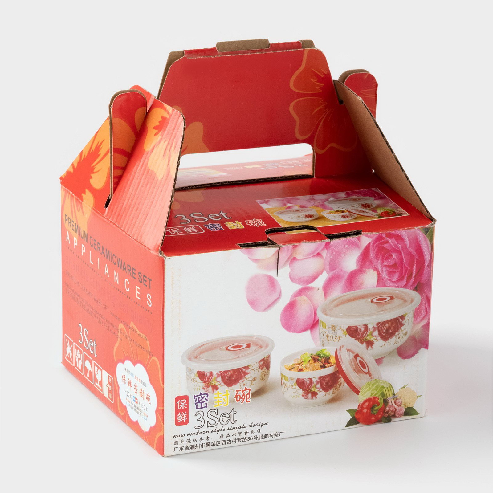 Набор салатников керамических с вакуумными крышками "Розалинда", 3 предмета: 250 мл, 550 мл, 850 мл, d=15.5/12.5/10 см, 16x16x7 см., Китай