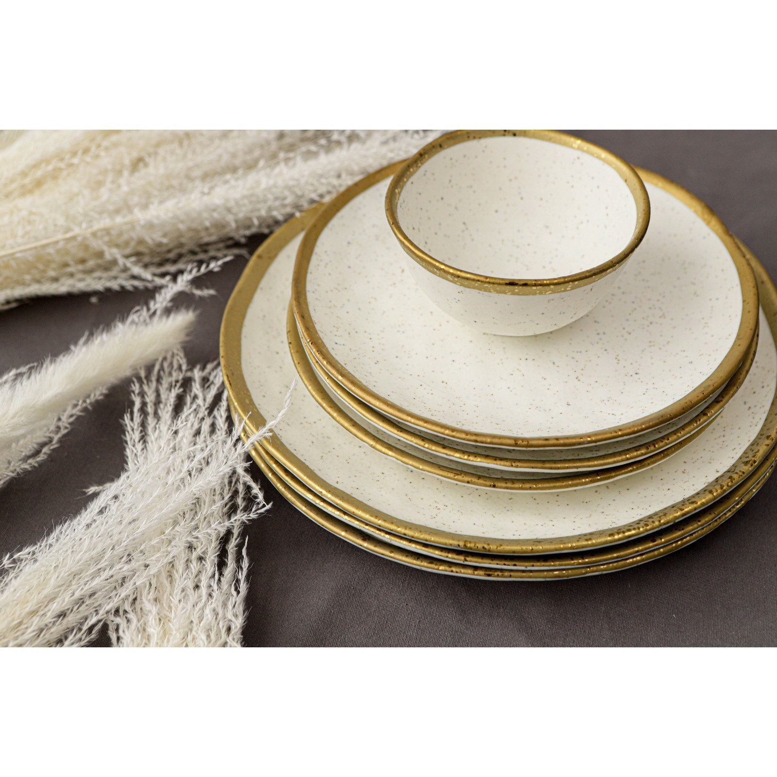 Тематика: В крапинку, Полоски, полоса Размер упаковки: 11.5 x 5.5 x 11.5 см. Форма: Круг tnved: 6911100000 tnved: 6911100000 Цвет: Белый Текстура: Гладкая Можно использовать в СВЧ-печи: Нет Крышка: Нет Можно мыть в посудомоечной машине: Нет Набор: Нет Для горячего: Да Особенности: С золотой отводкой Вид тарелки: Глубокая Матовая поверхность: Да Запрет реализации по сегментам: 00000000485 Рисунок: Да Посуда серии Magistro Poursephona это современная фарфоровая посуда. В оформлении серии превалируют два цвета – бежевый оттенок фарфора и роскошное золото в виде широкой окантовки предметов. Идеально подходит как для формального обеда, так и для торжеств по особым случаям. Лаконичные формы, золотая окантовка, разноцветные вкрапления придают изделиям из фарфора одновременно необычный и современный вид. Уход: Нельзя использовать в микроволновой печи. Не рекомендуется мыть в посудомоечной машине. | ||
