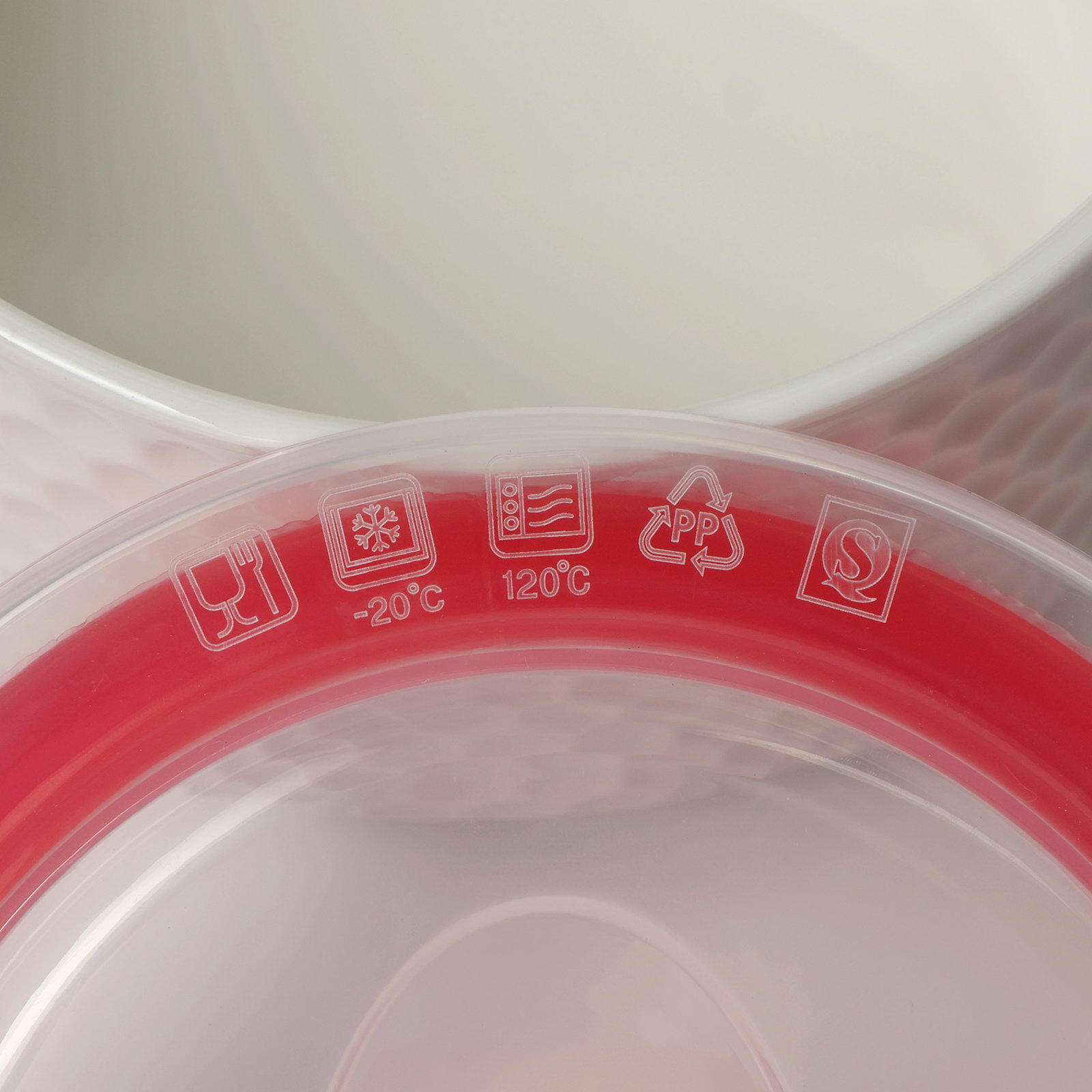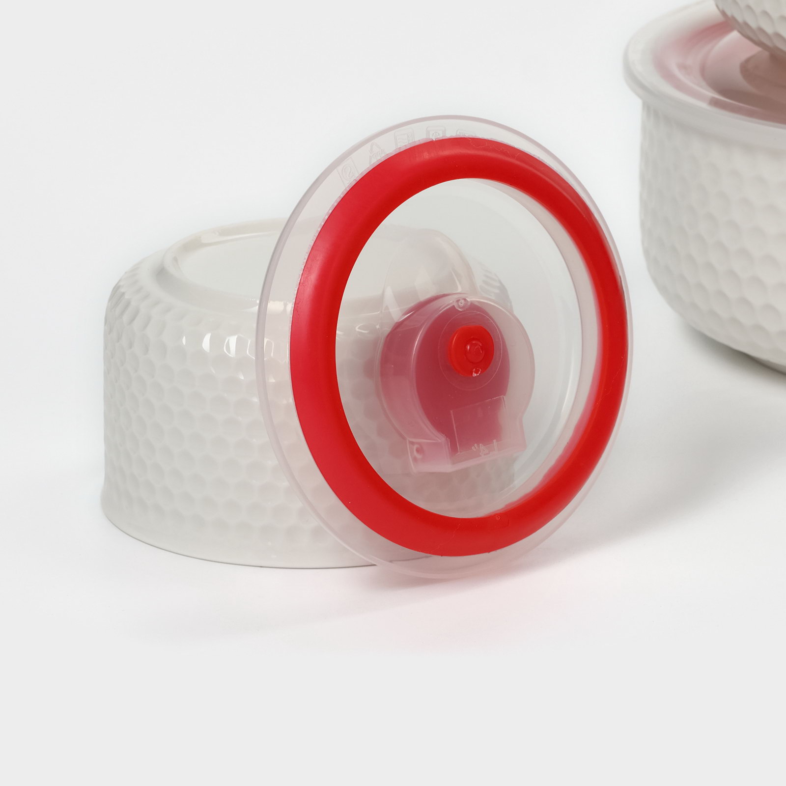 Набор салатников керамических с вакуумными крышками "Ромбики", 3 предмета: 300/550/900 мл, белый, 15.8x15.8x8 см., Китай