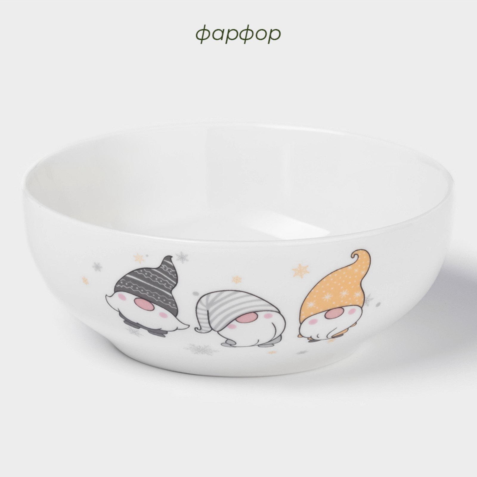 Салатник новогодний "Домашние гномики", 580 мл, d=15.5 см, фарфор, цвет белый, 15.5 см., Доляна, Китай