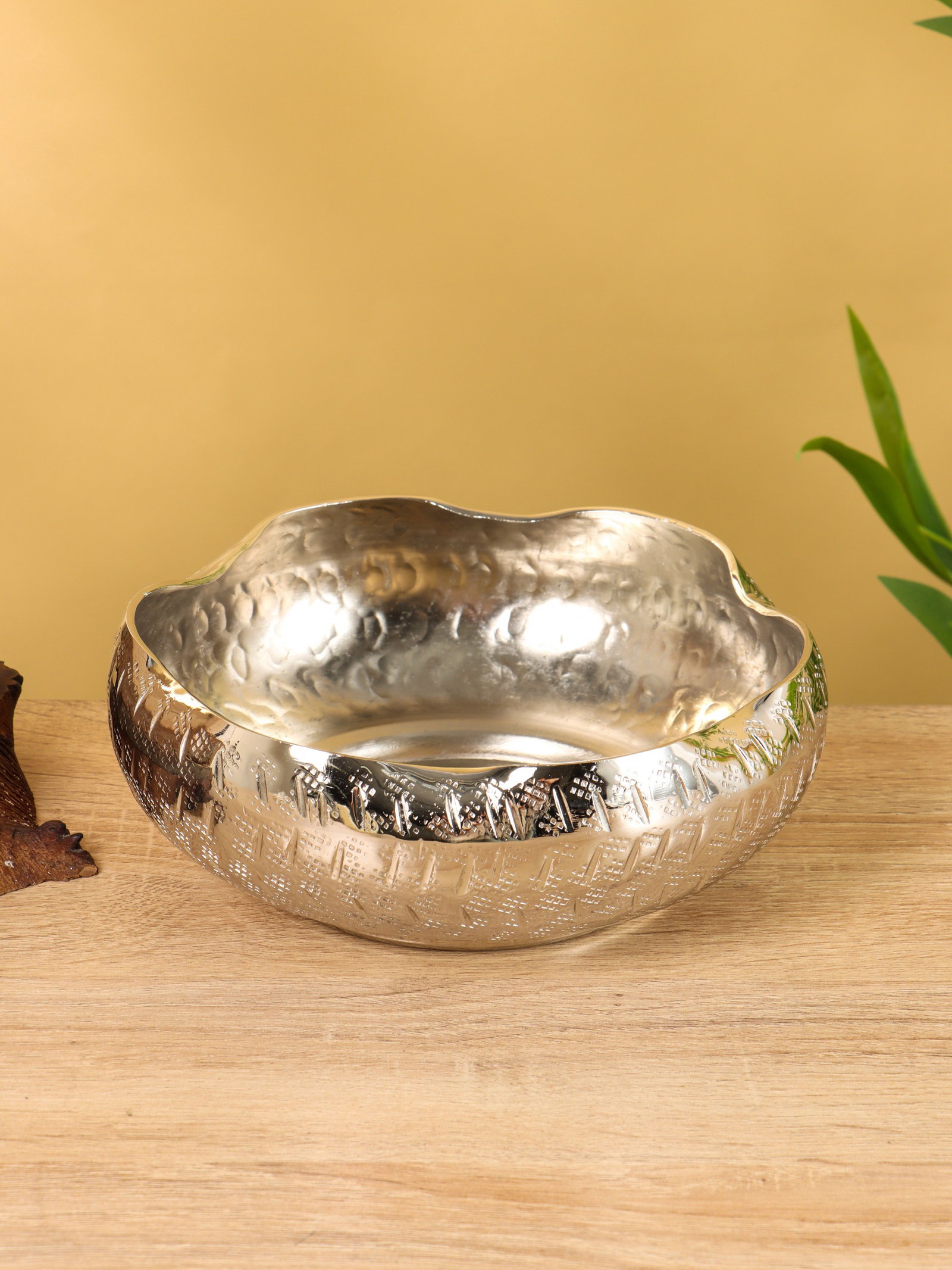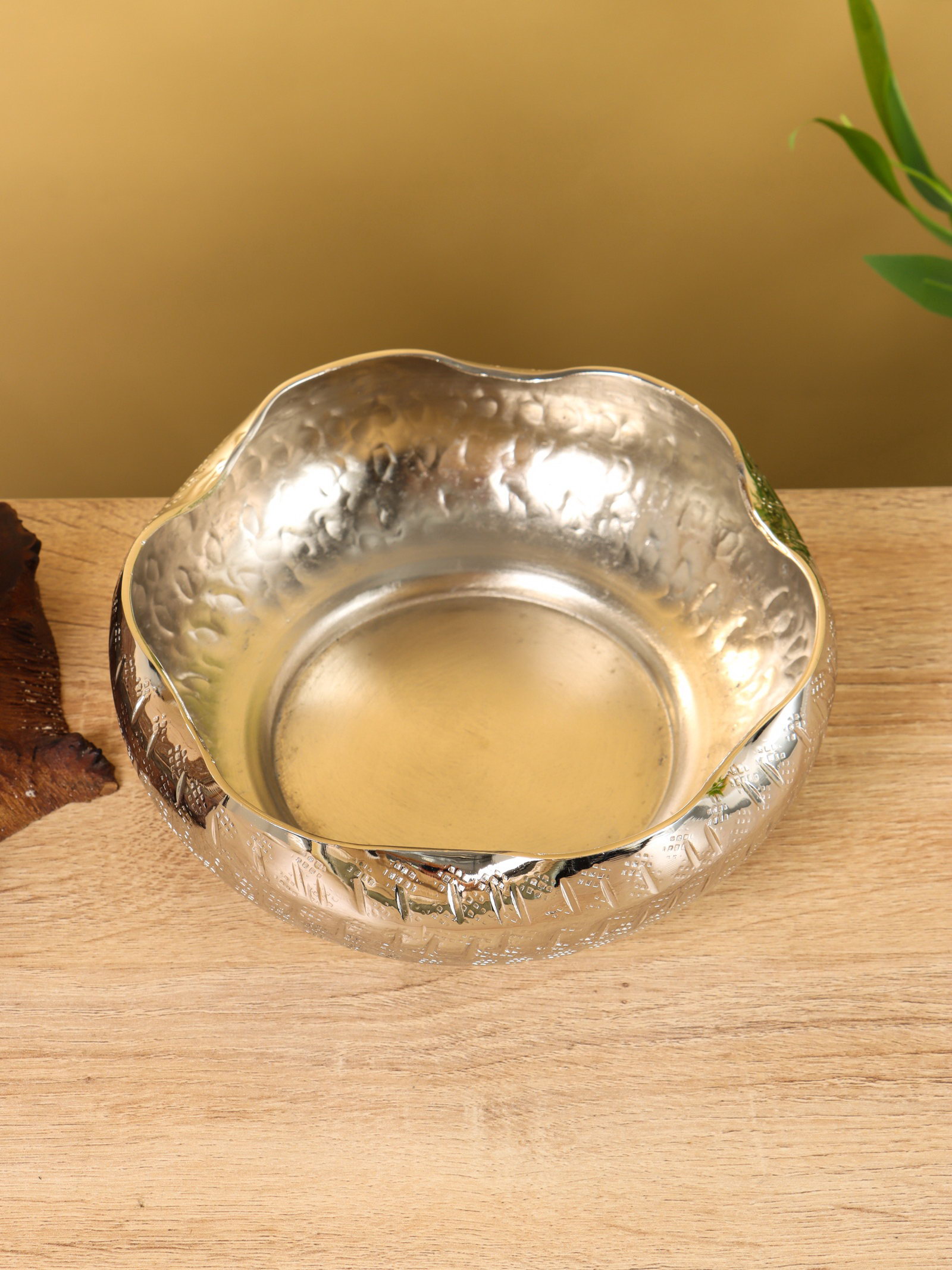 Салатник с волнистыми краями, алюминий 20х20х7.5 см, 20х20х7.5 см., Индия